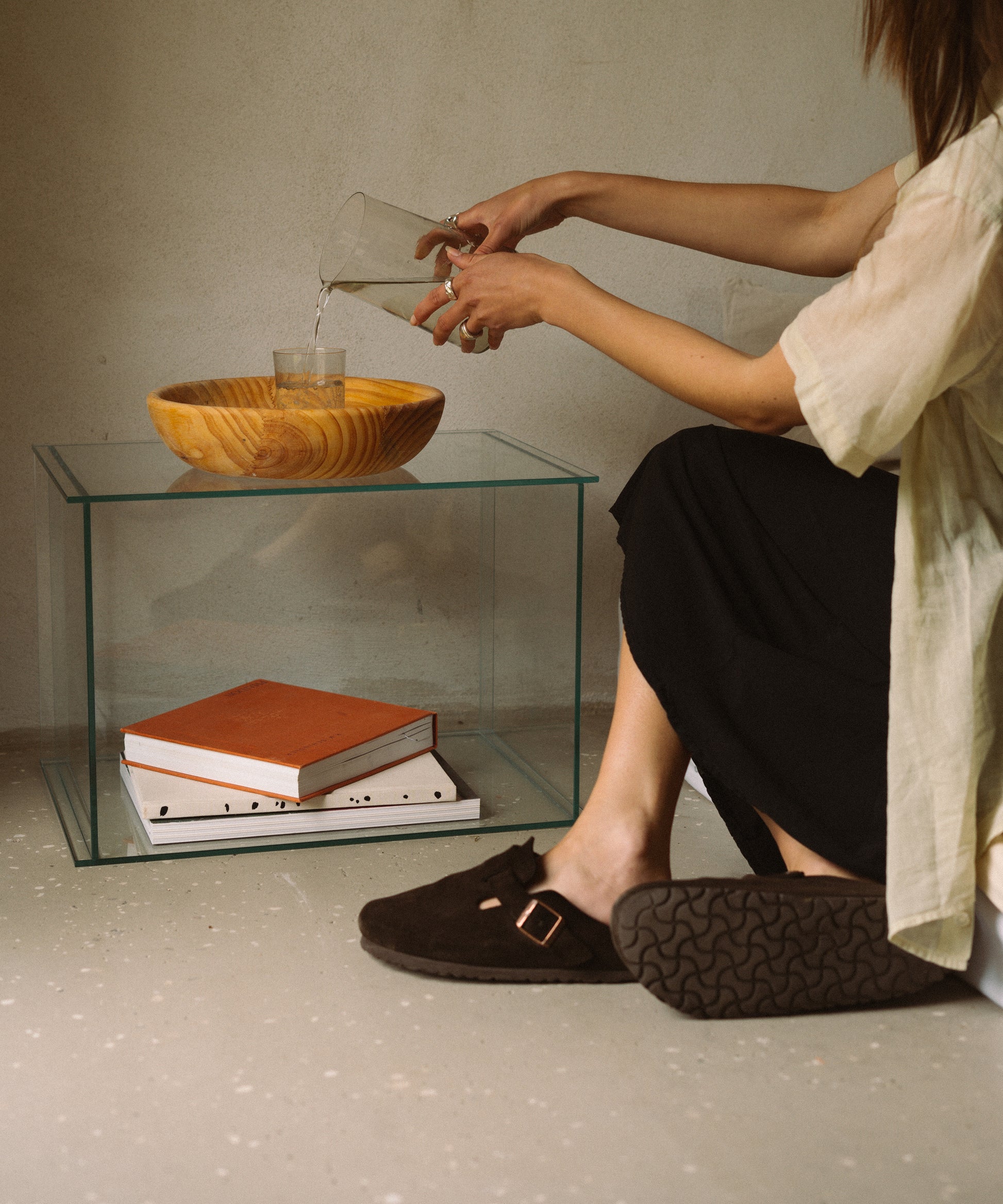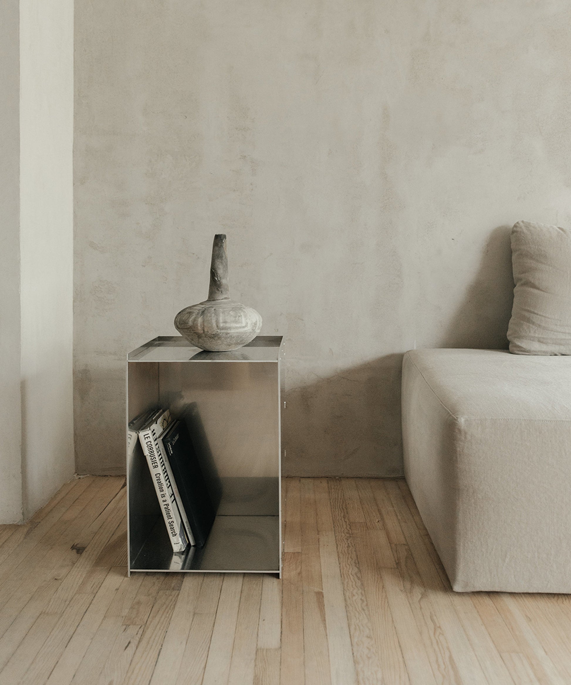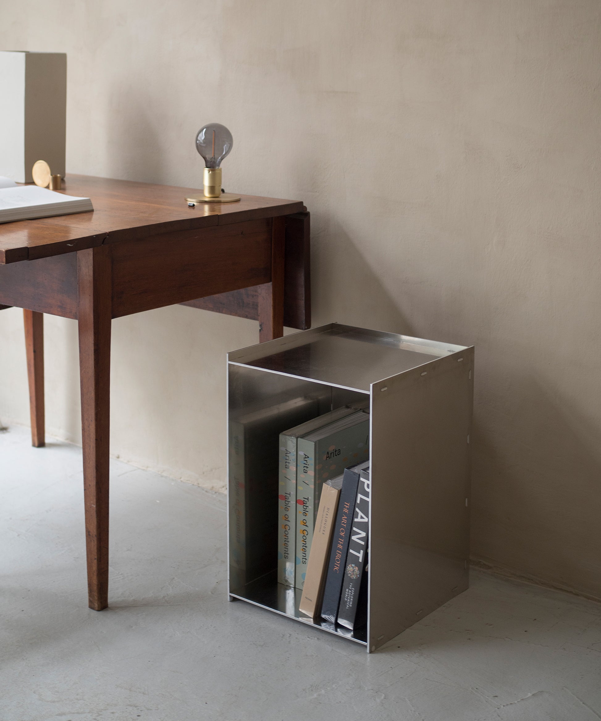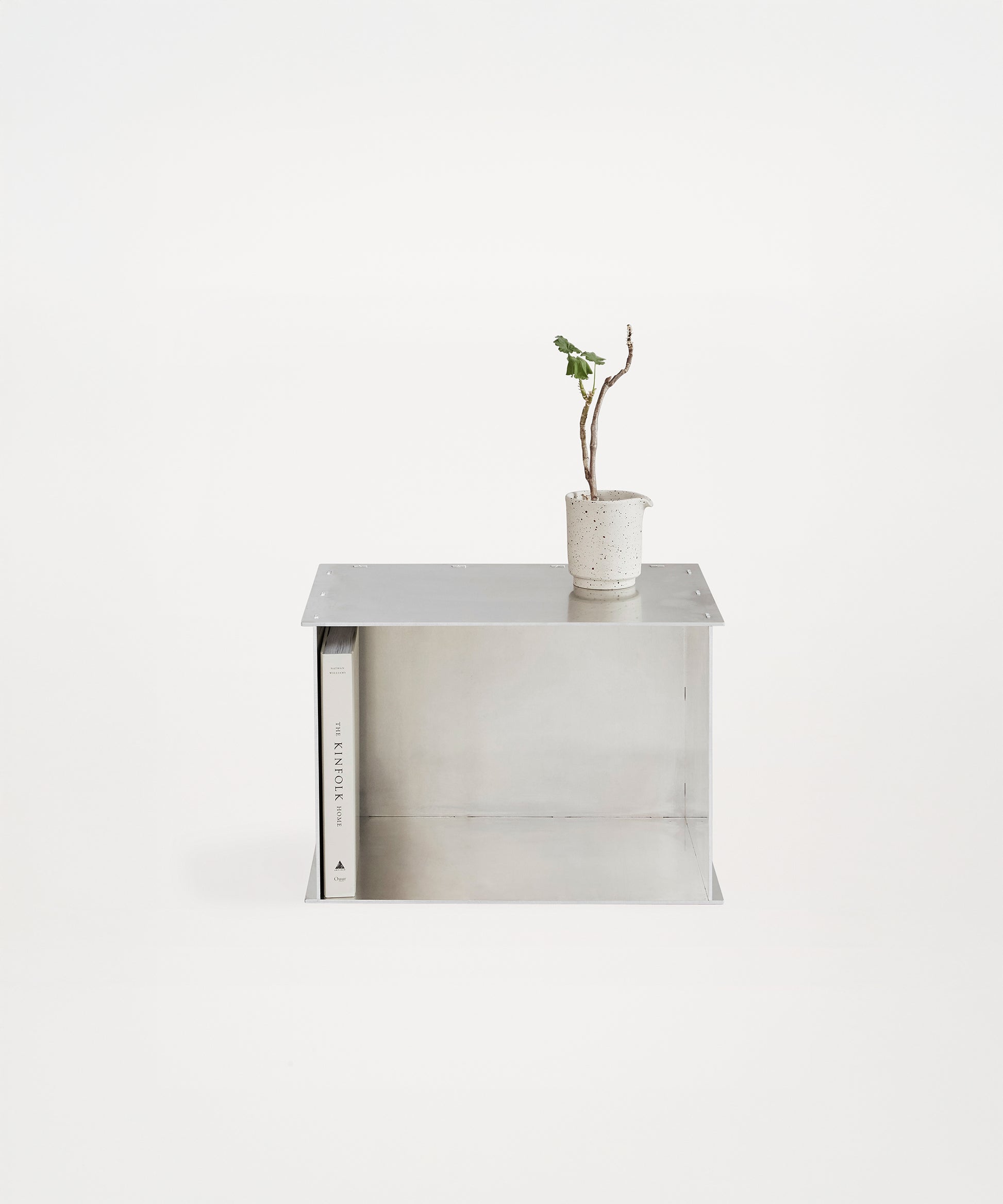 The Rivet Box Table is a sturdy, timeless piece of furniture that can be arranged vertically or horizontally and can be used as a table, a storage unit, a pedestal for display, or a combination of all three.