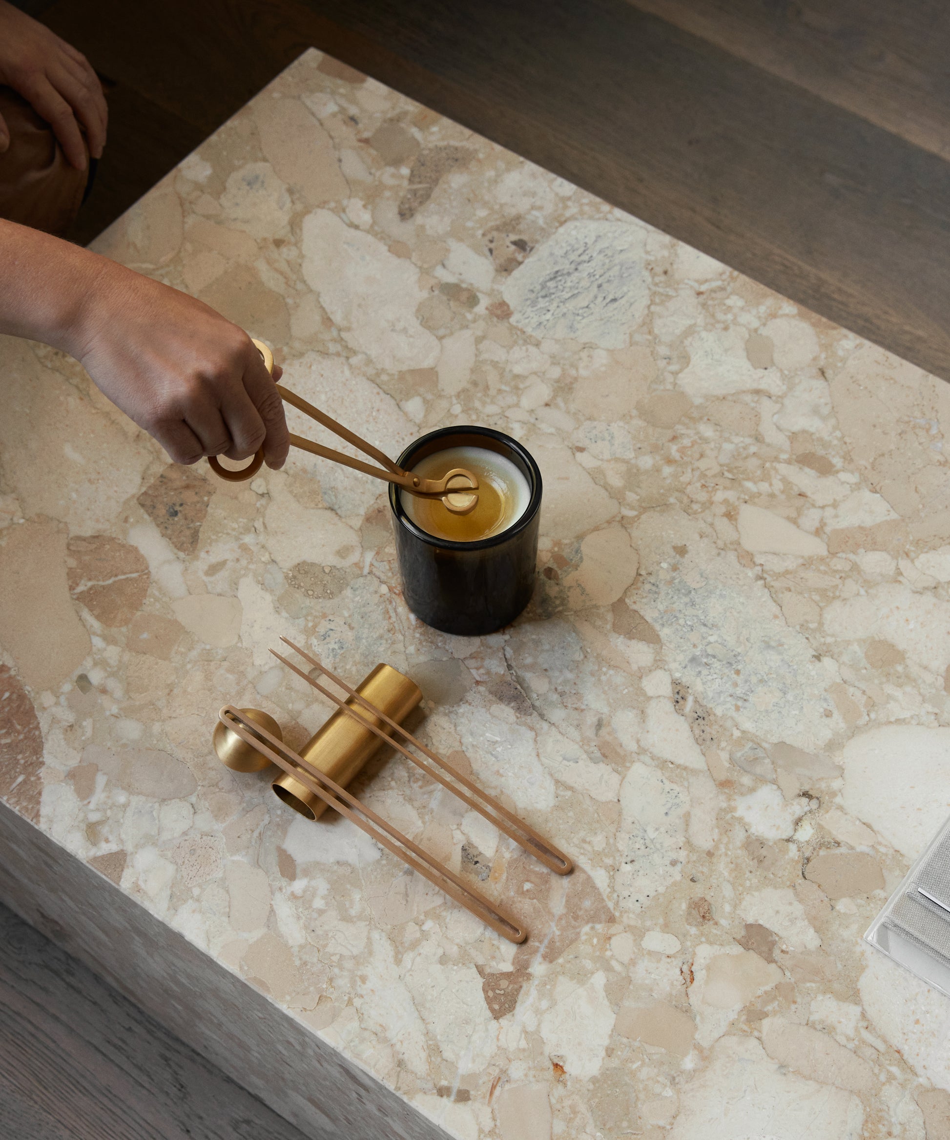 Designed for optimal candle care and performance, the four-piece Candle Care Kit includes elegant tools in powder-coated metal.