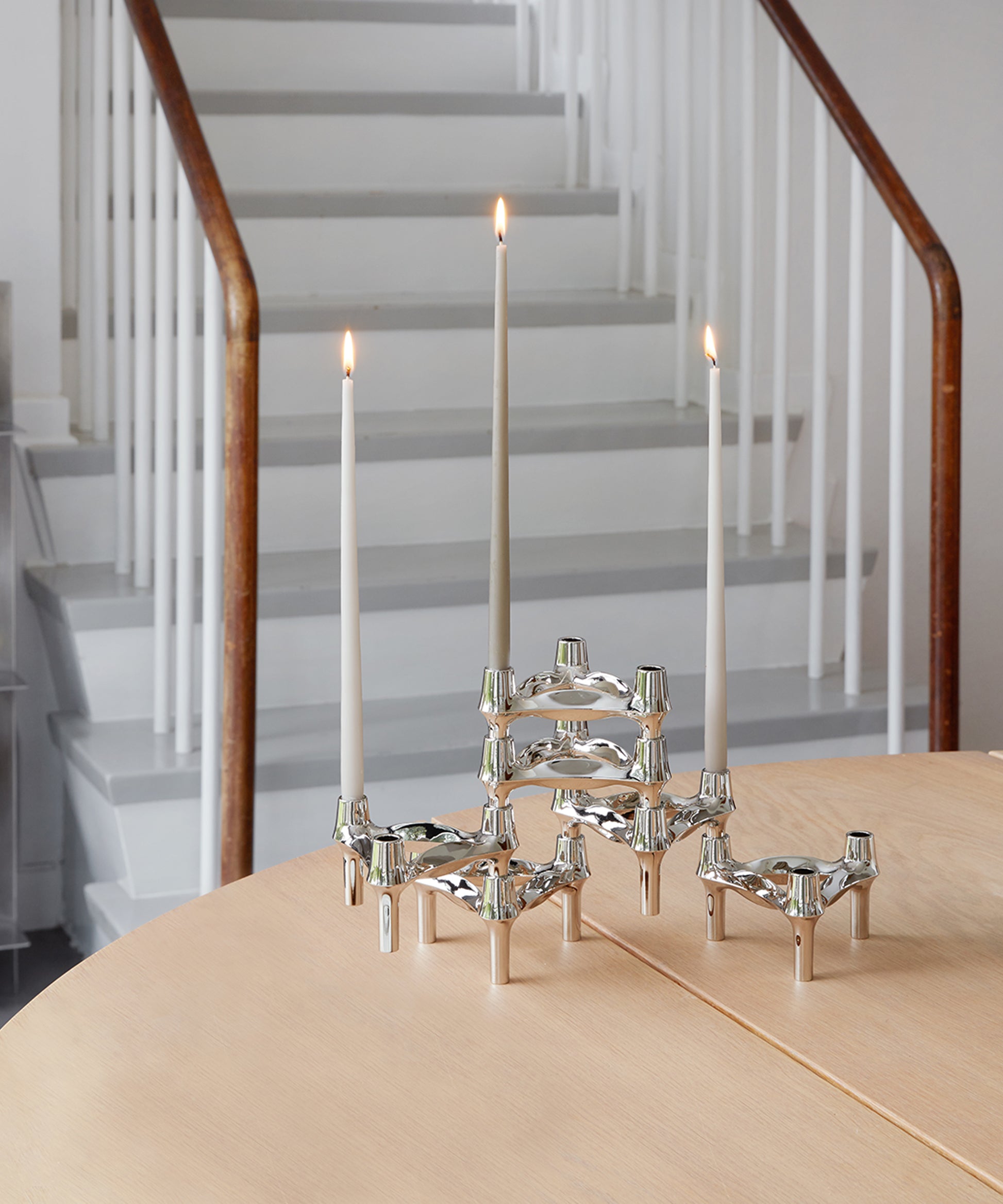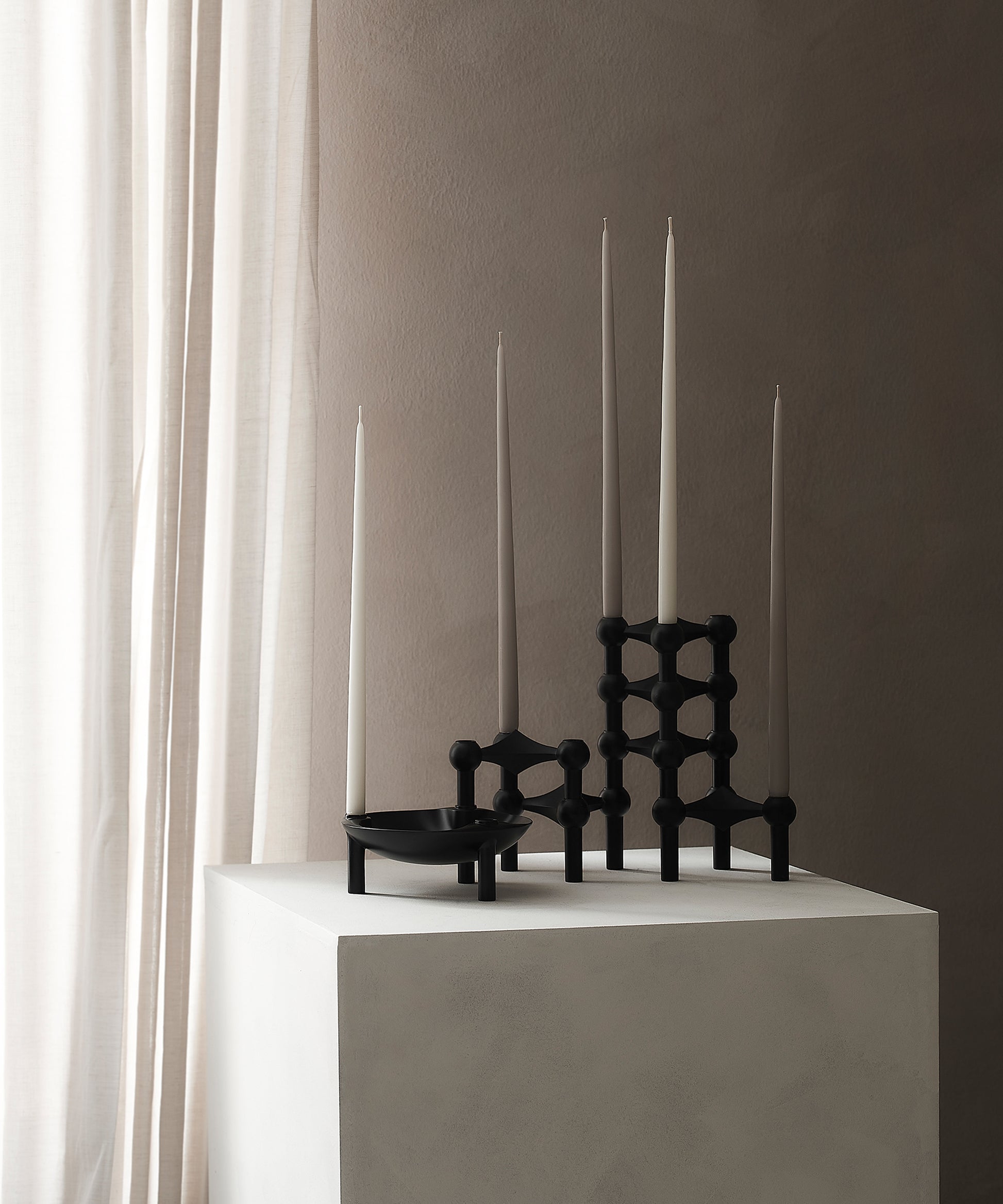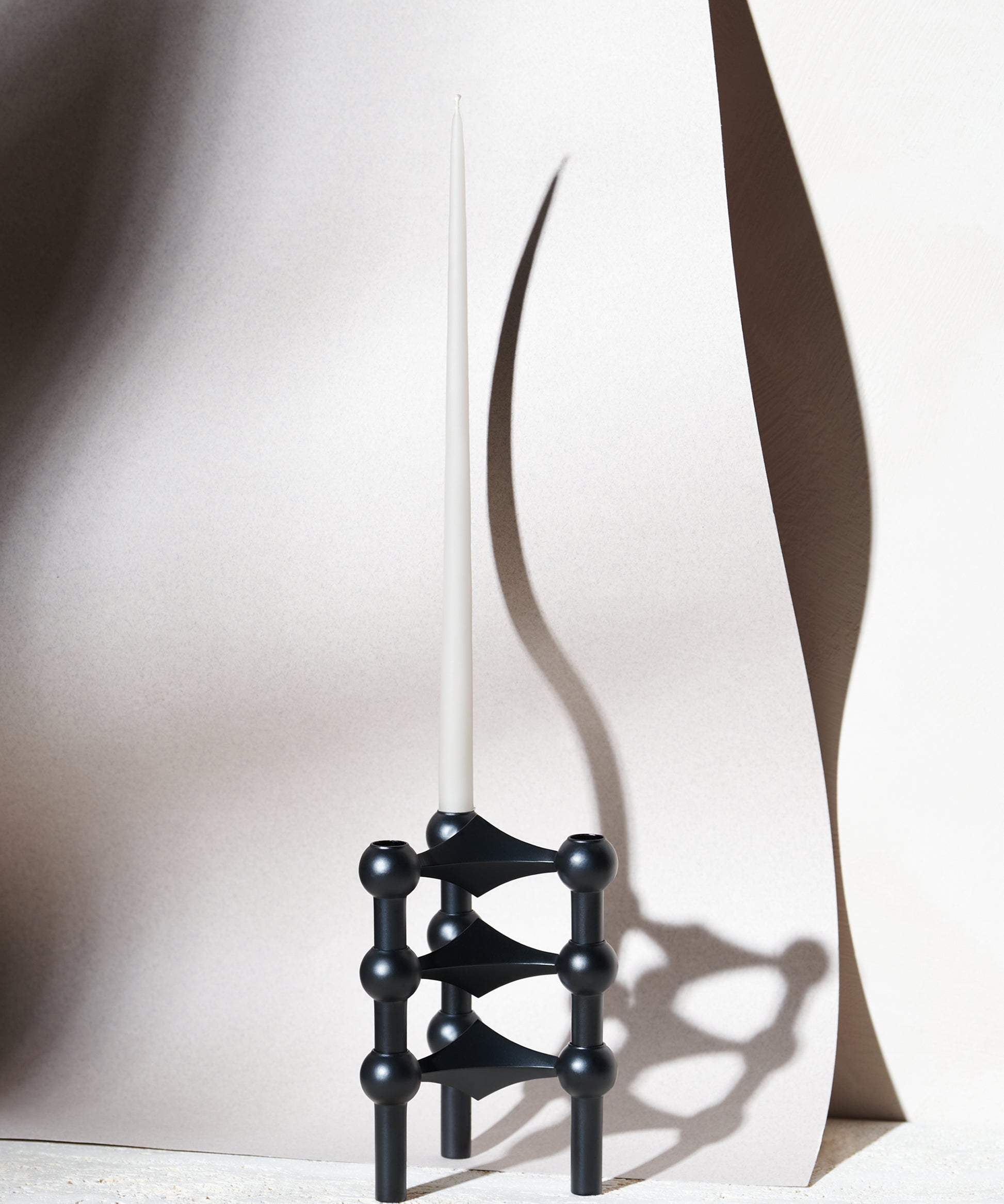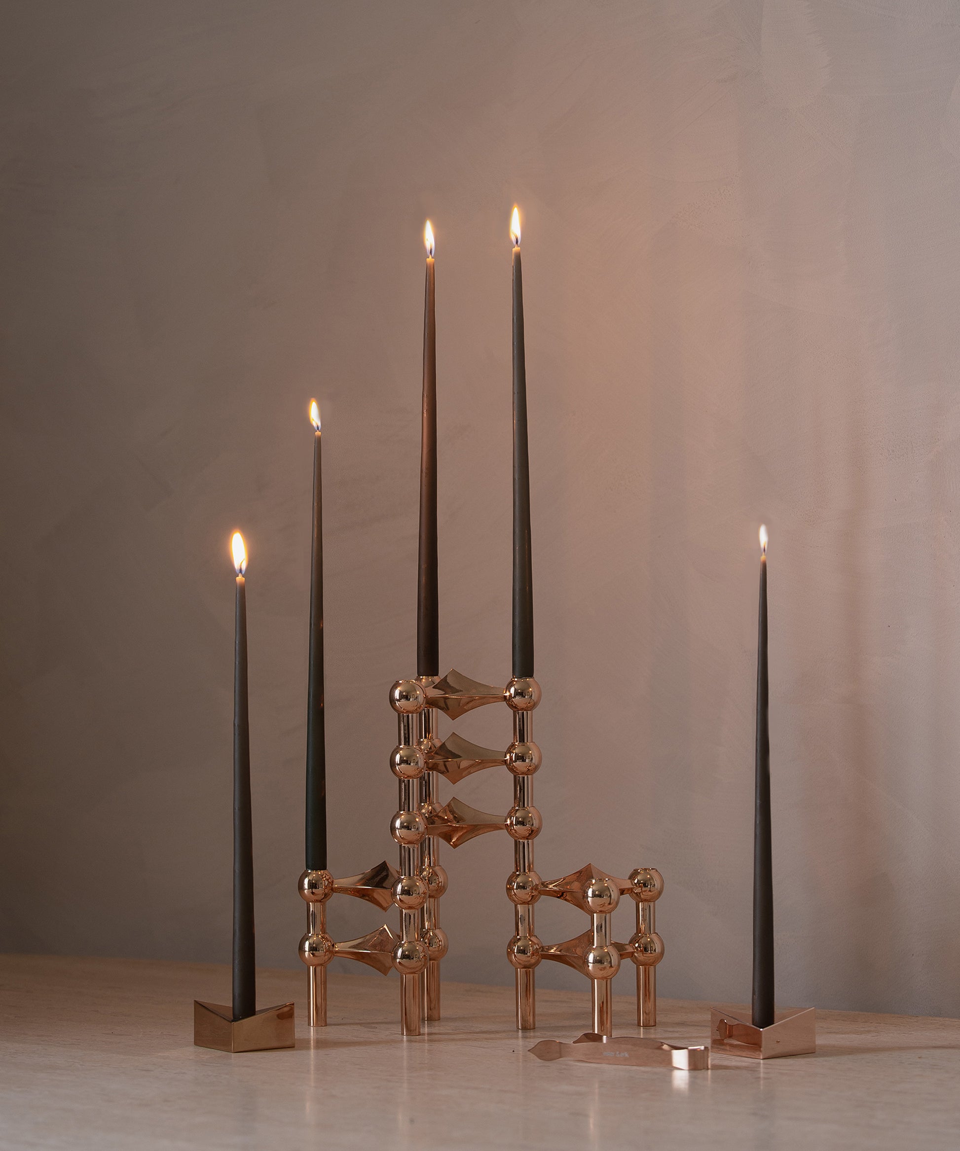 The classic piece was launched using Werner Stoff’s original drawings and since then more designs from the 1960’s design era have been revived. Today, the collection consists of the STOFF Nagel candle holder, vase, bowl, stand, wall hanger, floor stand, glass base and exclusive candles. The functional design touches the Scandinavian minimalism and the stackable approach allows you to combine and create individual sculptures by an infinite of modules. The iconic design is considered a work of art – a personal statement with artistic freedom ready to assume the shape of its owner’s unique creativity.