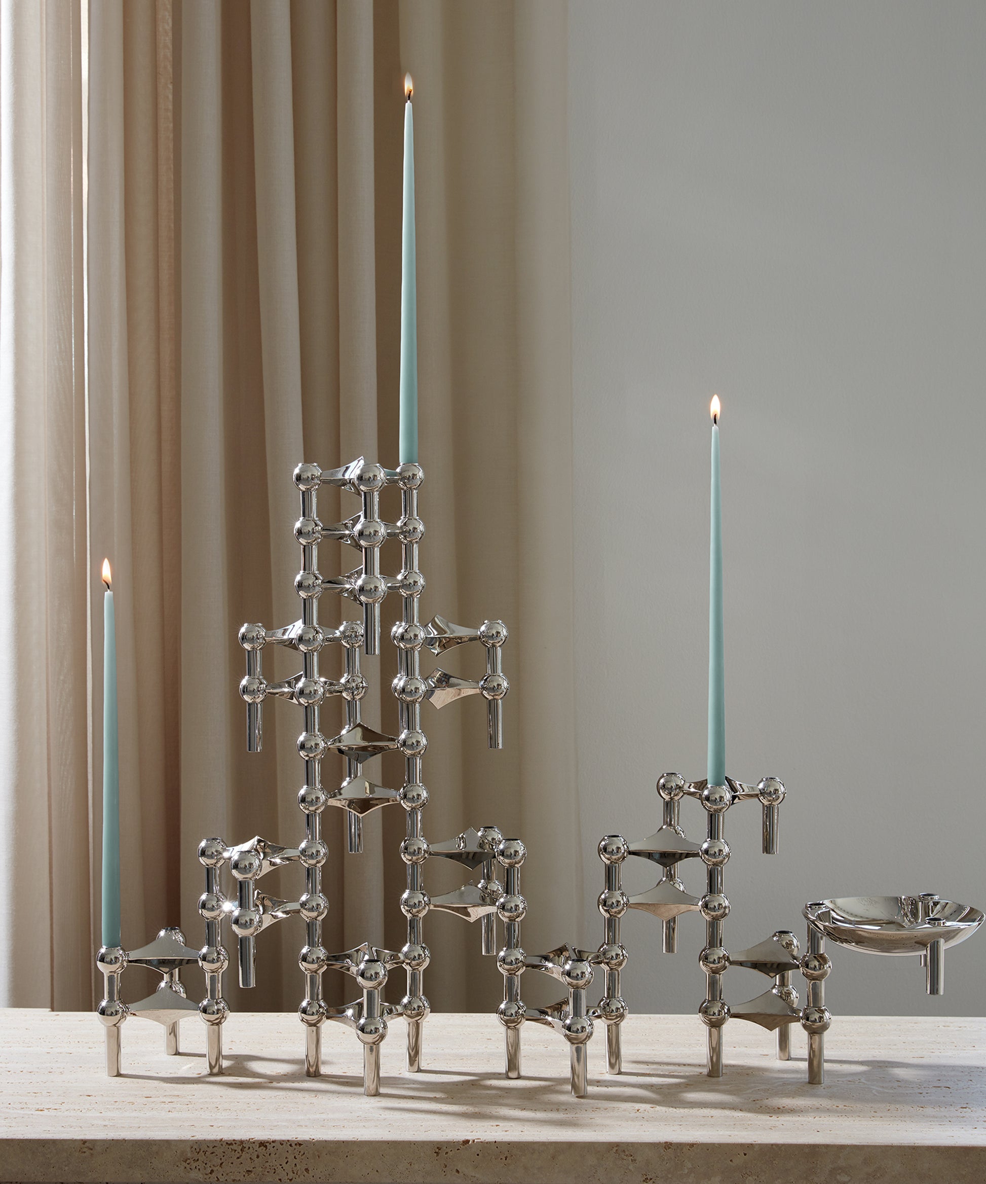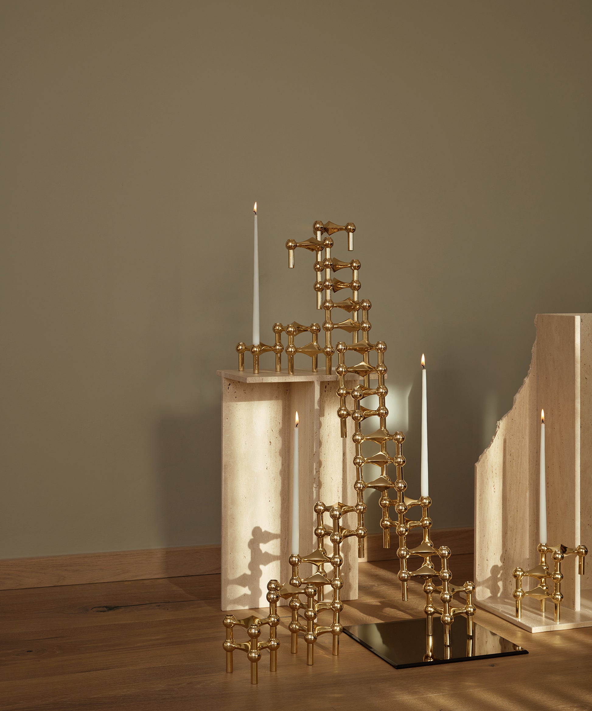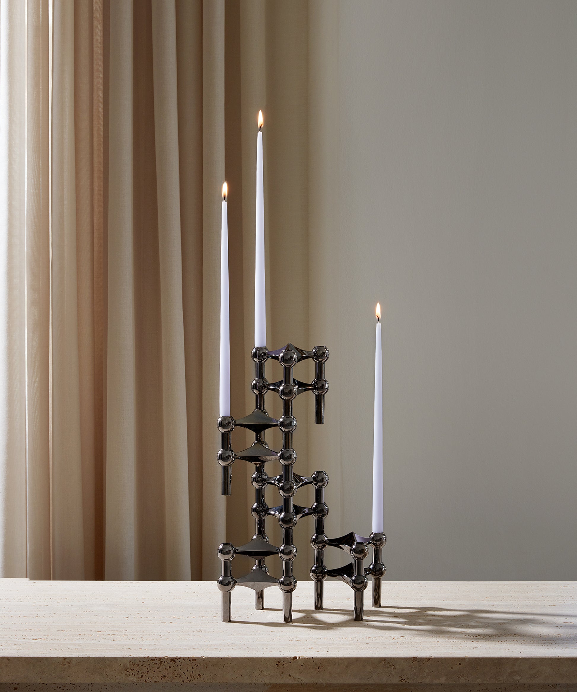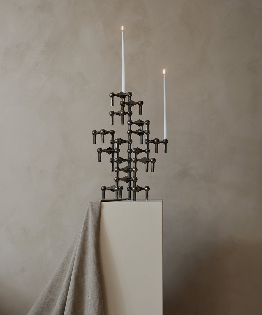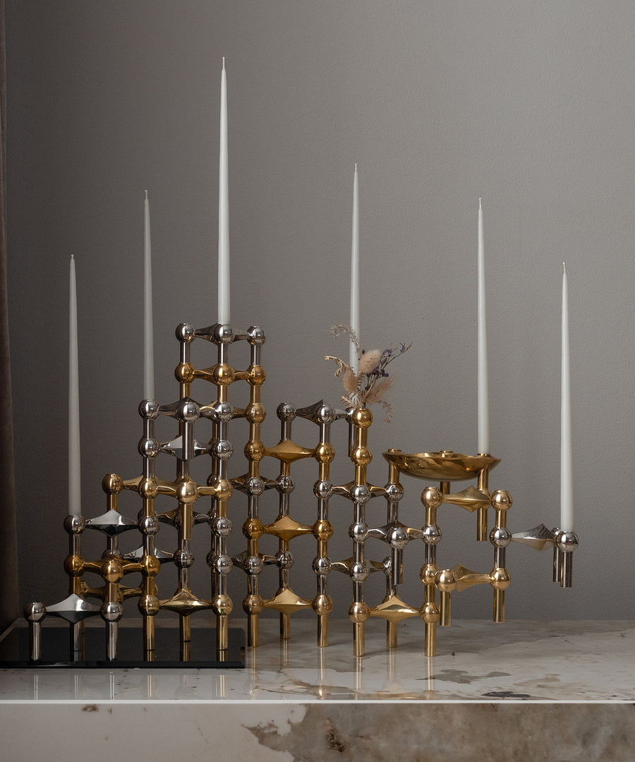 The classic piece was launched using Werner Stoff’s original drawings and since then more designs from the 1960’s design era have been revived. Today, the collection consists of the STOFF Nagel candle holder, vase, bowl, stand, wall hanger, floor stand, glass base and exclusive candles. The functional design touches the Scandinavian minimalism and the stackable approach allows you to combine and create individual sculptures by an infinite of modules. The iconic design is considered a work of art – a personal statement with artistic freedom ready to assume the shape of its owner’s unique creativity.