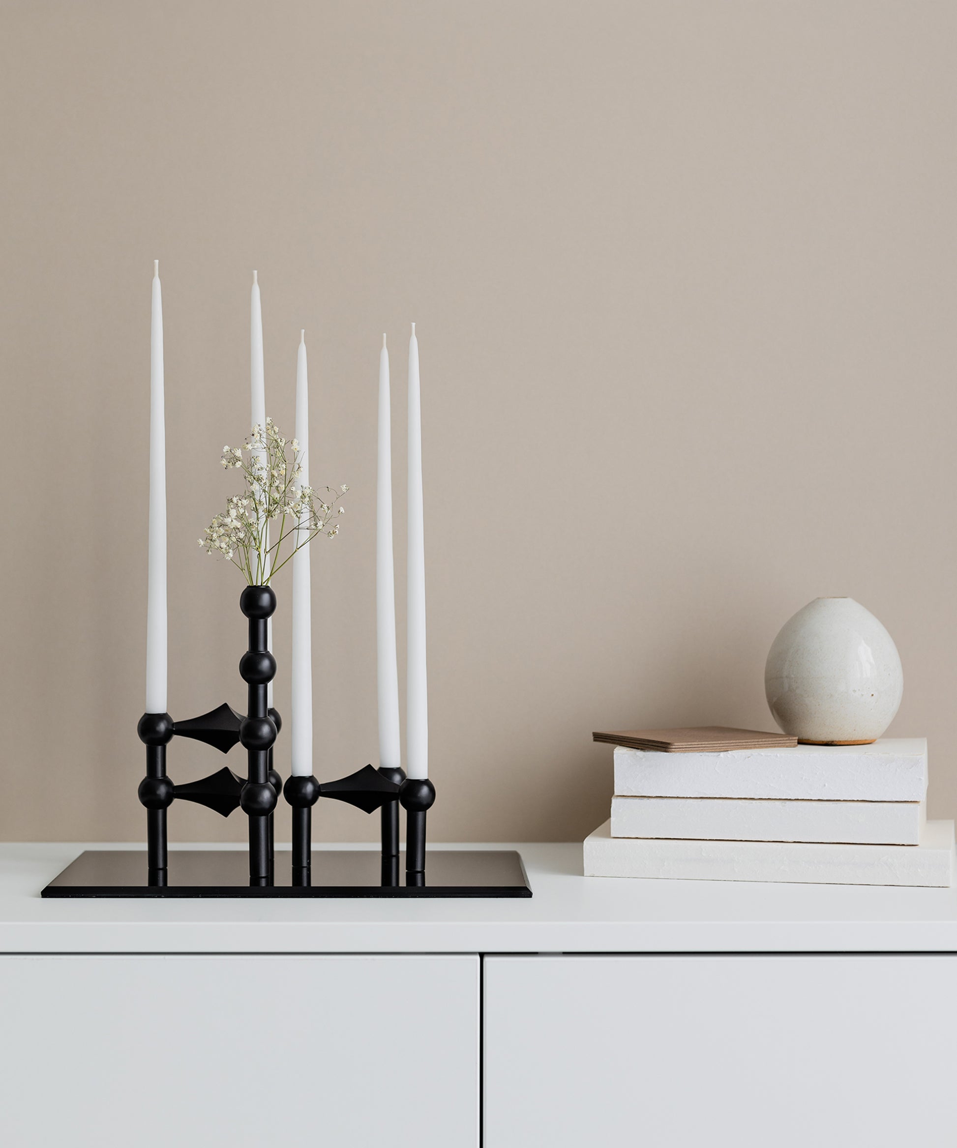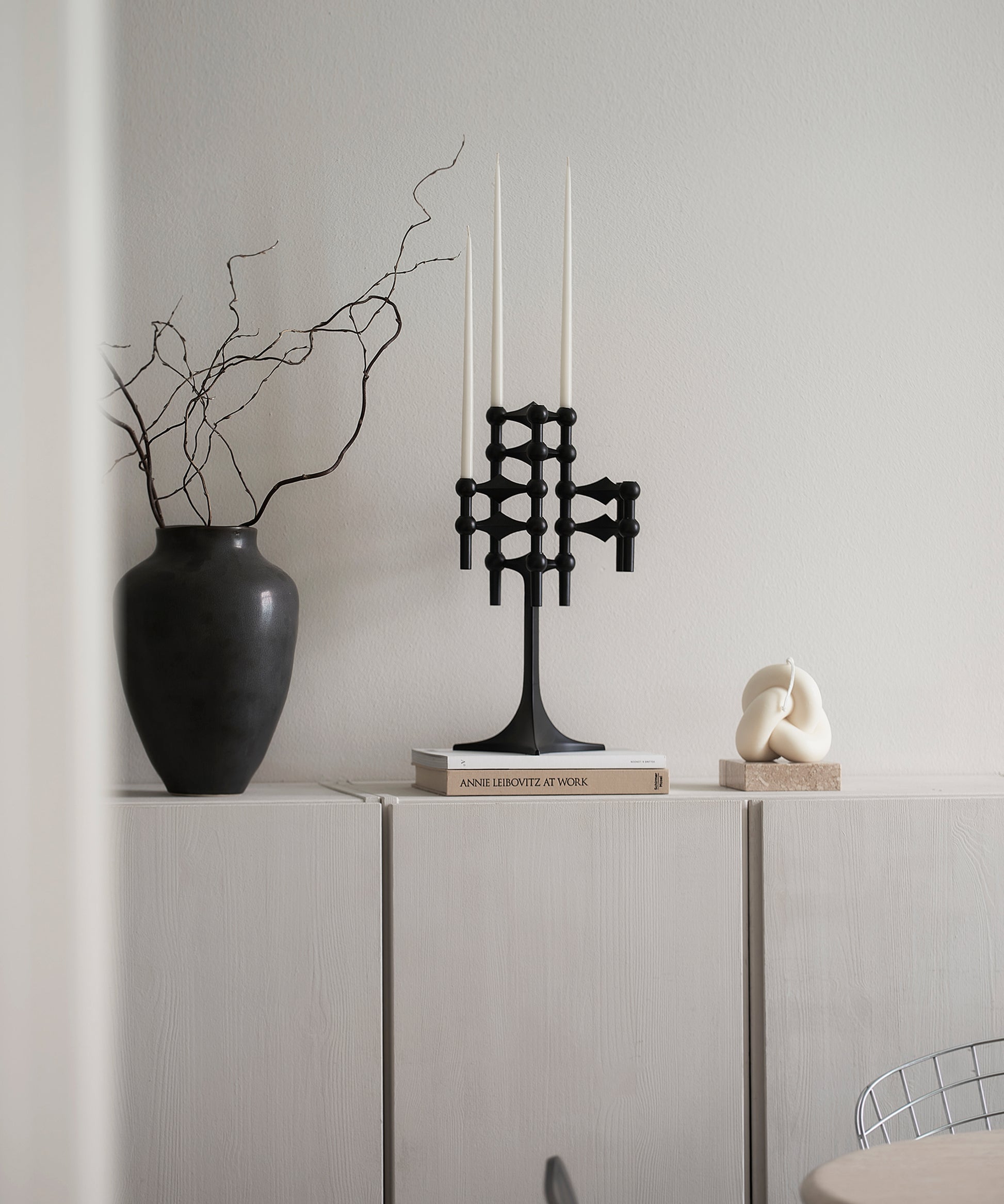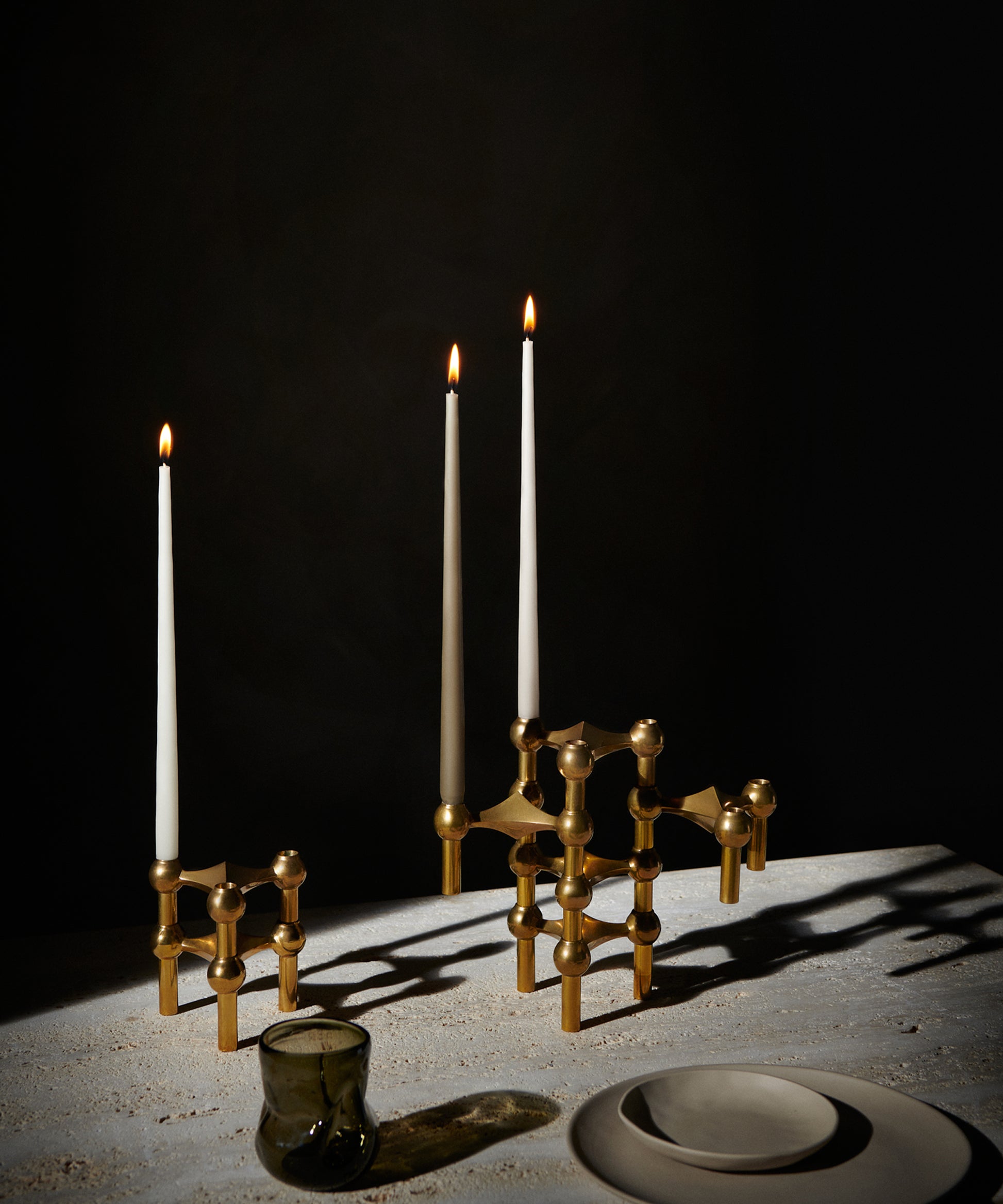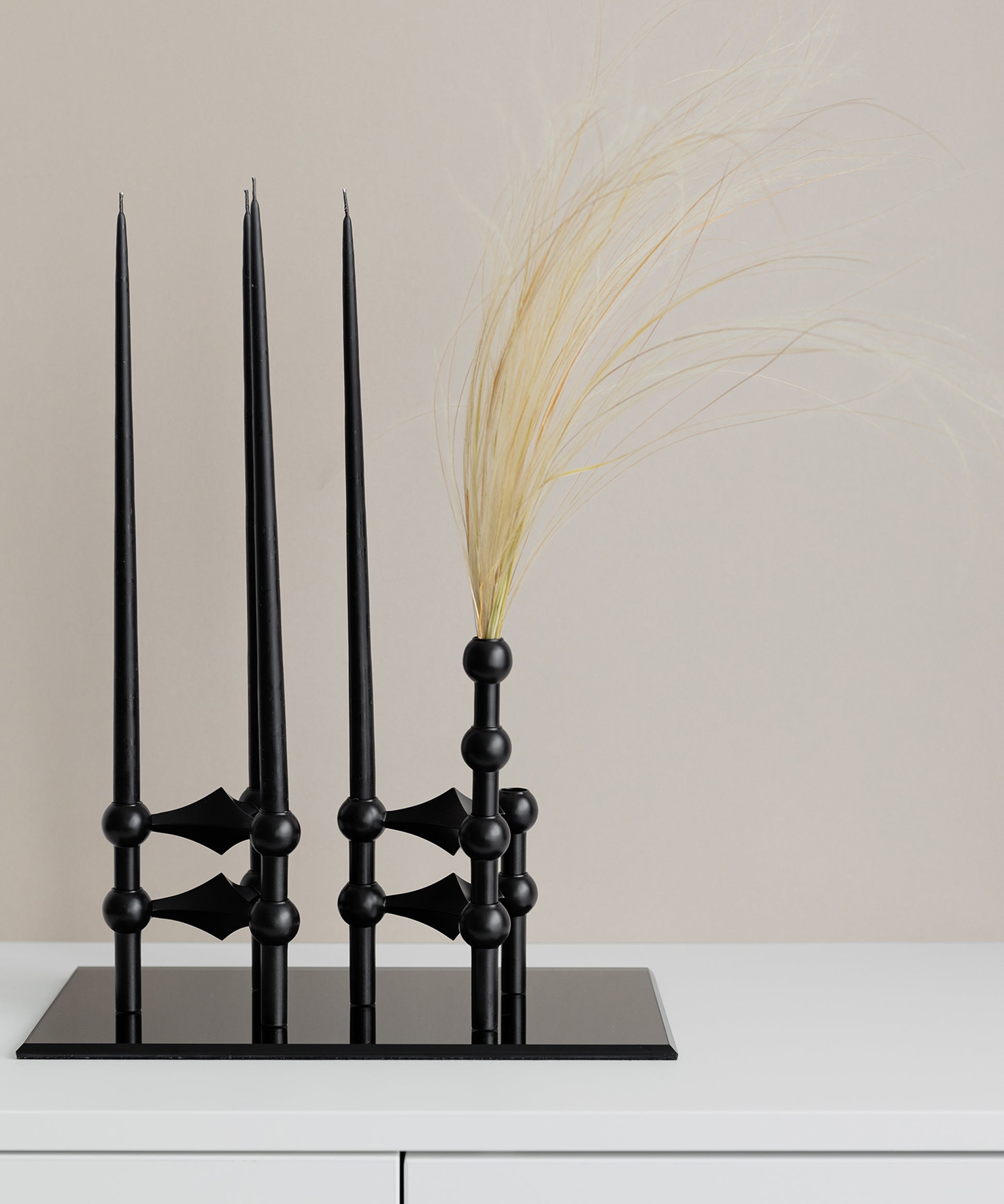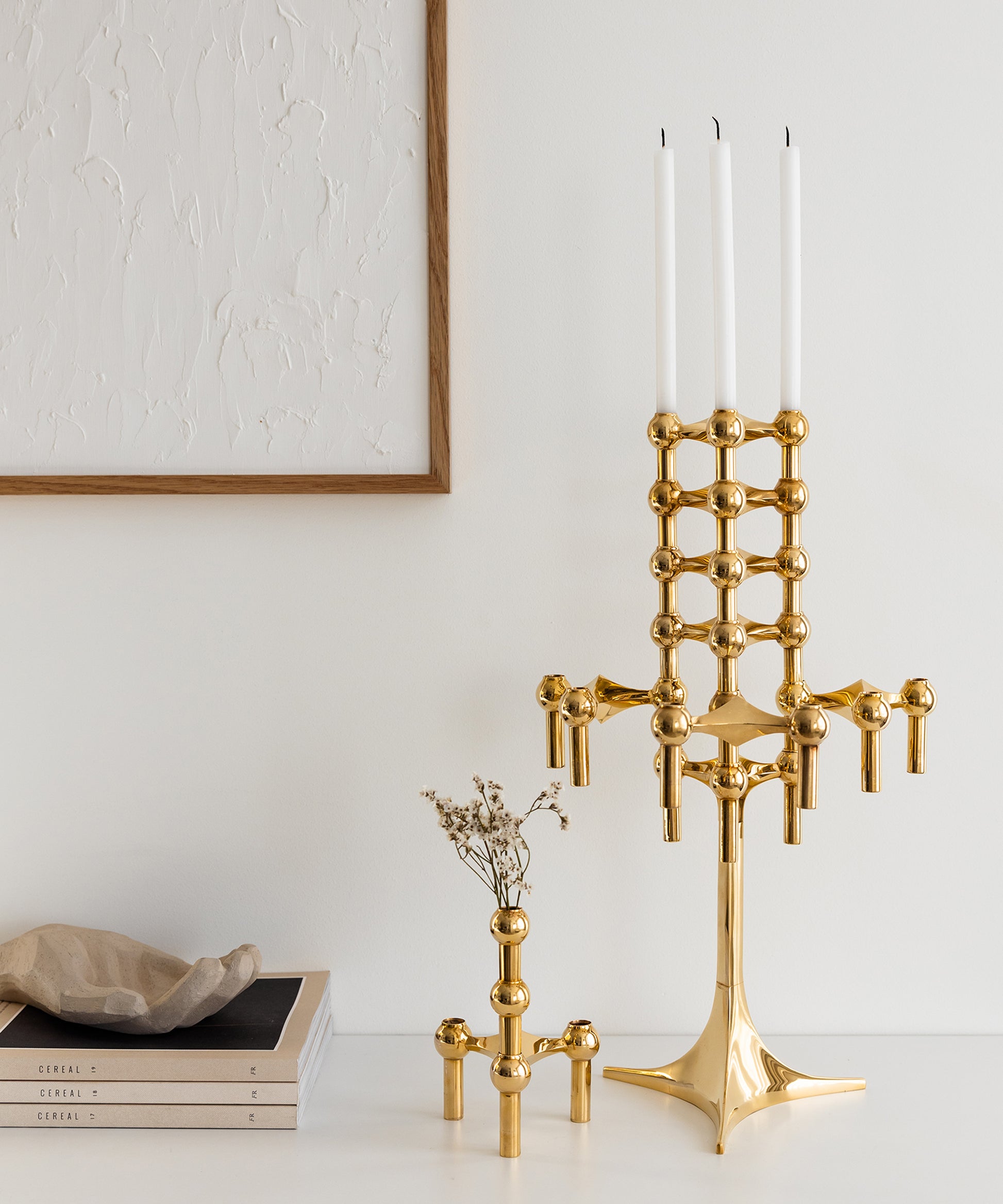 The classic piece was launched using Werner Stoff’s original drawings and since then more designs from the 1960’s design era have been revived. Today, the collection consists of the STOFF Nagel candle holder, vase, bowl, stand, wall hanger, floor stand, glass base and exclusive candles. The functional design touches the Scandinavian minimalism and the stackable approach allows you to combine and create individual sculptures by an infinite of modules. The iconic design is considered a work of art – a personal statement with artistic freedom ready to assume the shape of its owner’s unique creativity.