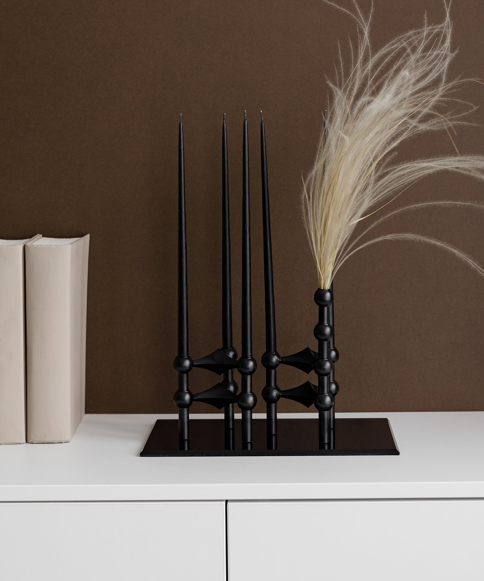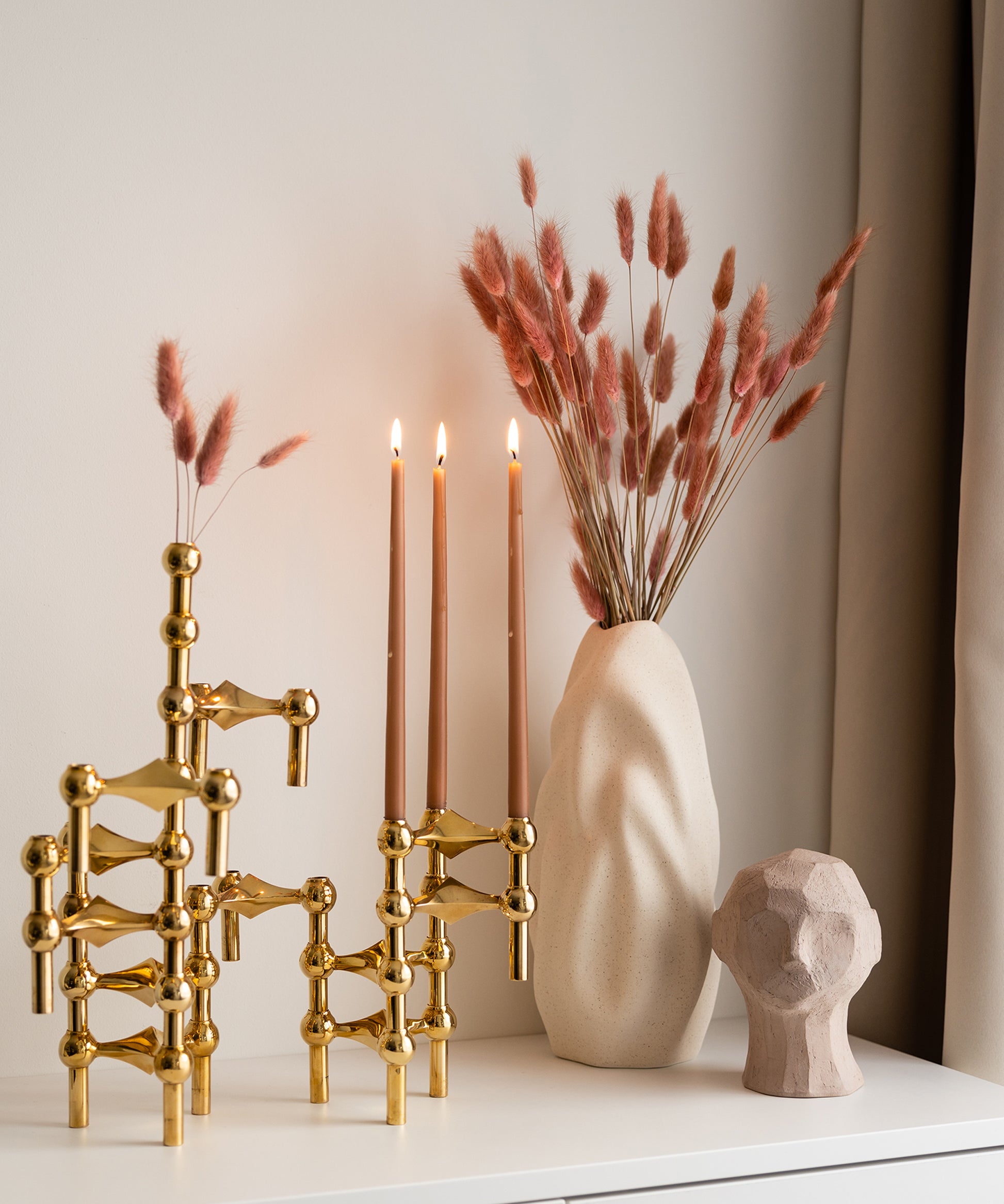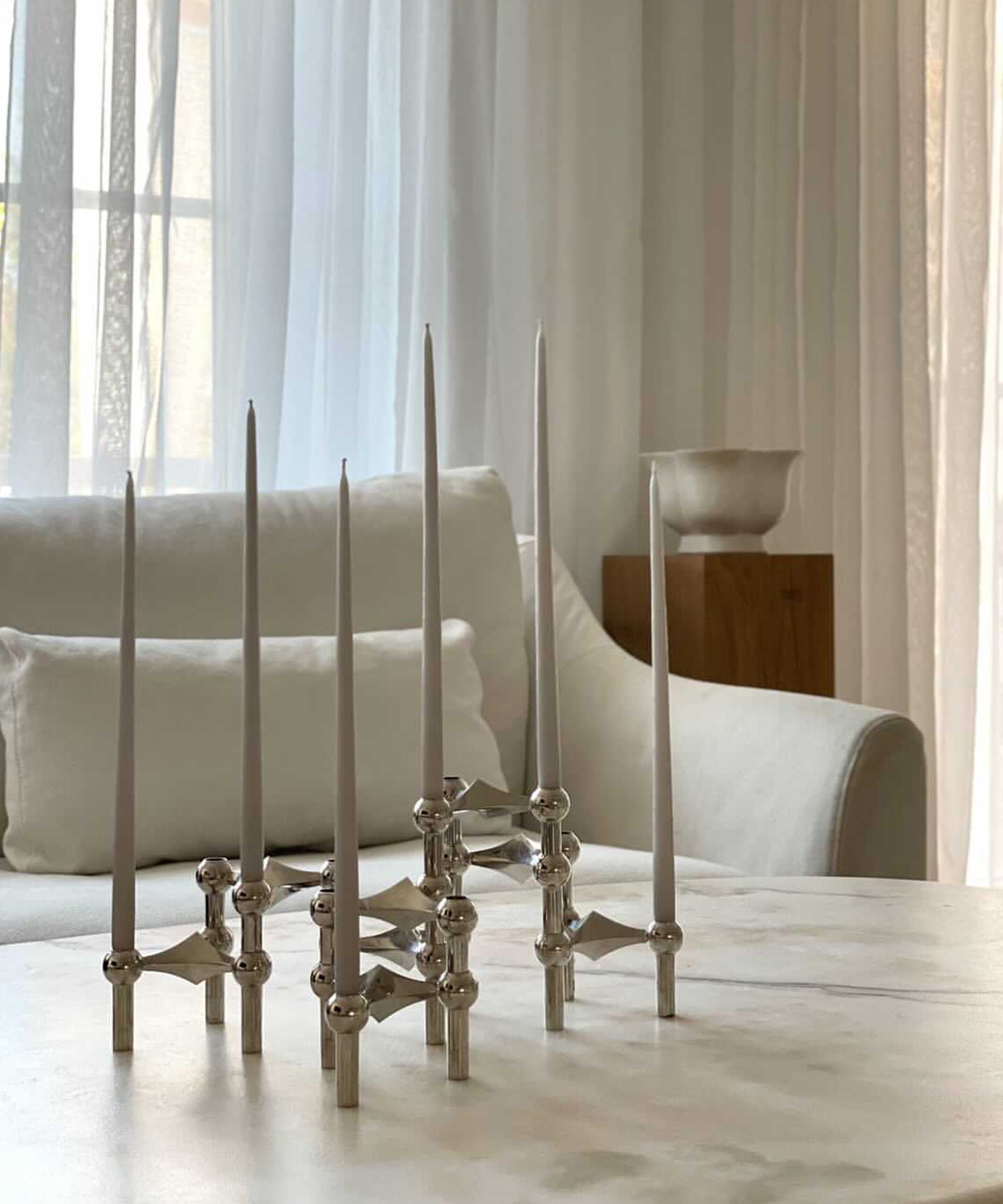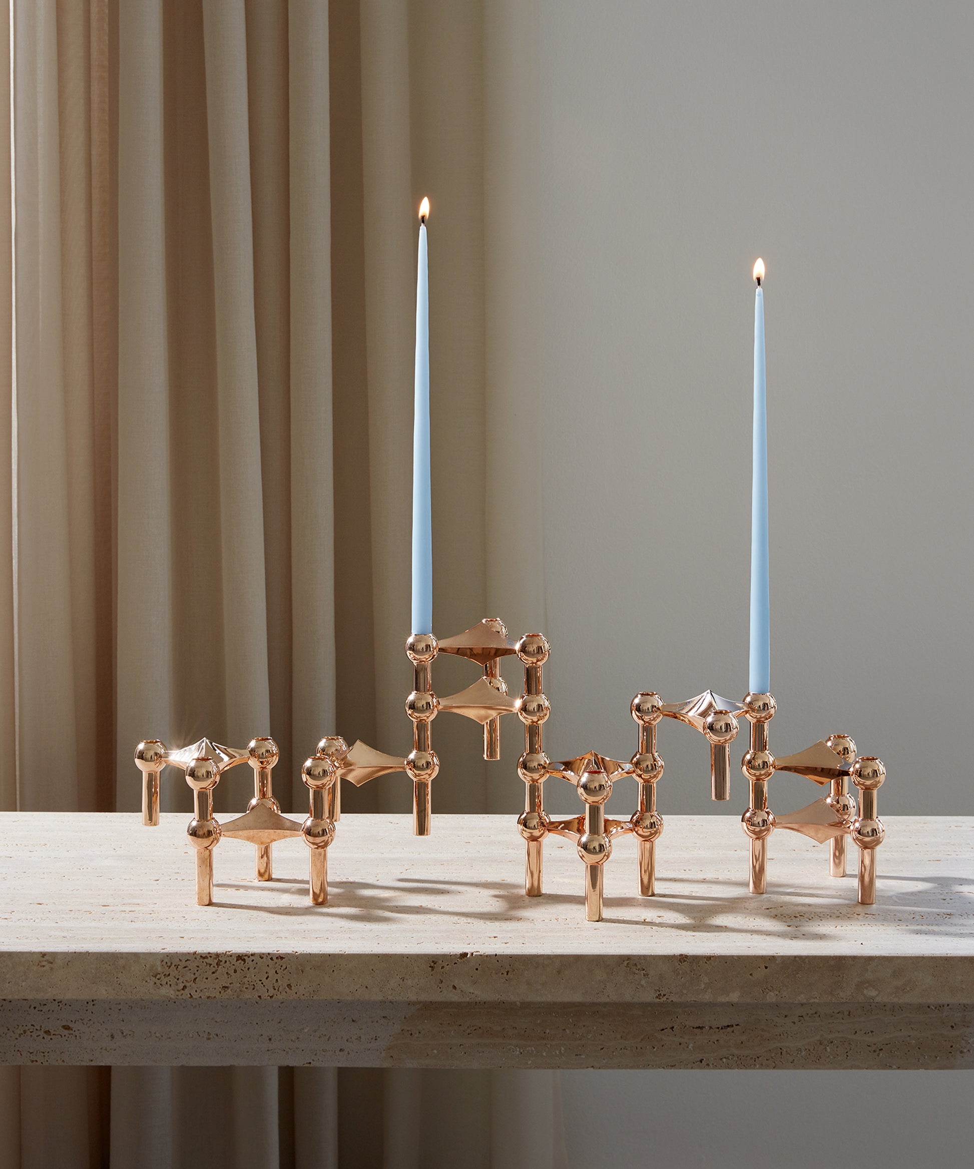 The classic piece was launched using Werner Stoff’s original drawings and since then more designs from the 1960’s design era have been revived. Today, the collection consists of the STOFF Nagel candle holder, vase, bowl, stand, wall hanger, floor stand, glass base and exclusive candles. The functional design touches the Scandinavian minimalism and the stackable approach allows you to combine and create individual sculptures by an infinite of modules. The iconic design is considered a work of art – a personal statement with artistic freedom ready to assume the shape of its owner’s unique creativity.