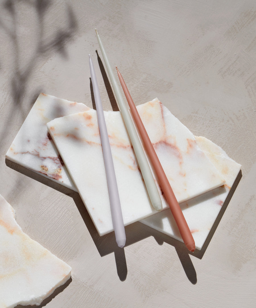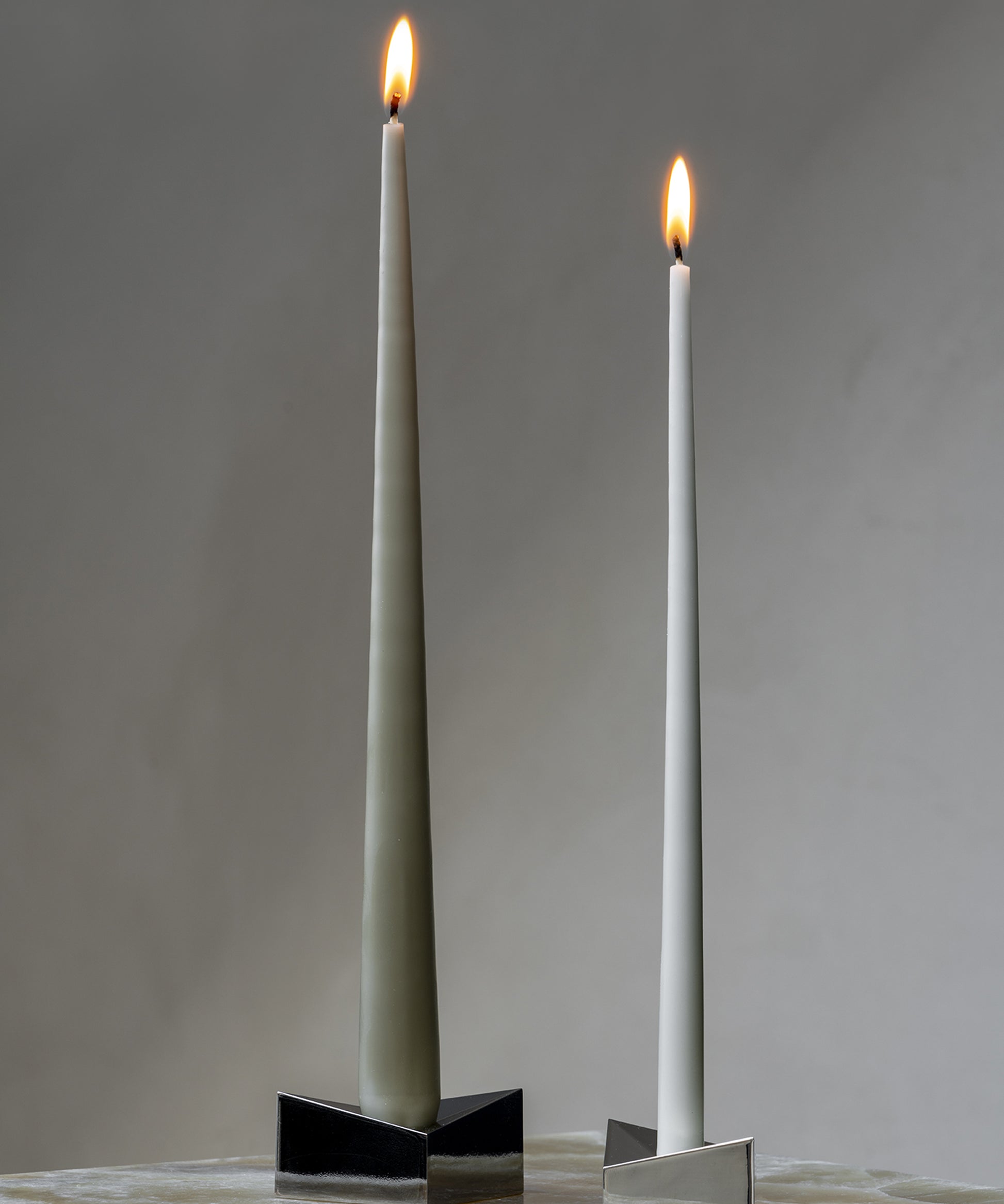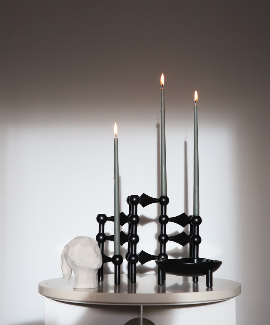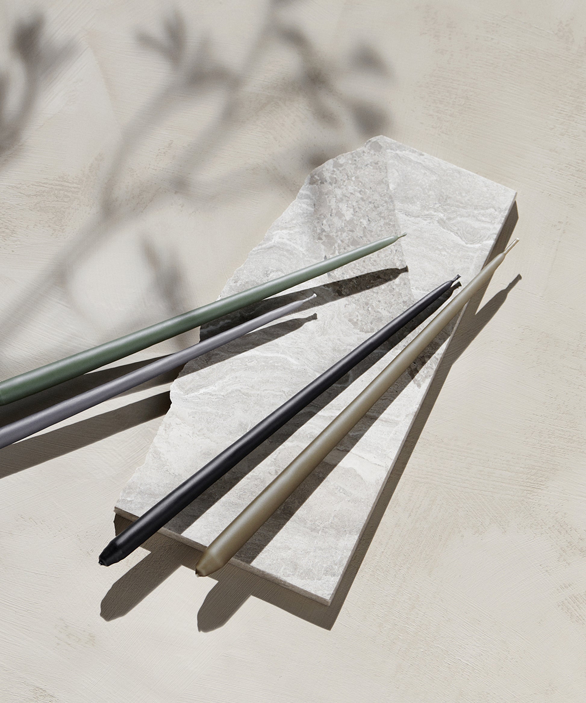 The exclusive, hand-dyed STOFF Nagel taper candles by Danish Ester & Erik have a long and tapered shape with a cone-shaped bottom to make them fit perfectly in the STOFF Nagel candle holders.