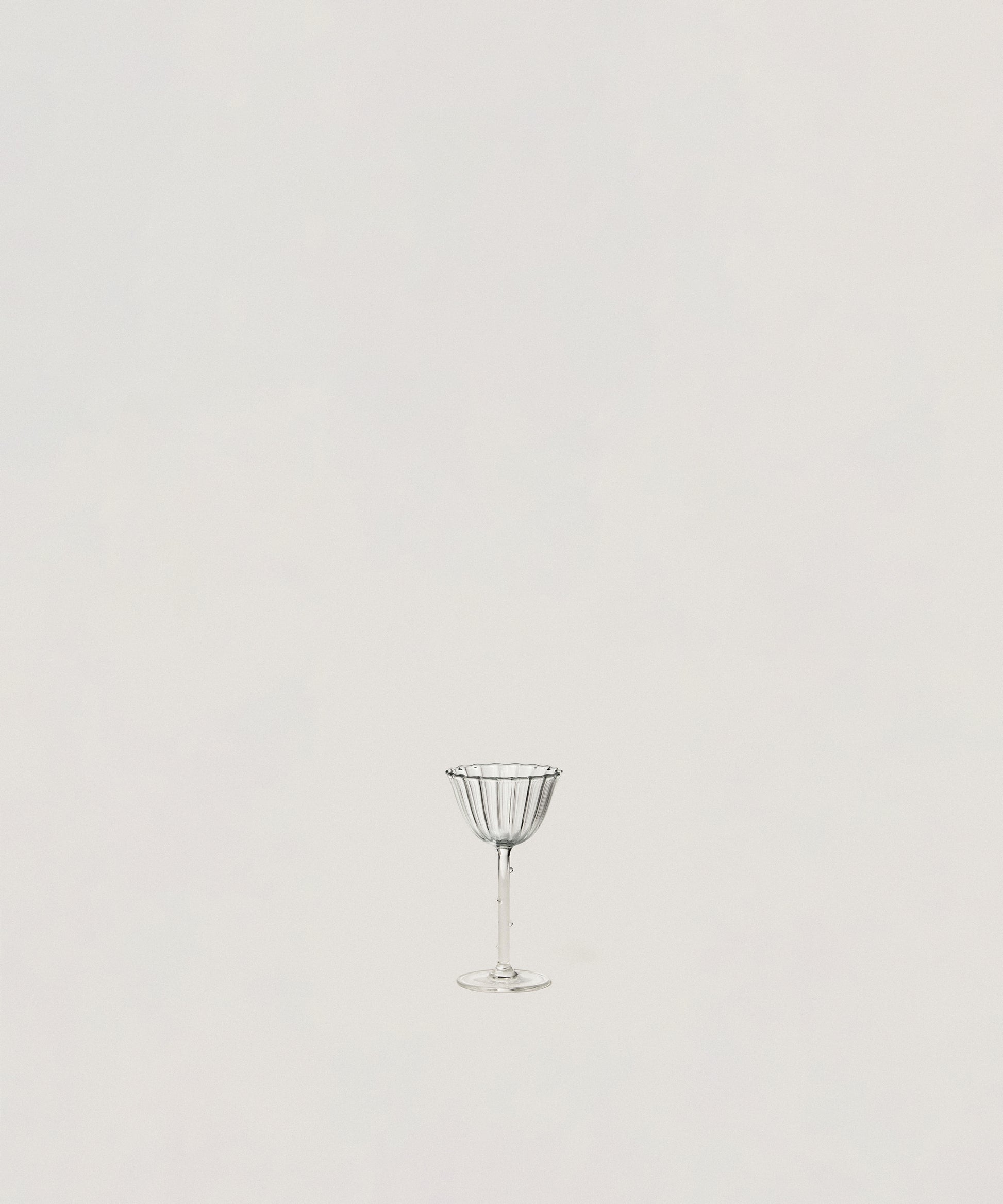 The glasses fan out like the heads of flowers, giving the effect of a bouquet when grouped together. Each glass is specific to a particular type of drink yet they are united in their ability to be arranged in a harmonious collection. The collection consists of a coupe, a flute, a wine glass, an aperitif glass, and a cordial glass – everything a host needs for a full evening.