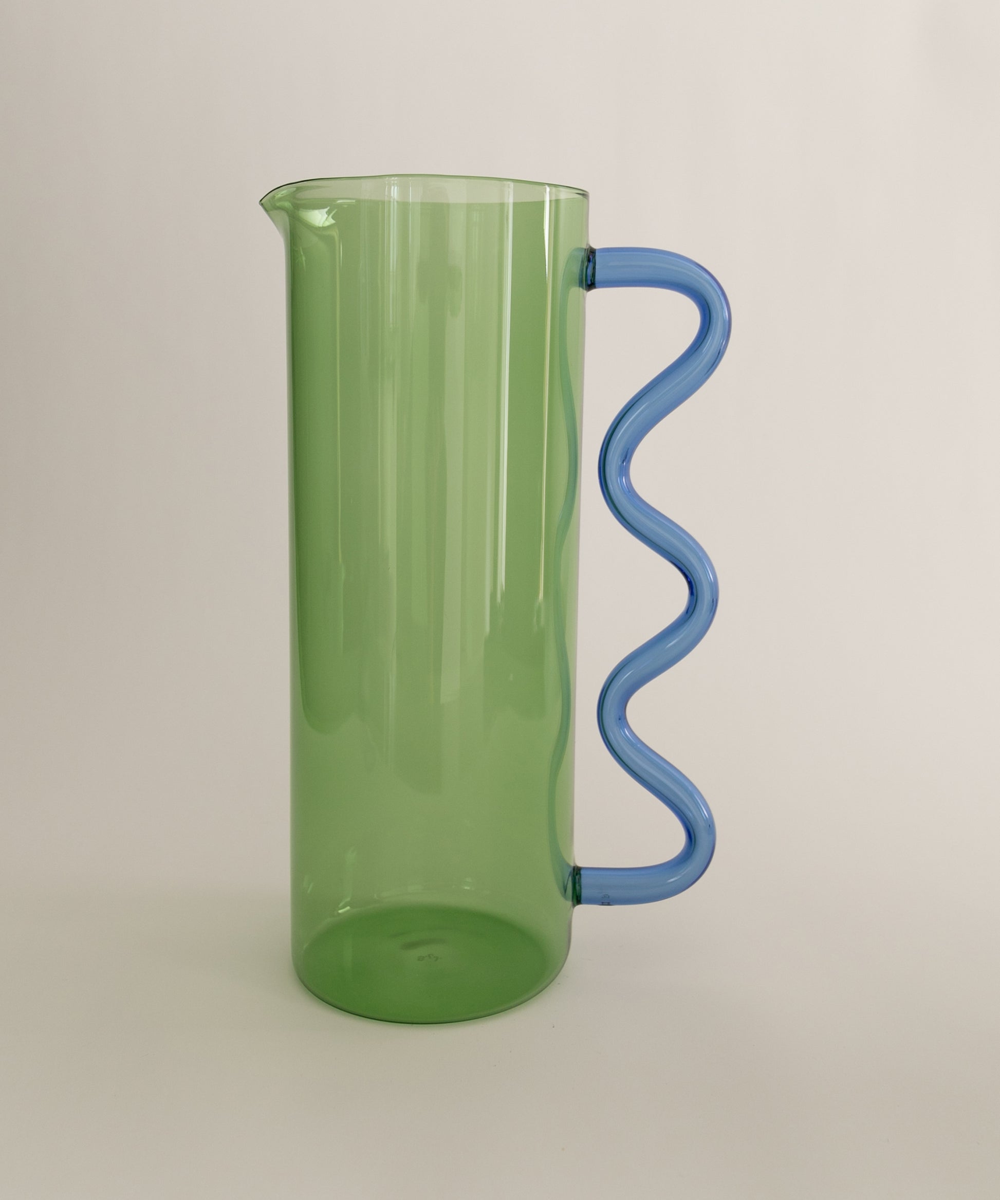 A borosilicate glass pitcher, for pouring water, juice, watering plants, holding flowers, or any other use you can think of.