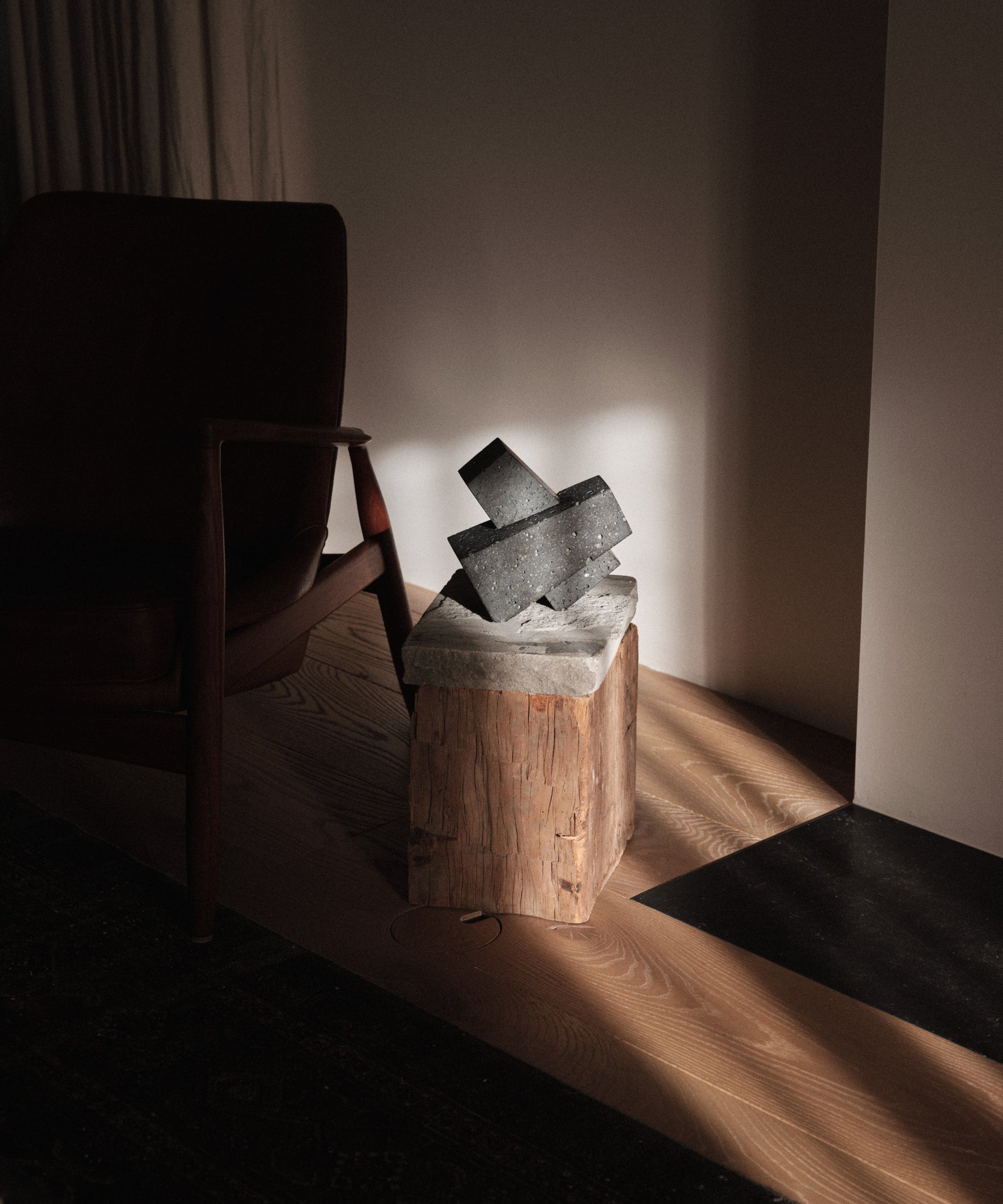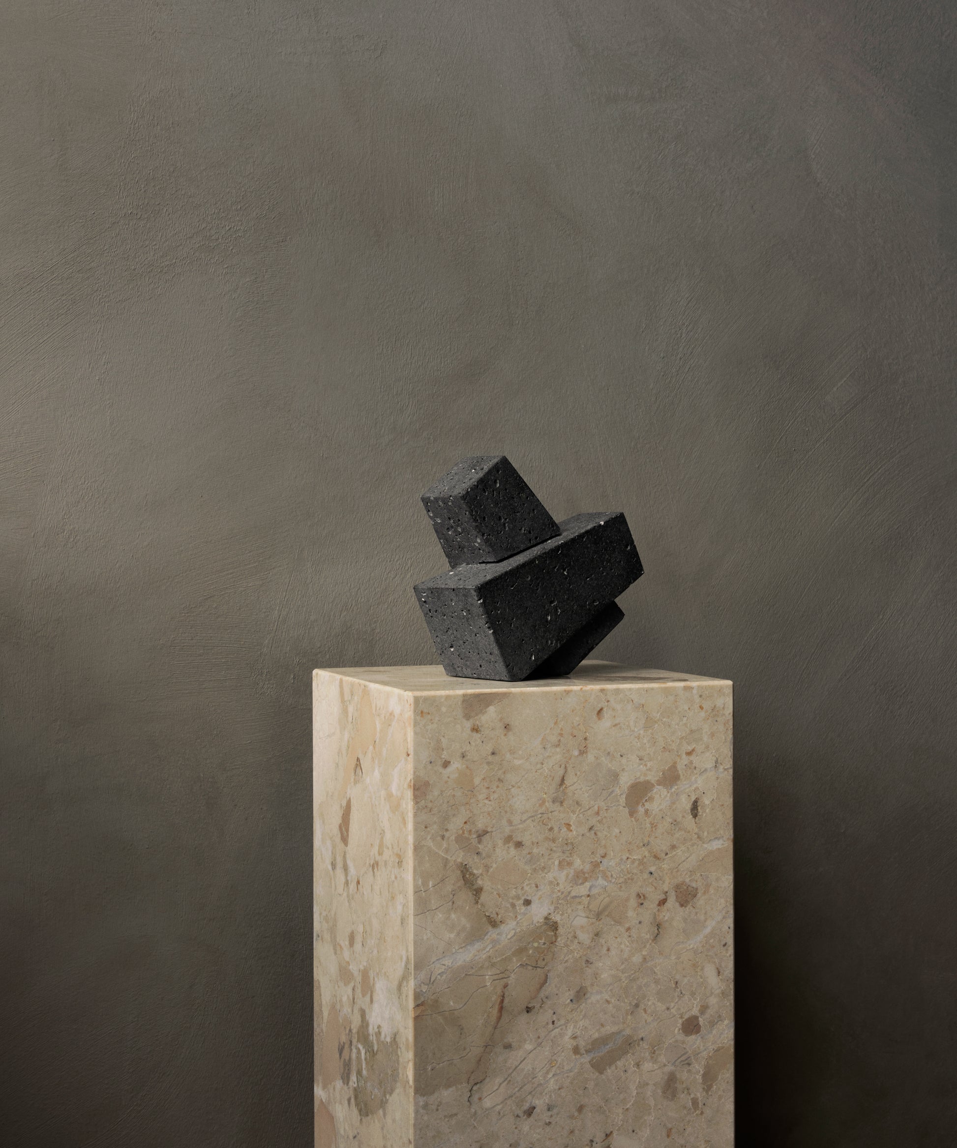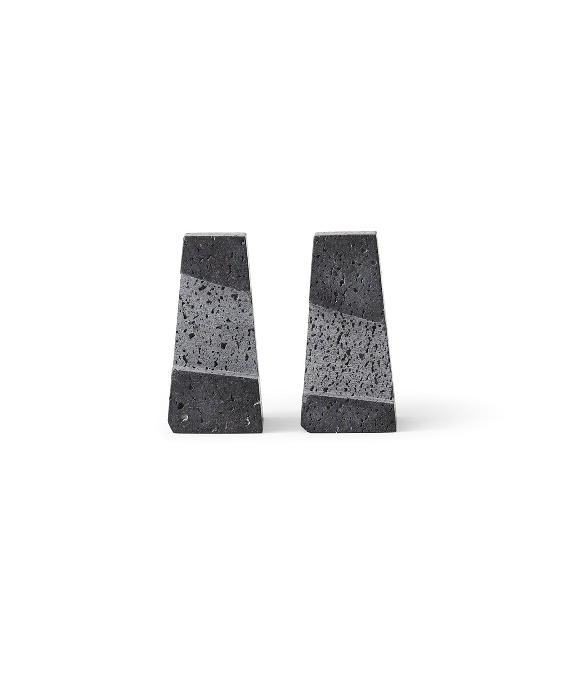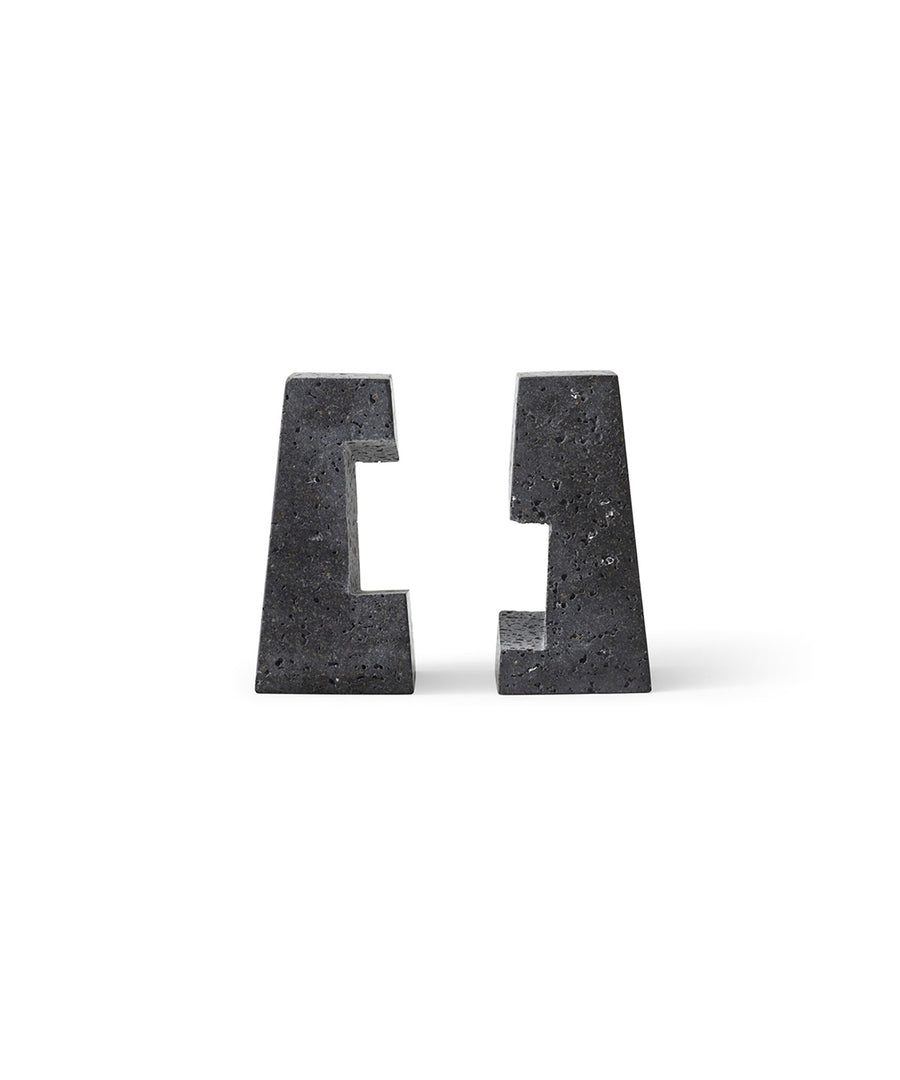 Designed to neatly hold books in place, the abstract forms of the Converge Bookends are shaped from lava stone a dark and porous material with a textured surface.