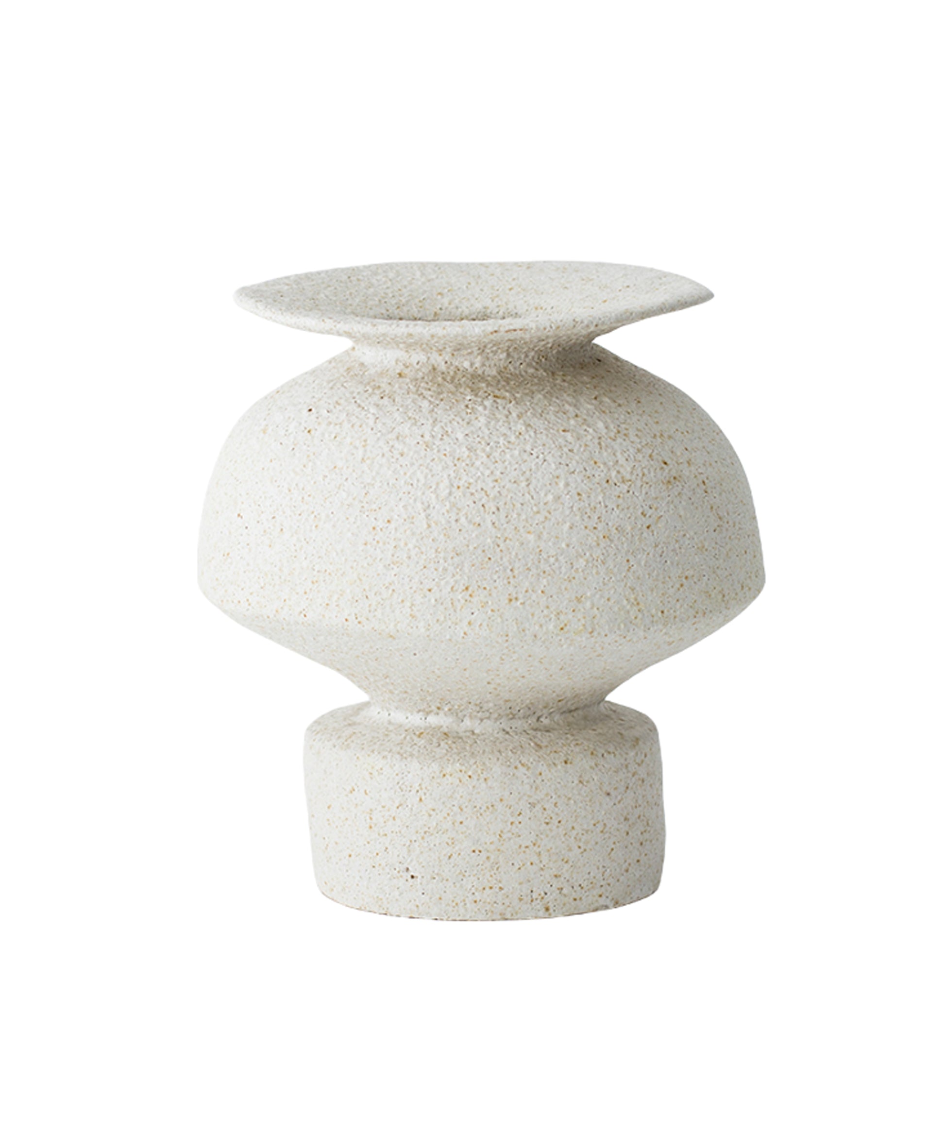 The stoneware vase in handmade to order by the Valencia-based studio, Canoa Lab.