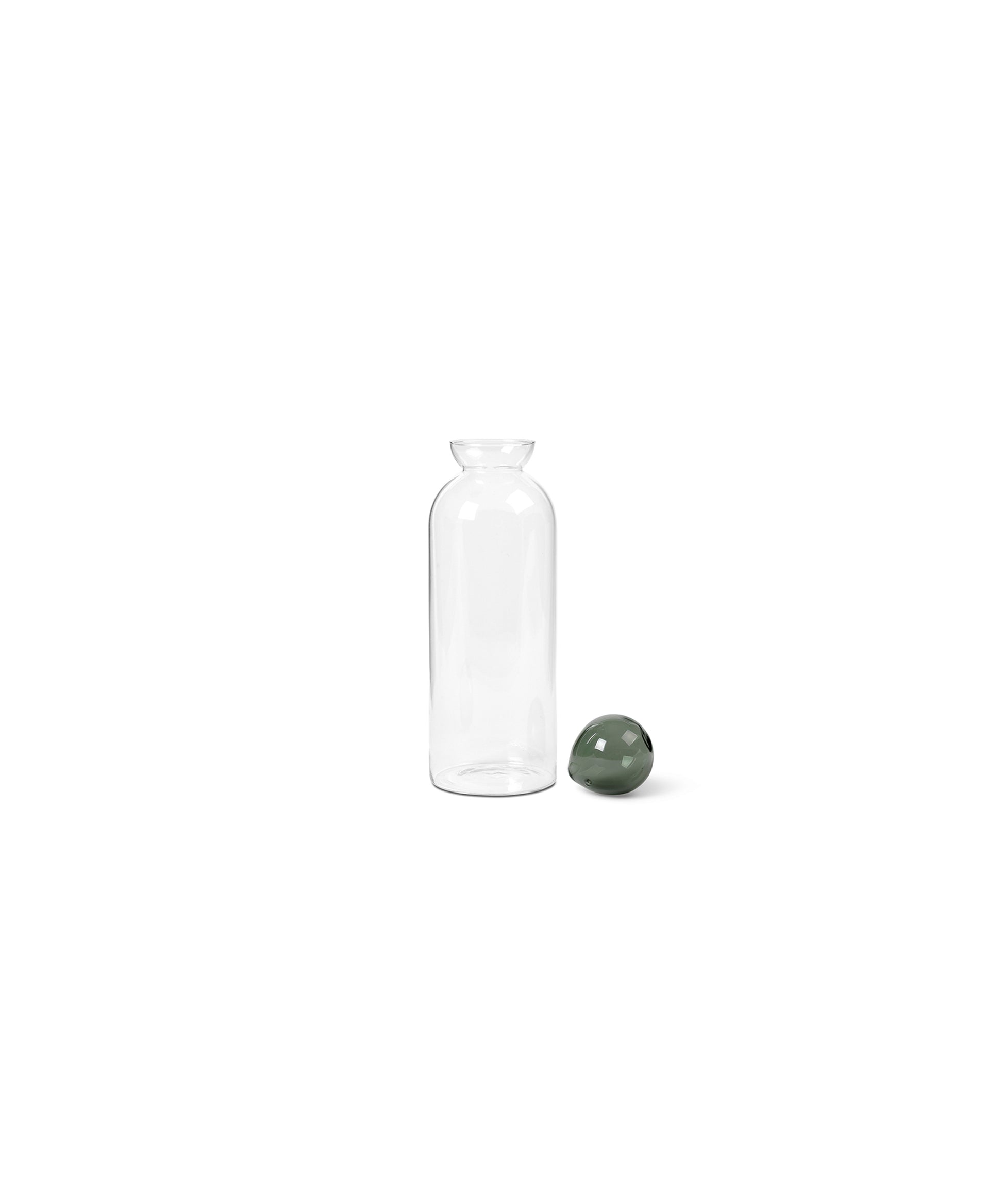The sphere-shaped colored glass stopper sits like a bubble of air on top of the mouth-blown carafe, designed to elegantly hold water, juice, or other liquids. Made for everyday use, pair it with matching glasses to create a stylish set.