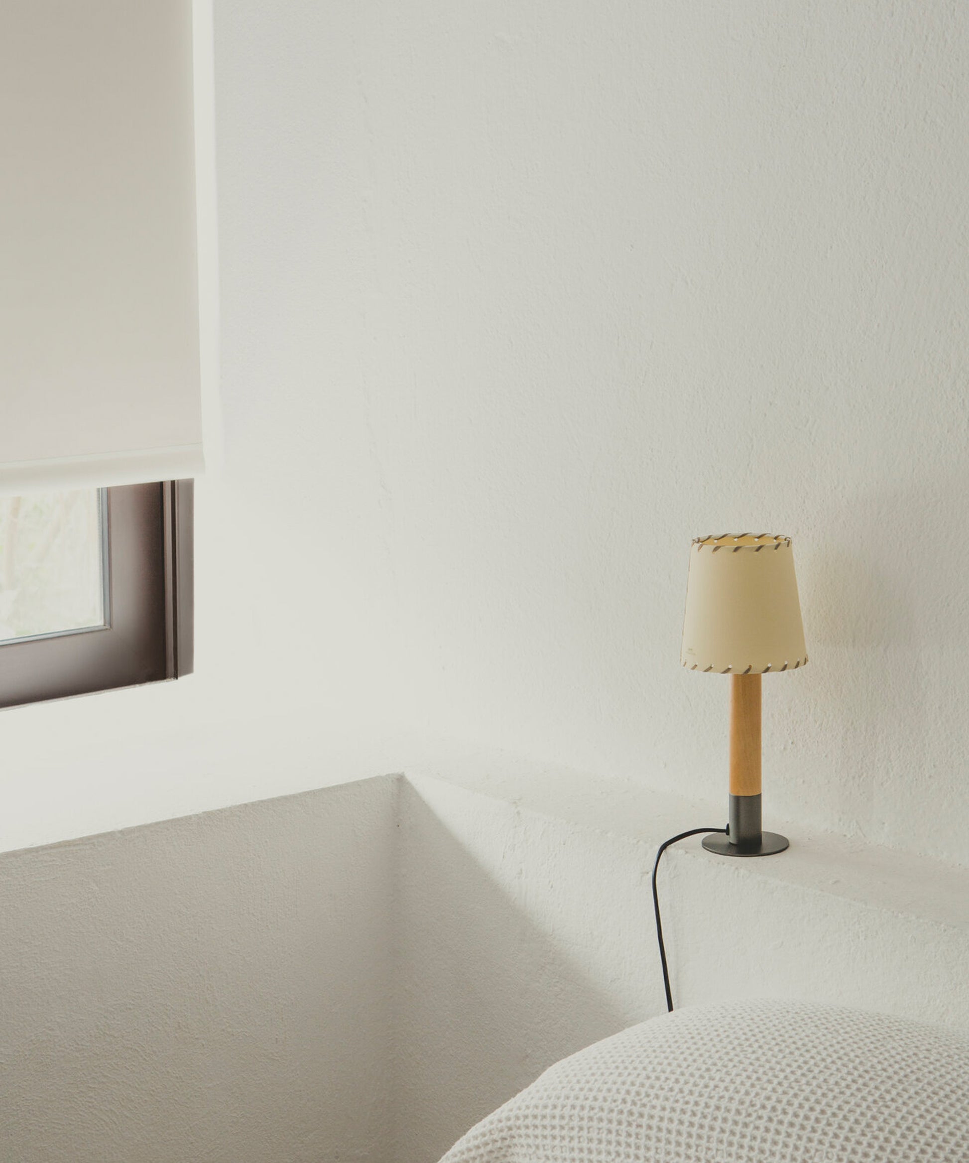 This pocket edition of the Básica lamp, for use in a setting requiring a smaller lamp or less intense light, is ideal for bedside tables or isolated light points.