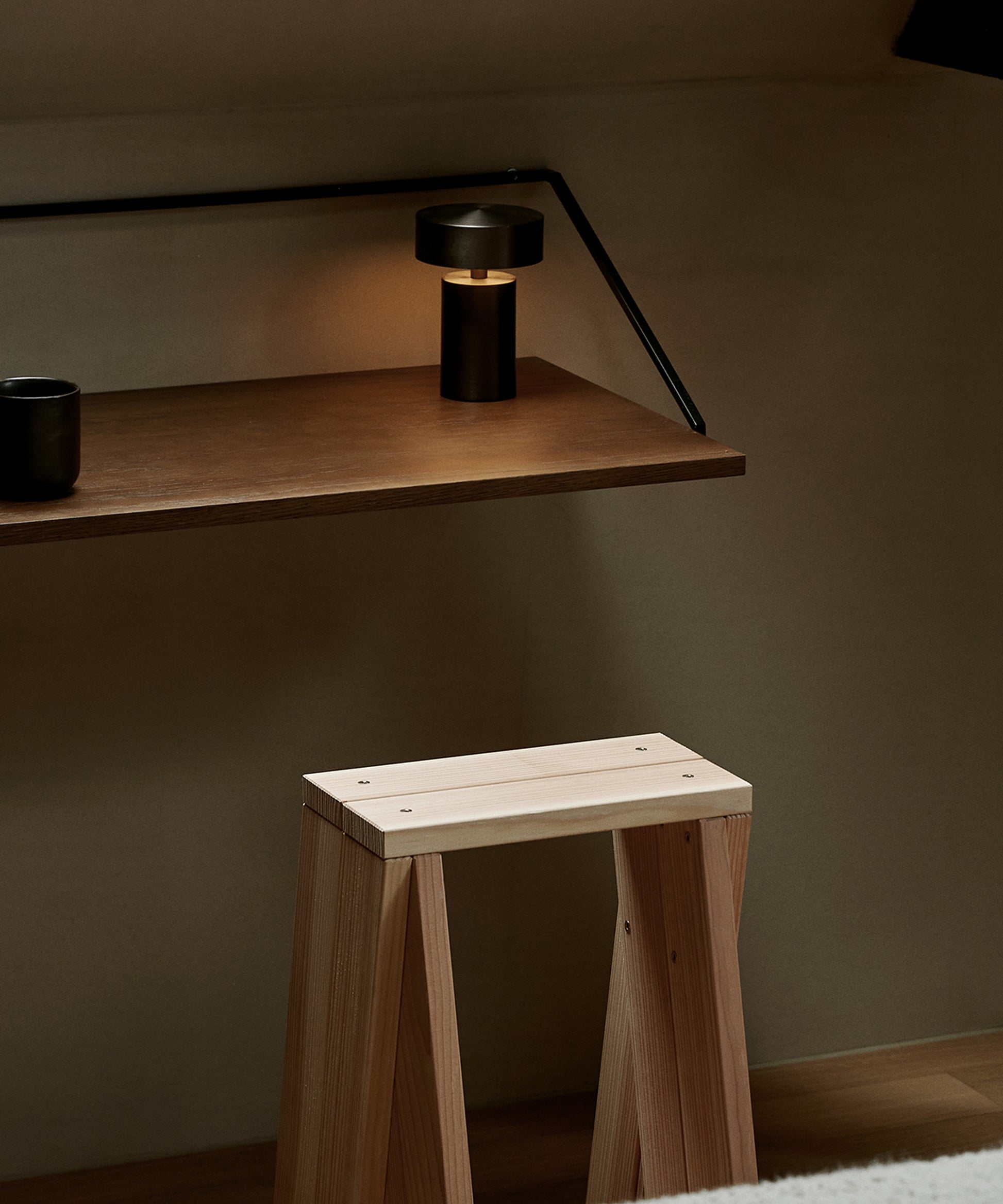 • A portable and rechargeable table lamp, inspired by bollards aboard ships,