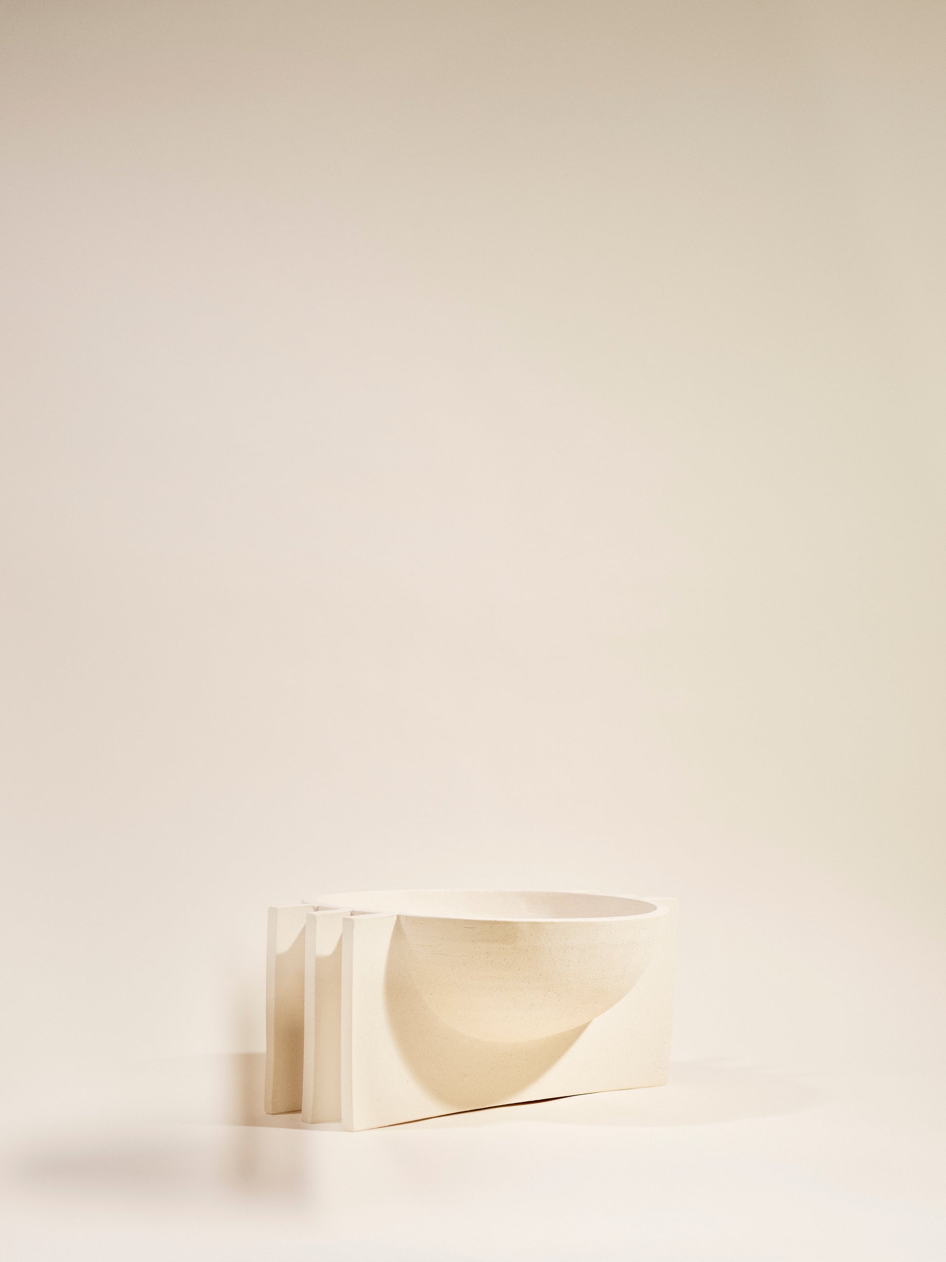 Taking inspiration from scape travel, these sculptural pieces combine stark, futuristic forms with the warmth of ancient ceramic vessels. The collection explores the dichotomy of machine-like repeating planes though a juxtaposing medium.
