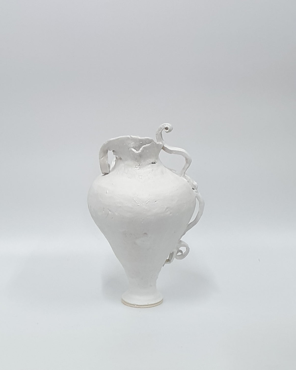 AnnaLeaClelia Tunesi is a London-based ceramicist who fuses ancient pottery with experimentation. Her combined use of throwing and coiling techniques allows for sudden changes and offers more freedom in the creation of the final forms. The result is a distinctive style that the artist refers to as "contemporary archaeology."
