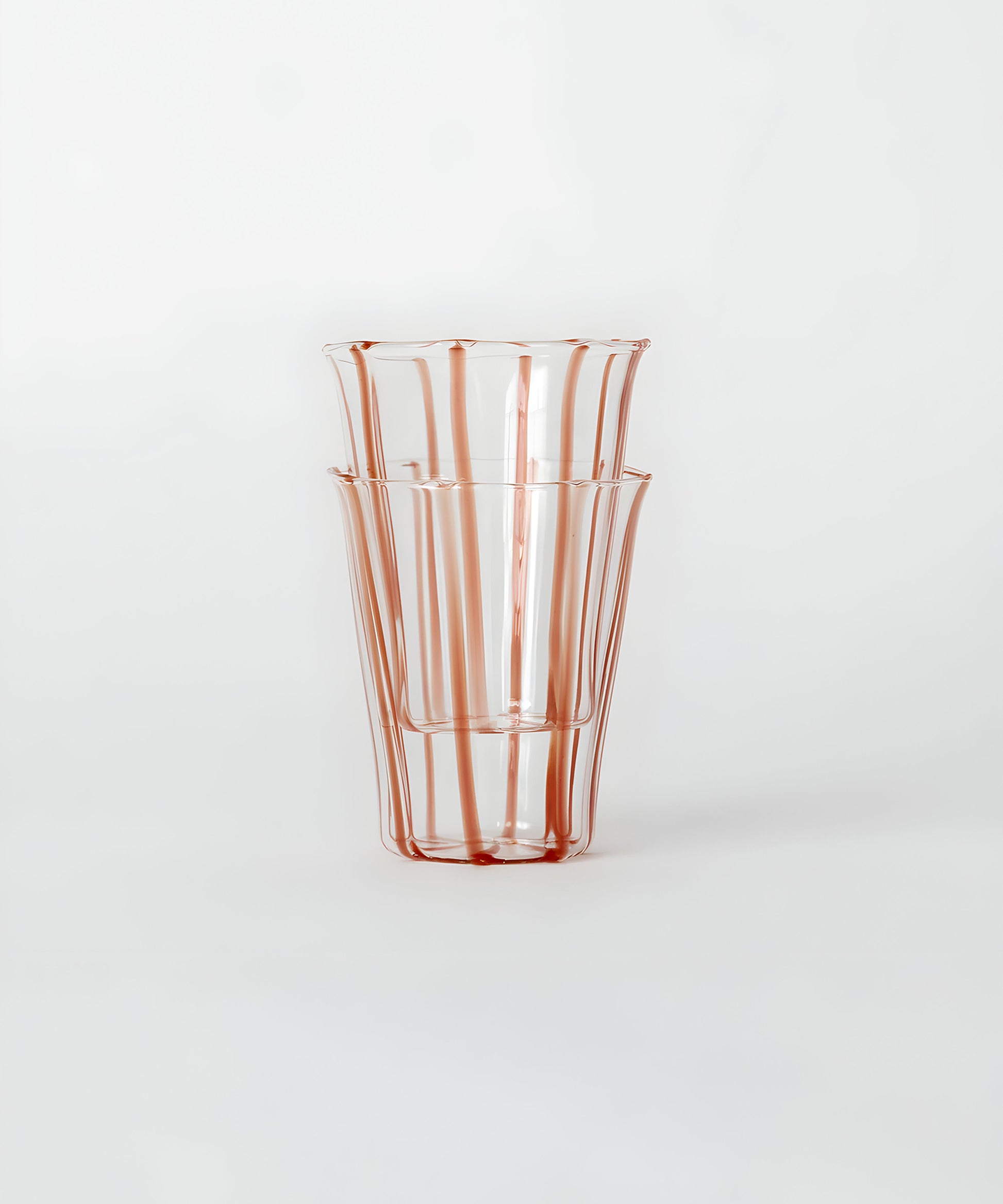 A sweet sibling to the classic, clear Le Verre set, Le Verre Bonbon features imperfect pastel stripes that run vertically along the curvature of the cup. Available in a variety of colors and two sensible sizes for all tastes and types of hosting.