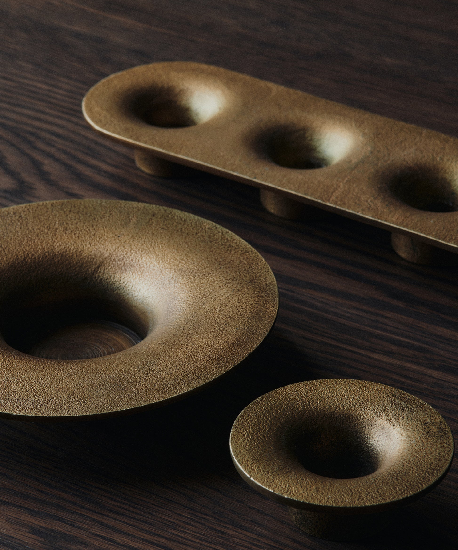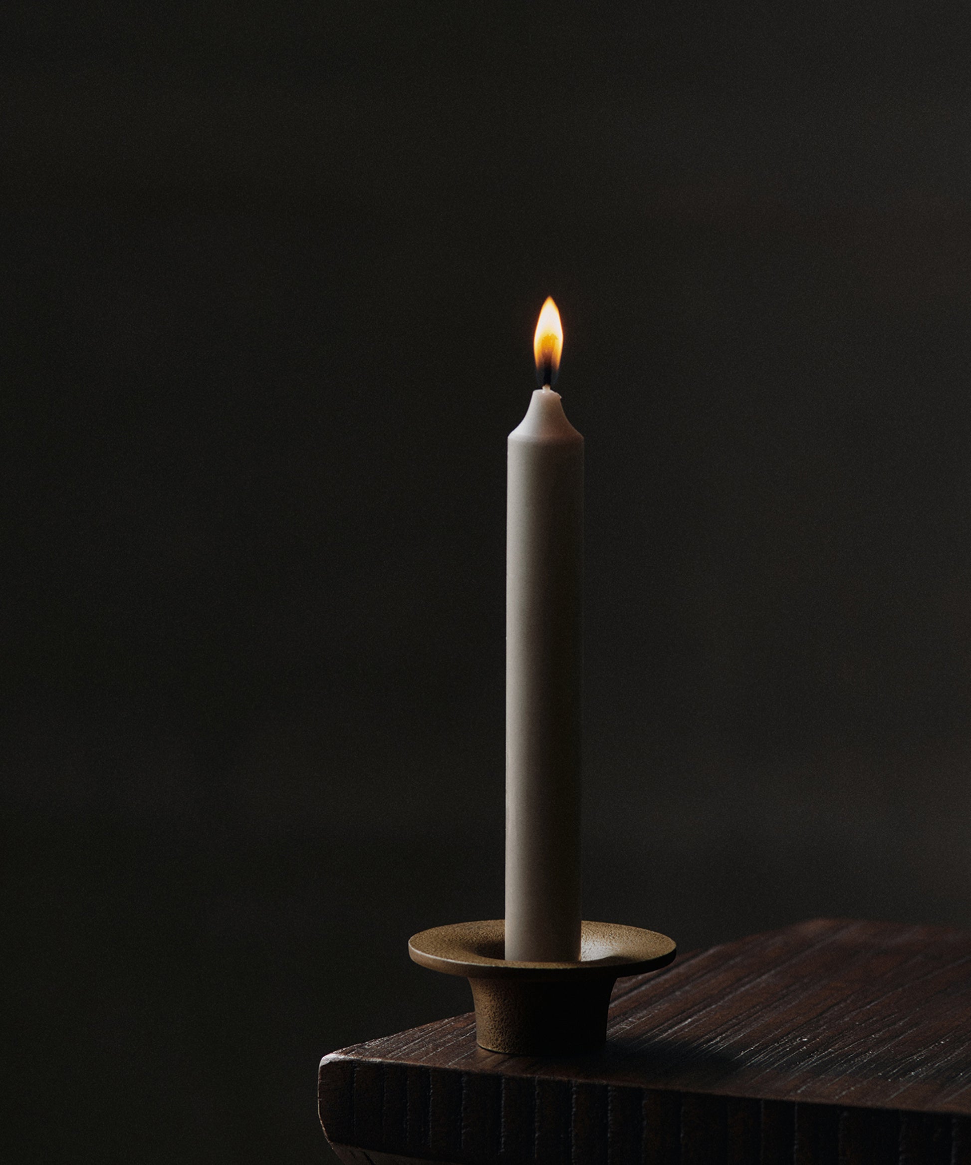 Crafted from cast aluminium with a textured sand-cast finish, its softened edges and subtle curves create a quiet presence. Designed to partially cradle the candle within its form, it adds a sense of balance and serenity to any setting, making it perfect for both everyday rituals and seasonal moments.