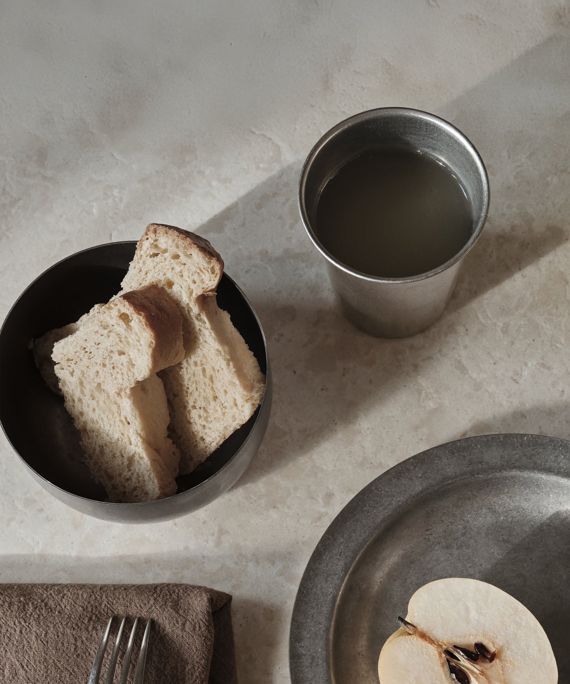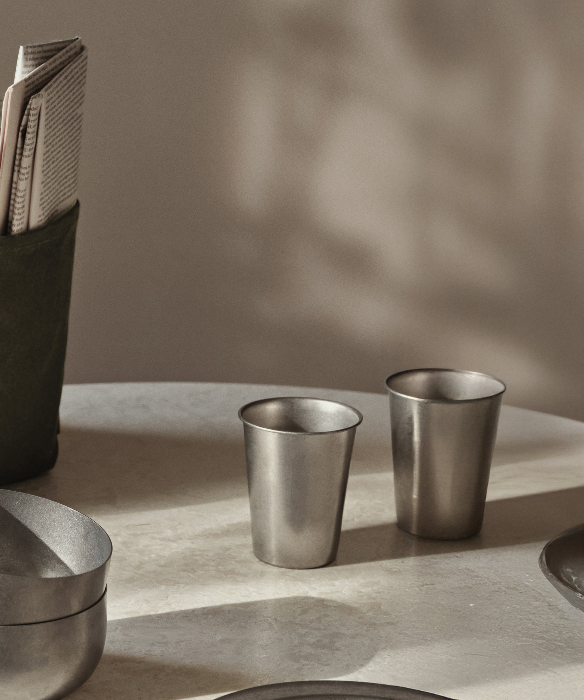 • The Tumbled Cup is crafted from durable stainless steel and features a unique tumbled texture.