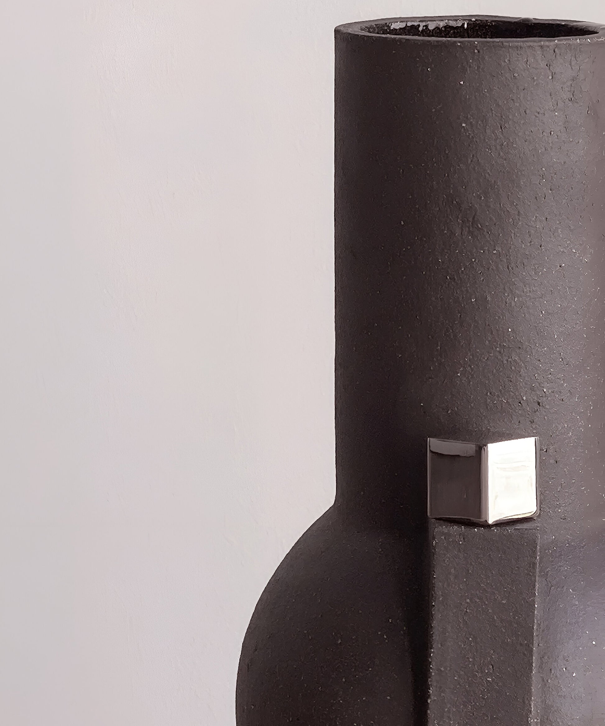 Inspired by ancient Grecian vessels once used in daily rituals, Cubic features reductive silhouettes reimagined with solid metal adornments that trace and punctuate. The polished metal surface offers reflections of its surroundings while striking a contrast to the textured clay body. Hand-built in Brooklyn.