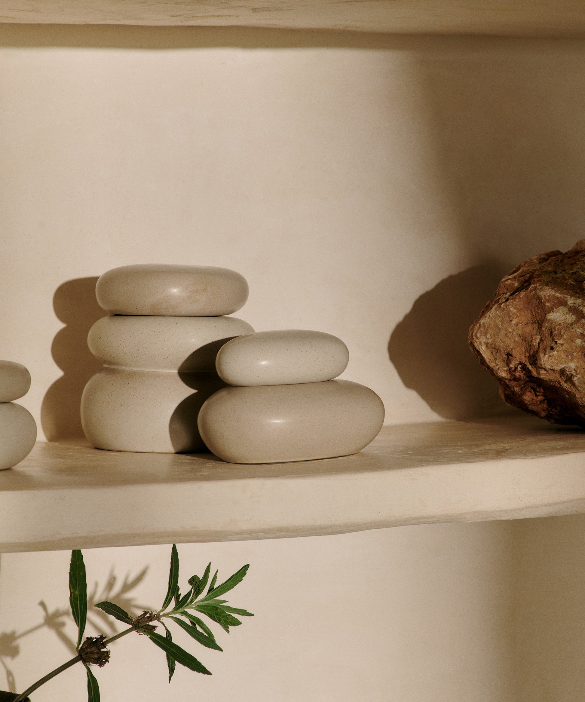The Pebble Box draws inspiration from the natural beauty of stacked pebble stones along the coast, with each box mimicking the smooth, rounded shapes of pebbles.