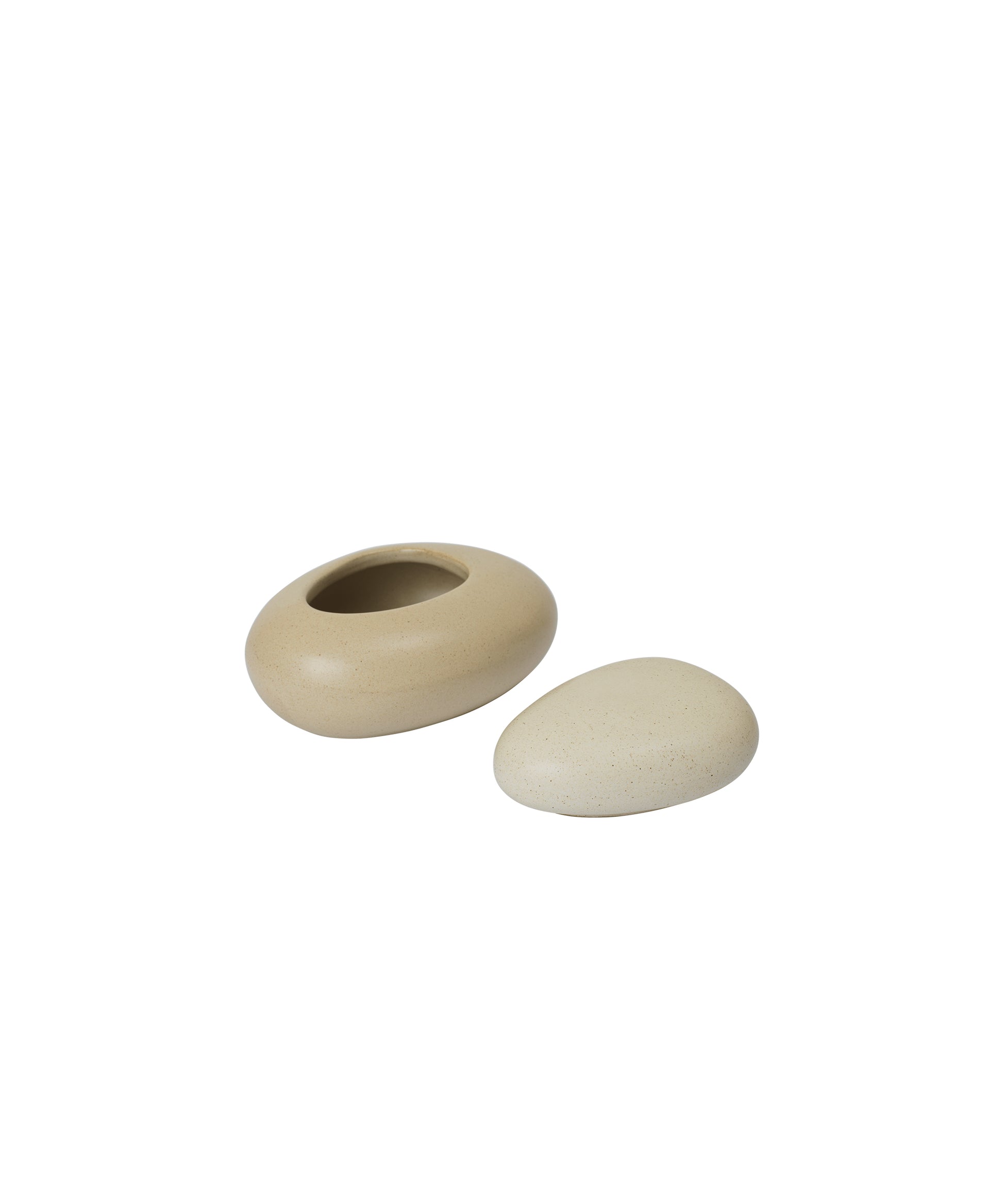 Crafted from glazed ceramic, it features a sleek, polished finish that highlights the elegance and calming appeal of the design. The Pebble Box is available in different sizes and can be displayed individually or stacked together for a dynamic, layered look.