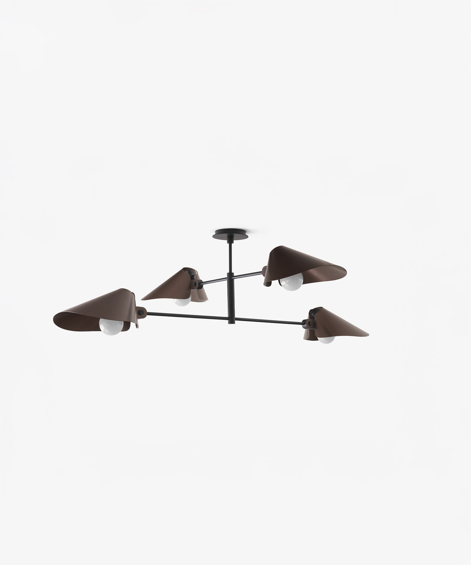 The curved shades envelope the light source, which frame and guides the diffused light with precision.