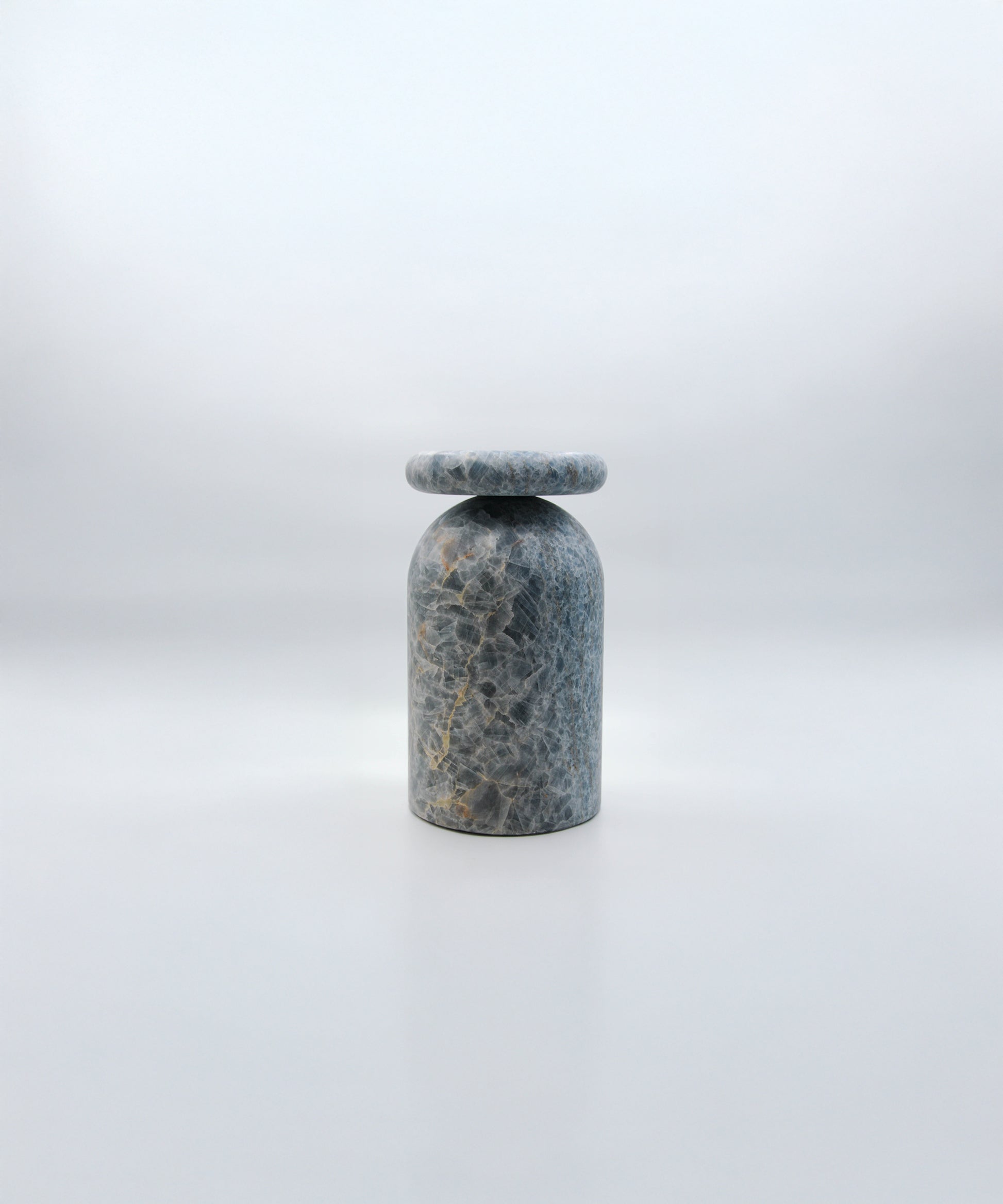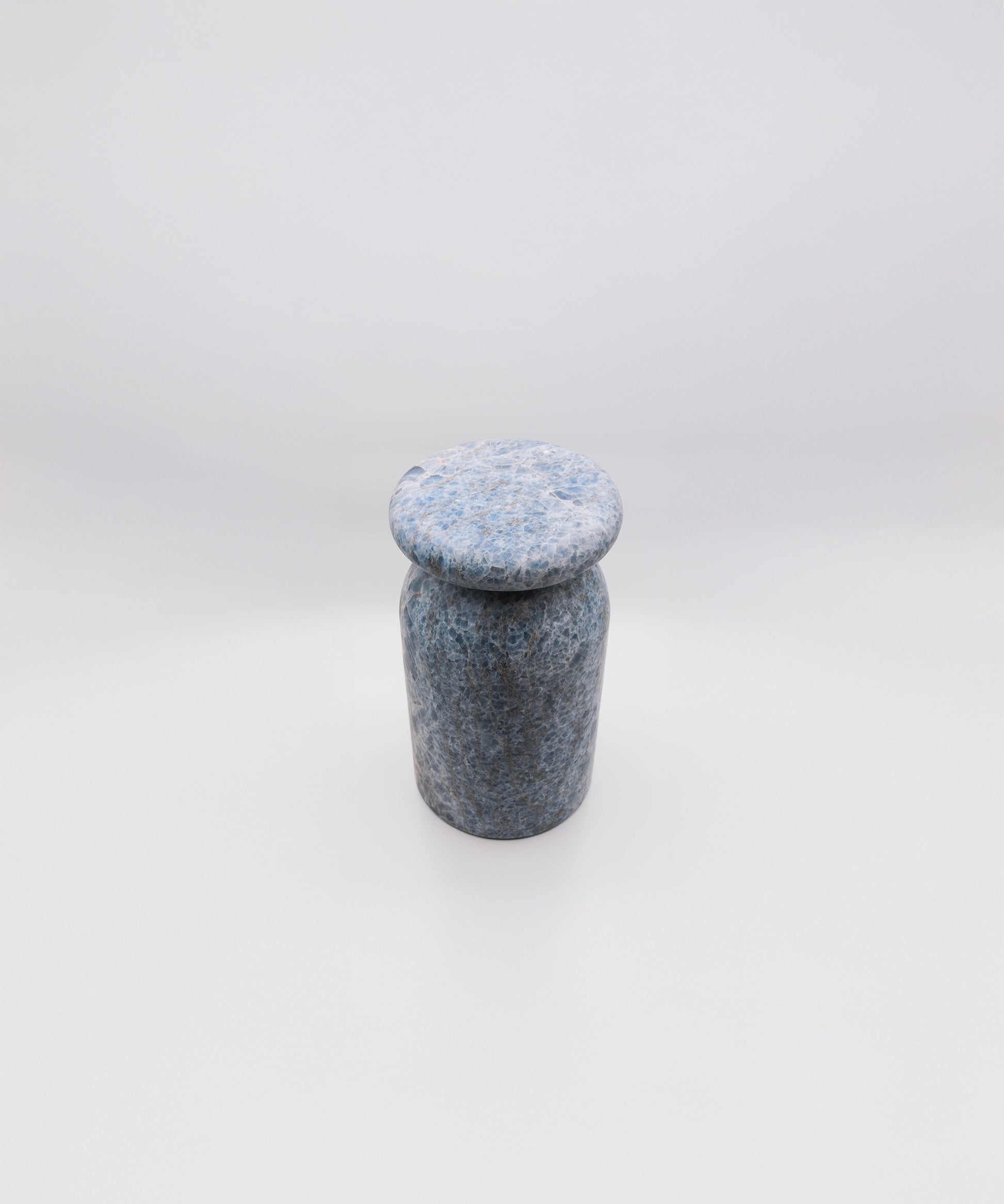 Cult stool/ side table; a hand-sculpted stone from a Mexican marble and Mexican onyx conglomerate, remits to primal sculptural-architectural language while displaying materials in a modernist manner.