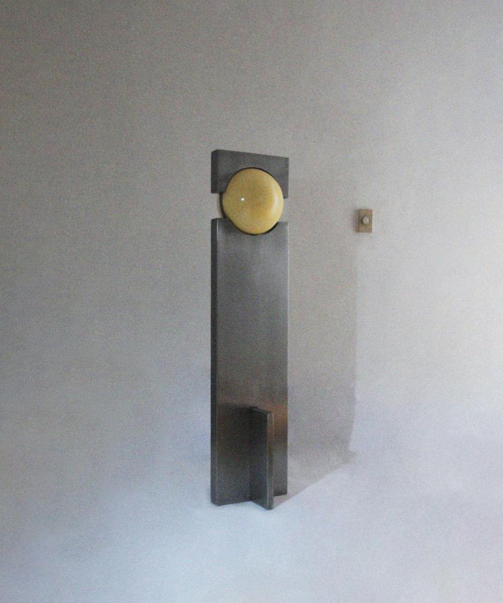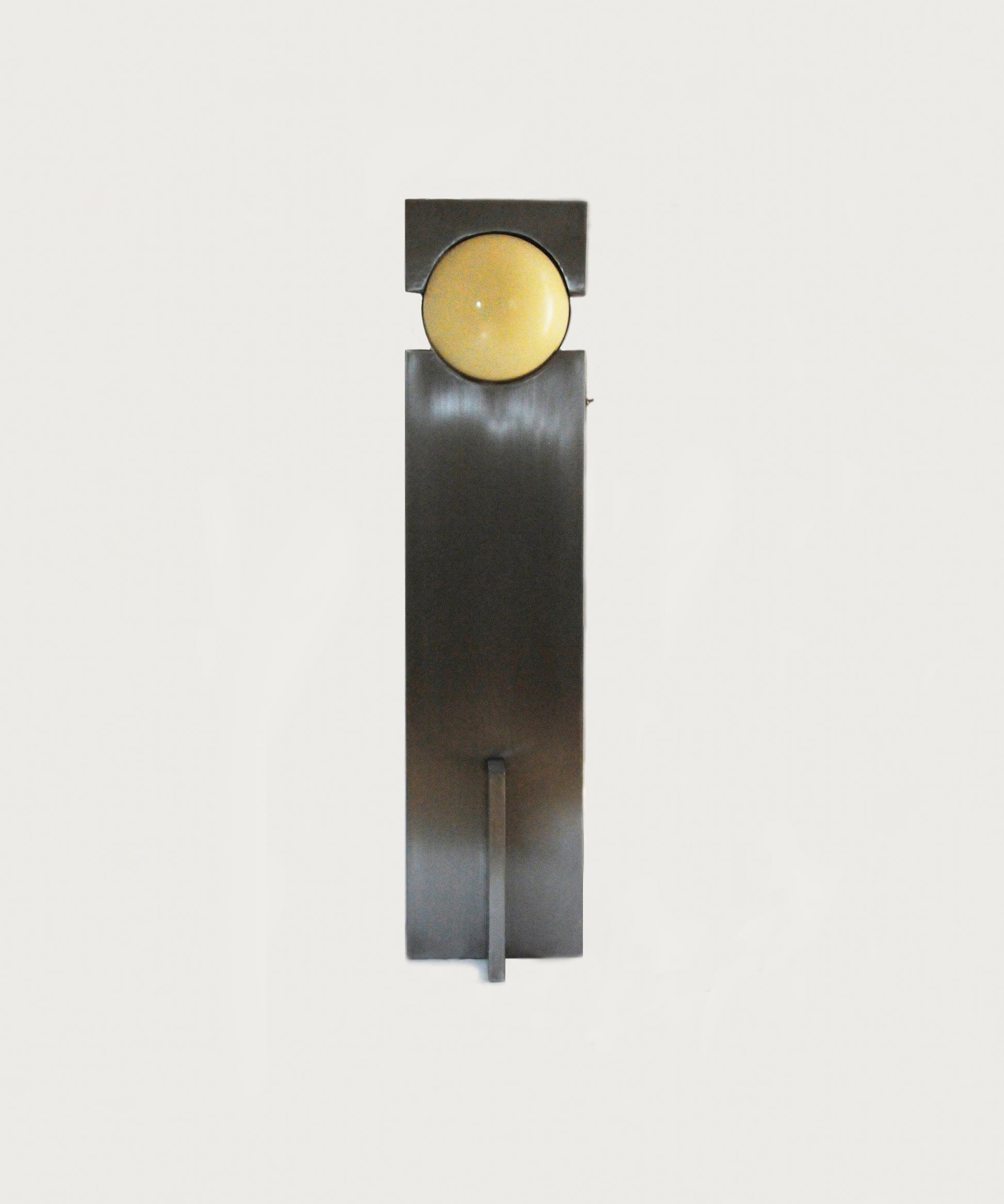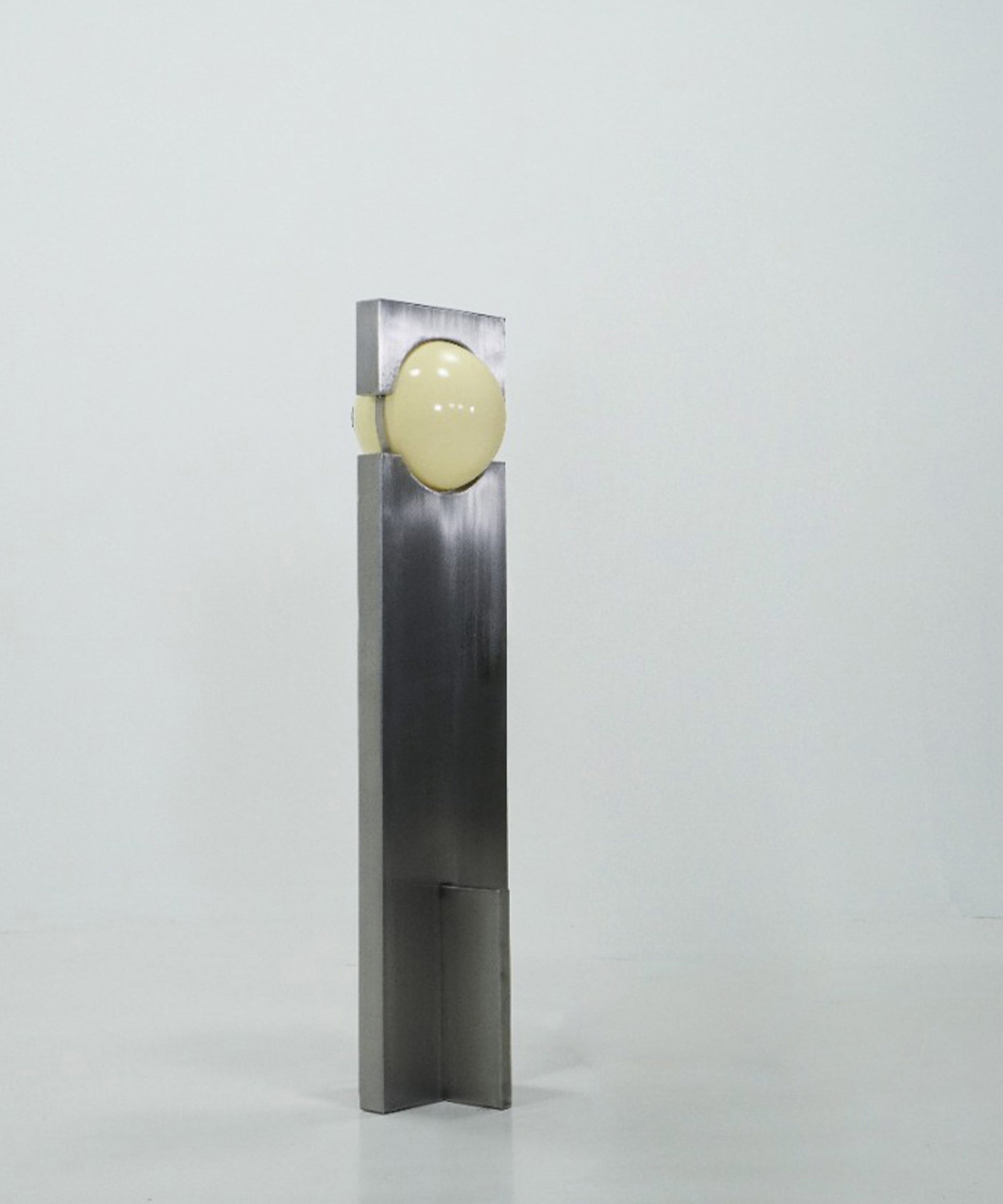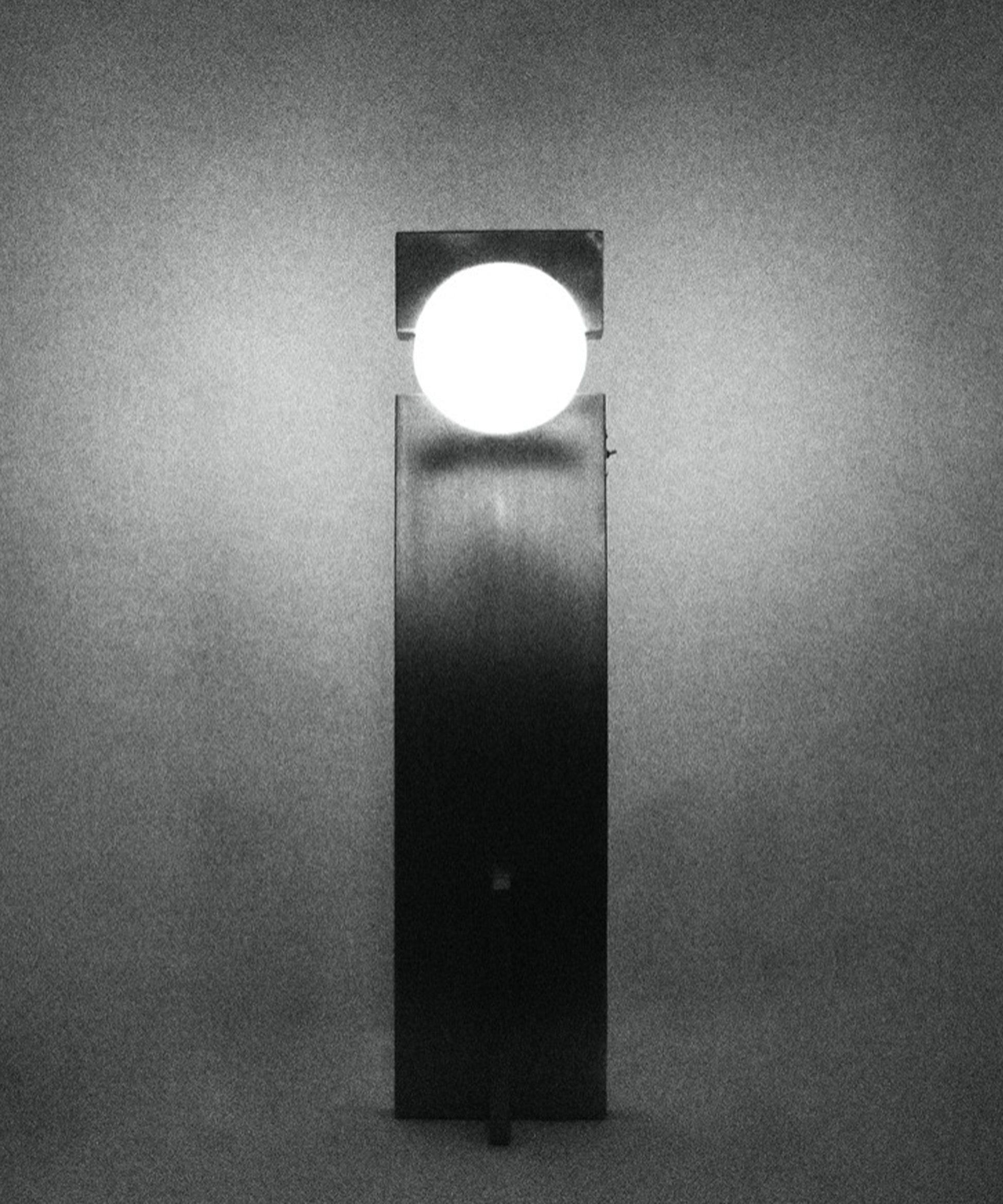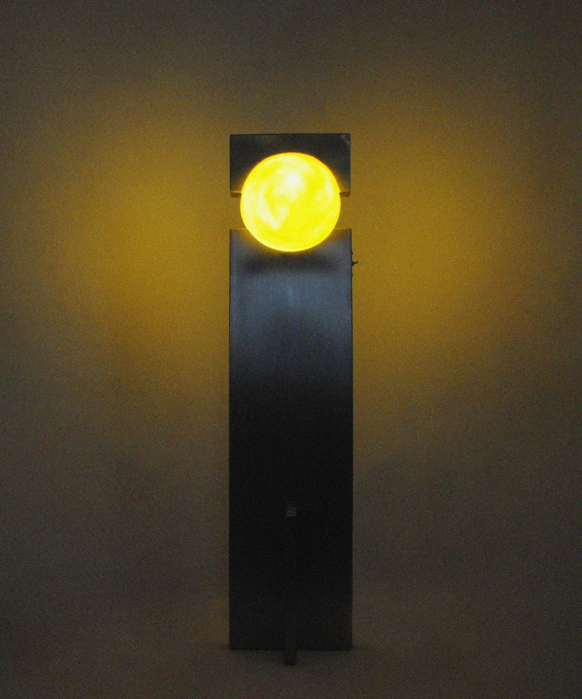 This unique light piece stands freely as a retro-futurist monolith or personal totem of sorts. Hero Lamp takes inspiration from Jean-Pierre Garrault and Henry Delors’ 1971 “Globe Lamp” series to create a unique anachronistic light piece. “Hero Lamp” exhibits traction between past visions of the future and our technological present reminding us of our limited perspective of geological time.