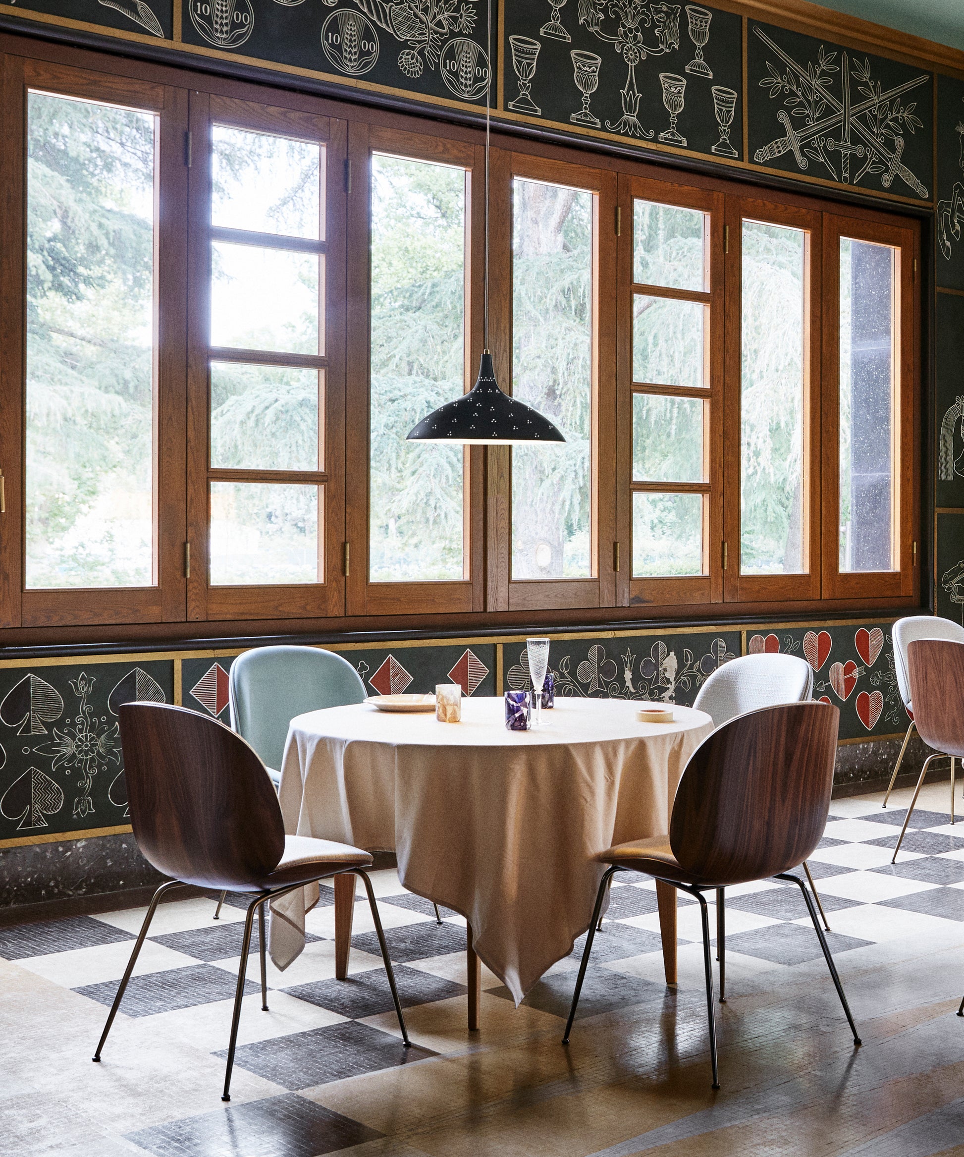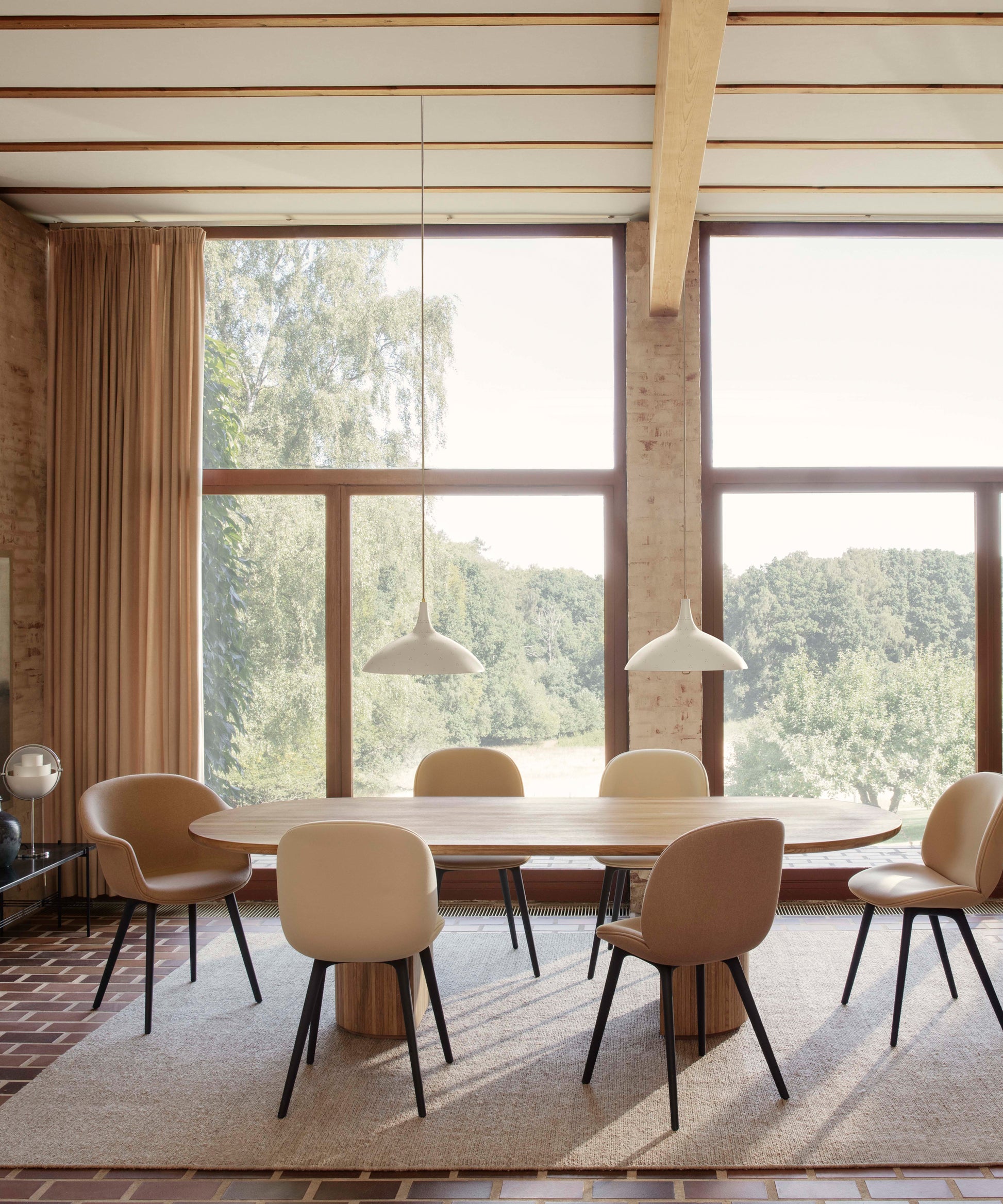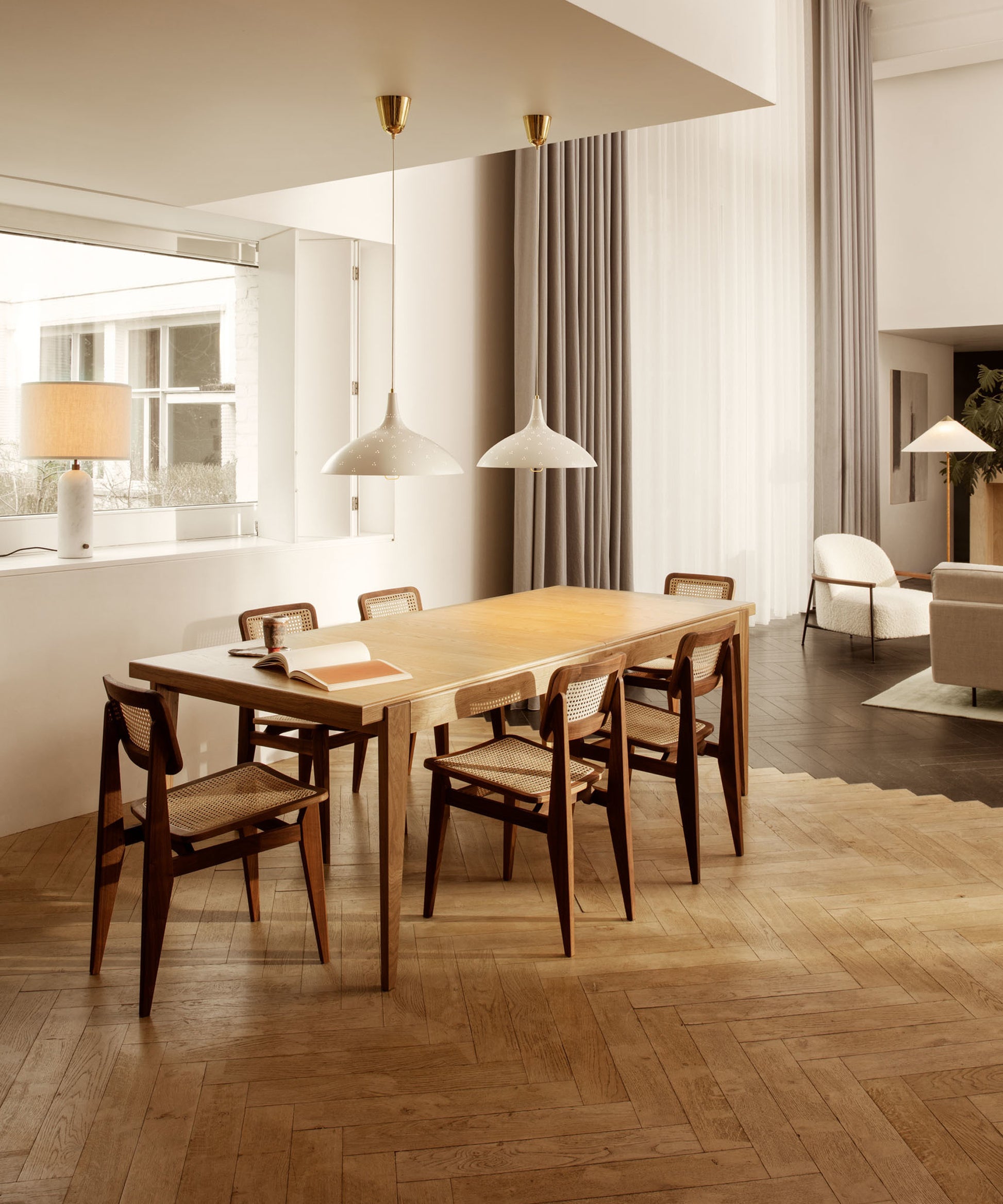 Like many of his best-known designs, the pendant was designed for the Finland House in New York - one of the most ambitious and successful projects of all time to showcase Finnish design. Known for perfecting the techniques of metal finishes, the 1965 Pendant captures Tynell's masterful understanding of brass. Characterized by its triangular perforation pattern - an artistic detail utilized by Tynell in several of his lighting objects - the pendant includes a frosted glass diffuser that softens the light.