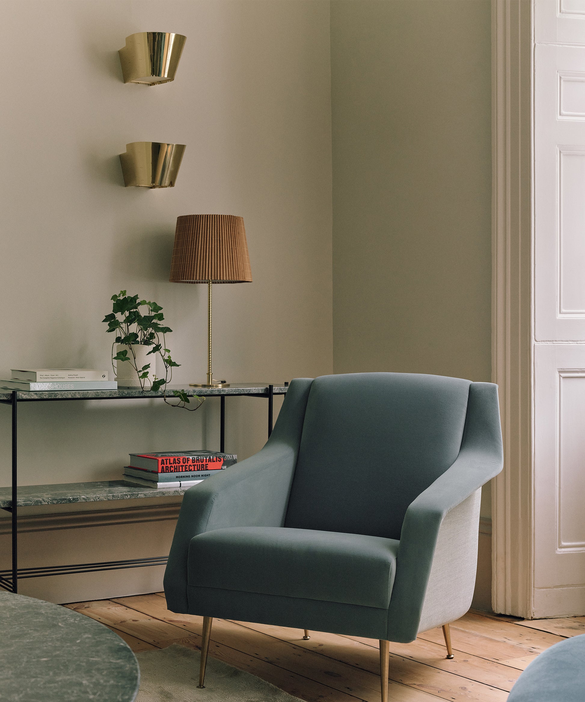 The clean, sculptured brass shade lends an air of elegance with Tynell’s distinctive traits of twin dot perforation pattern combined with notched edges, making the wall lamp appealing in its simplicity. Equally relevant today as when first introduced, the 9464 Wall Lamp fits perfectly into contemporary interiors, adding a sculptural effect to the wall whilst simultaneously creating a relaxed yet very refined indirect lighting.