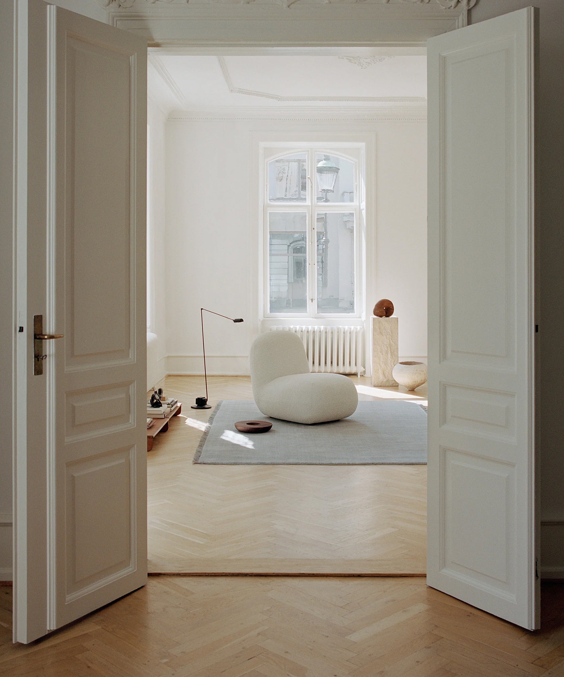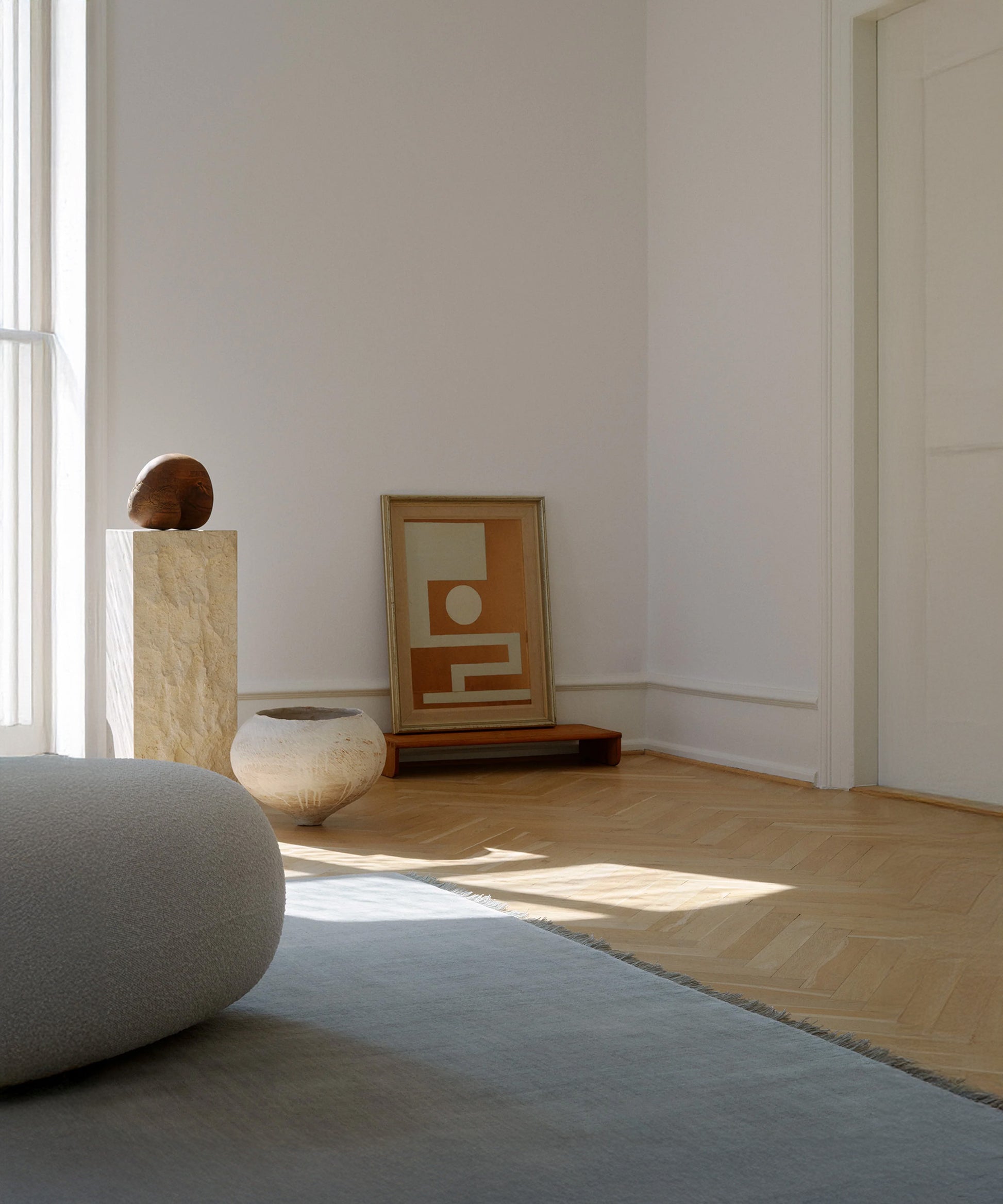 Soft Argentine wool with a subtle melange quality is juxtaposed with rustic linen fringing, the natural contrasts adding understated sophistication to the rug's expression. Hand-crafted by Linie Design's artisan weavers.