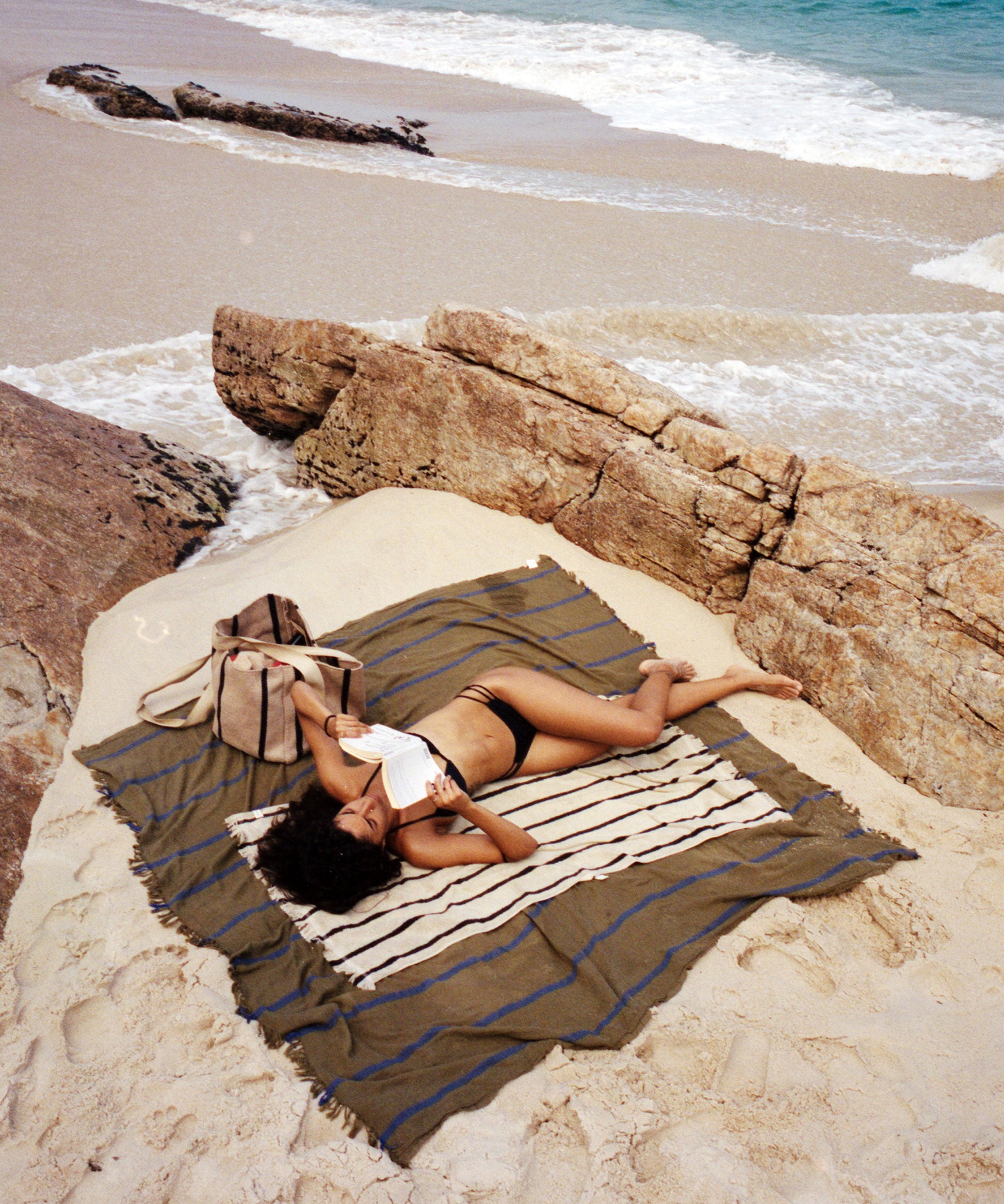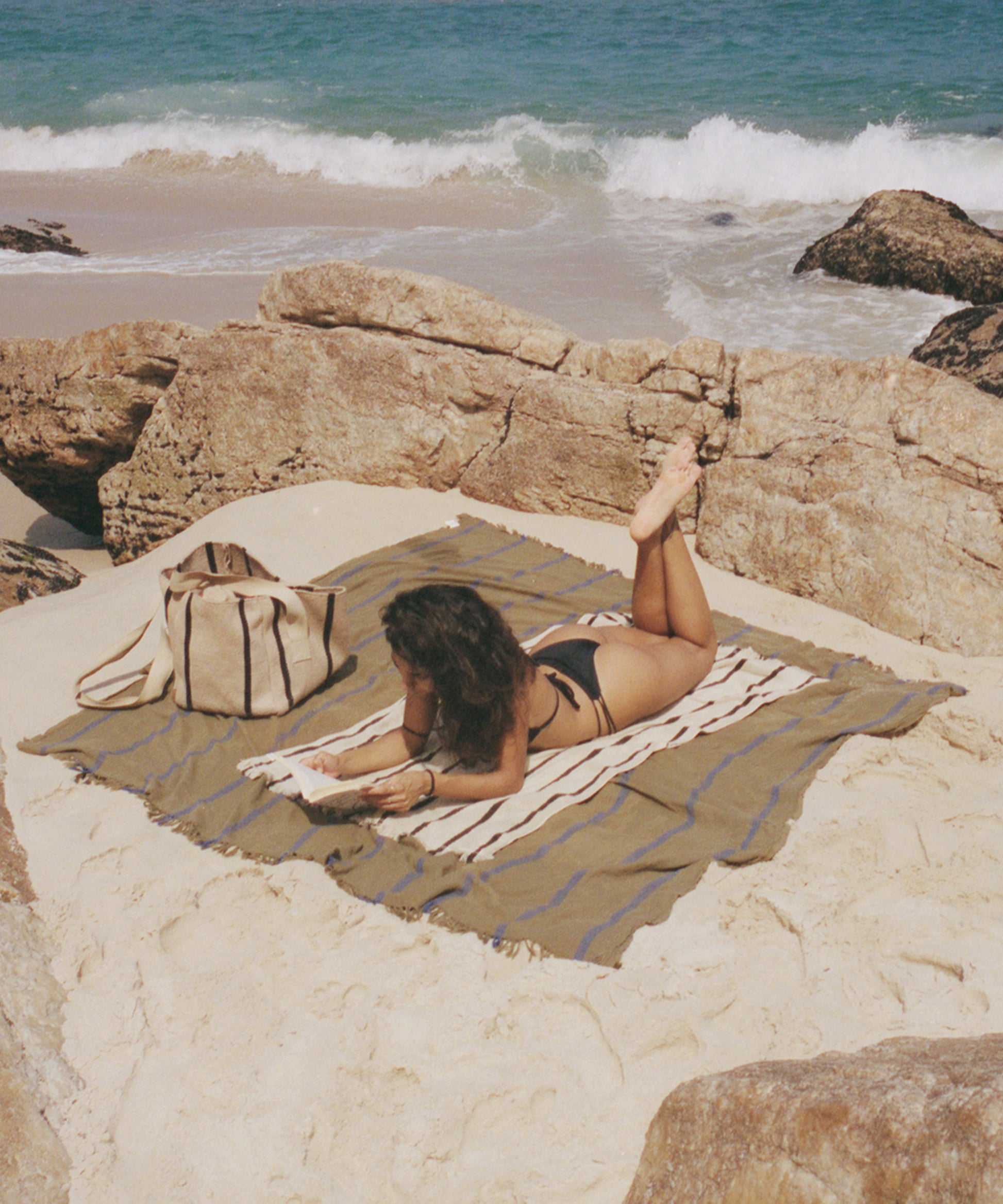 The Alee Beach Towel is made from a rich, GOTS-certified, organic cotton terry, which is highly absorbent and made to last. The towel collection comes with decorative fringes at each end, emphasizing its relaxed feel and expression.