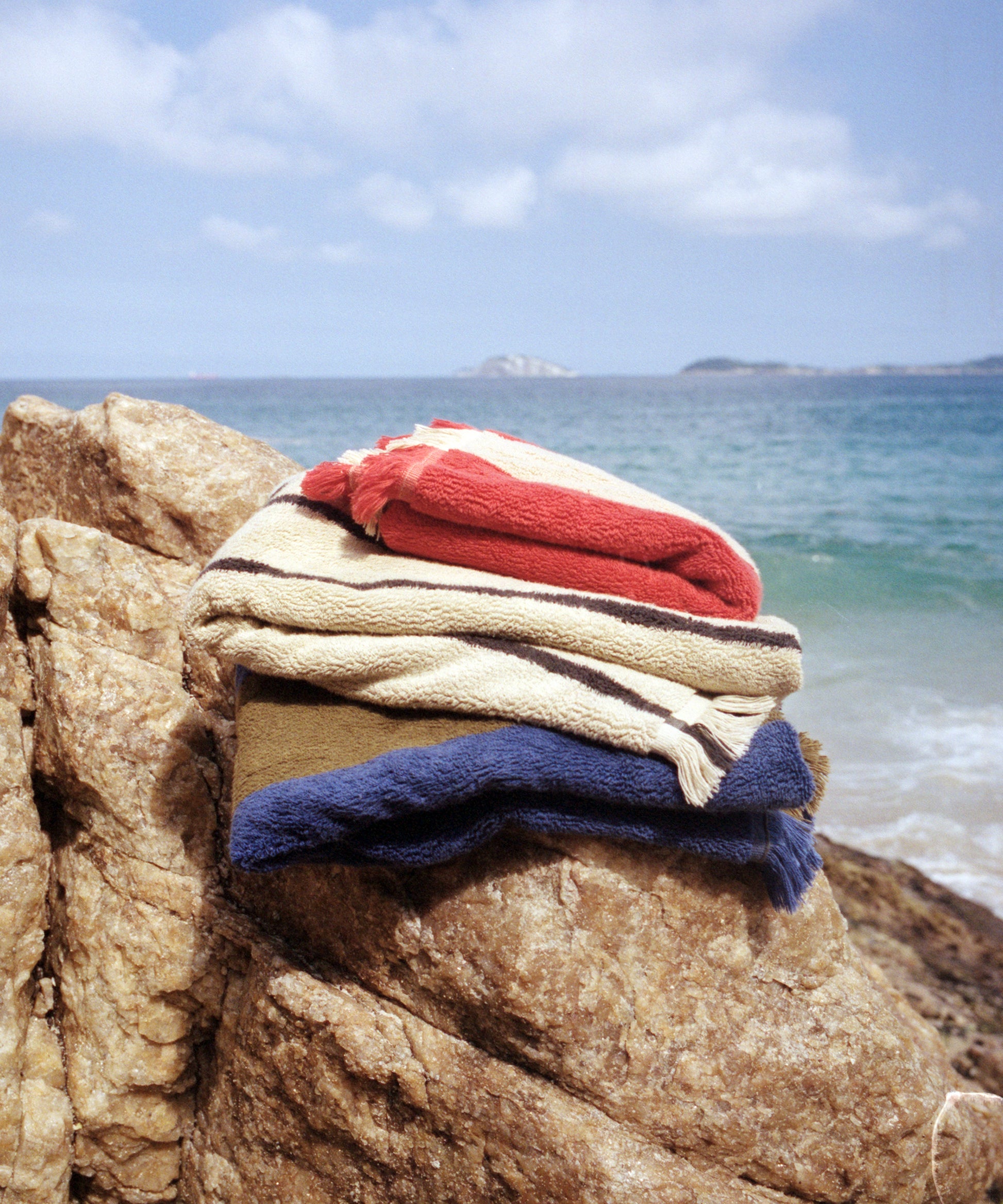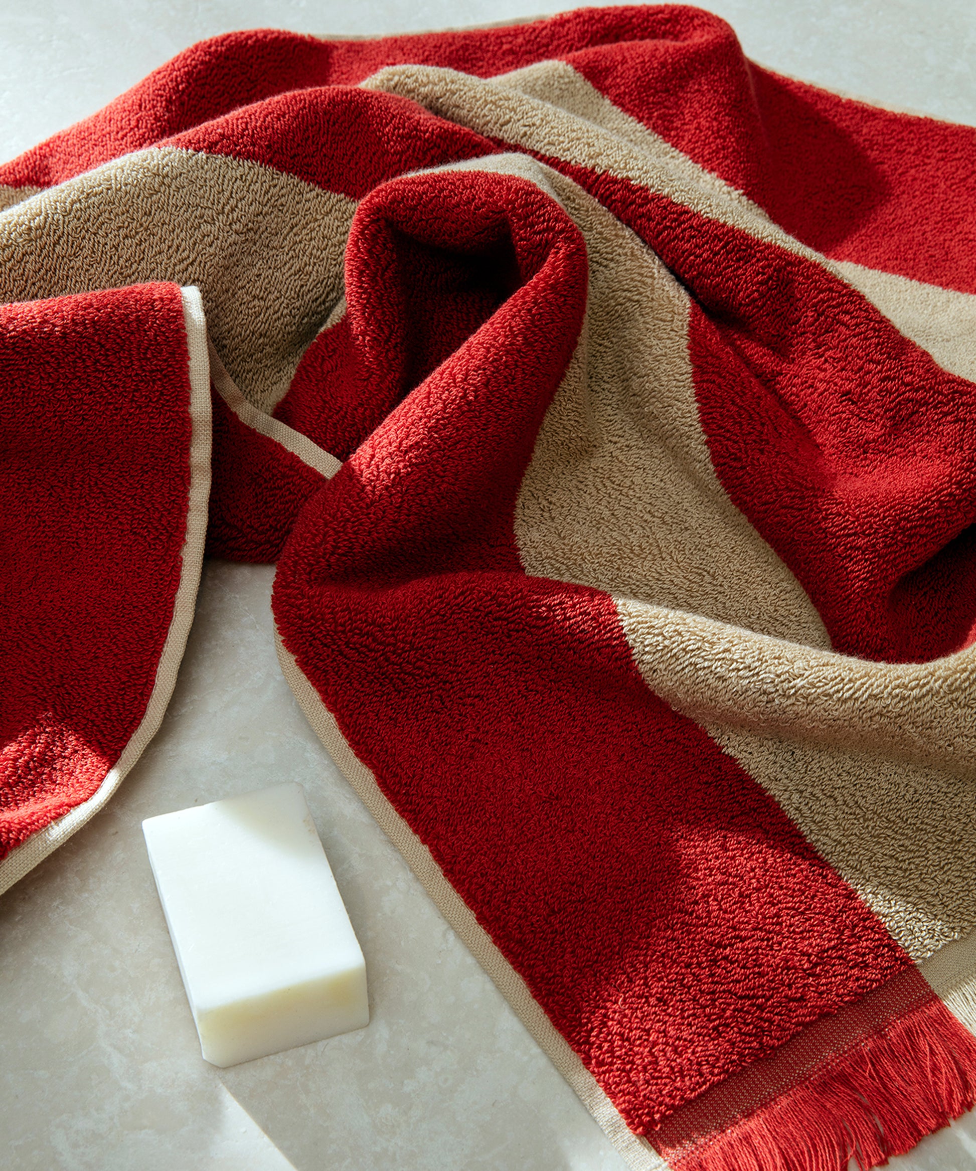 The towel collection comes with decorative fringes at each end, emphasizing its relaxed feel and expression.