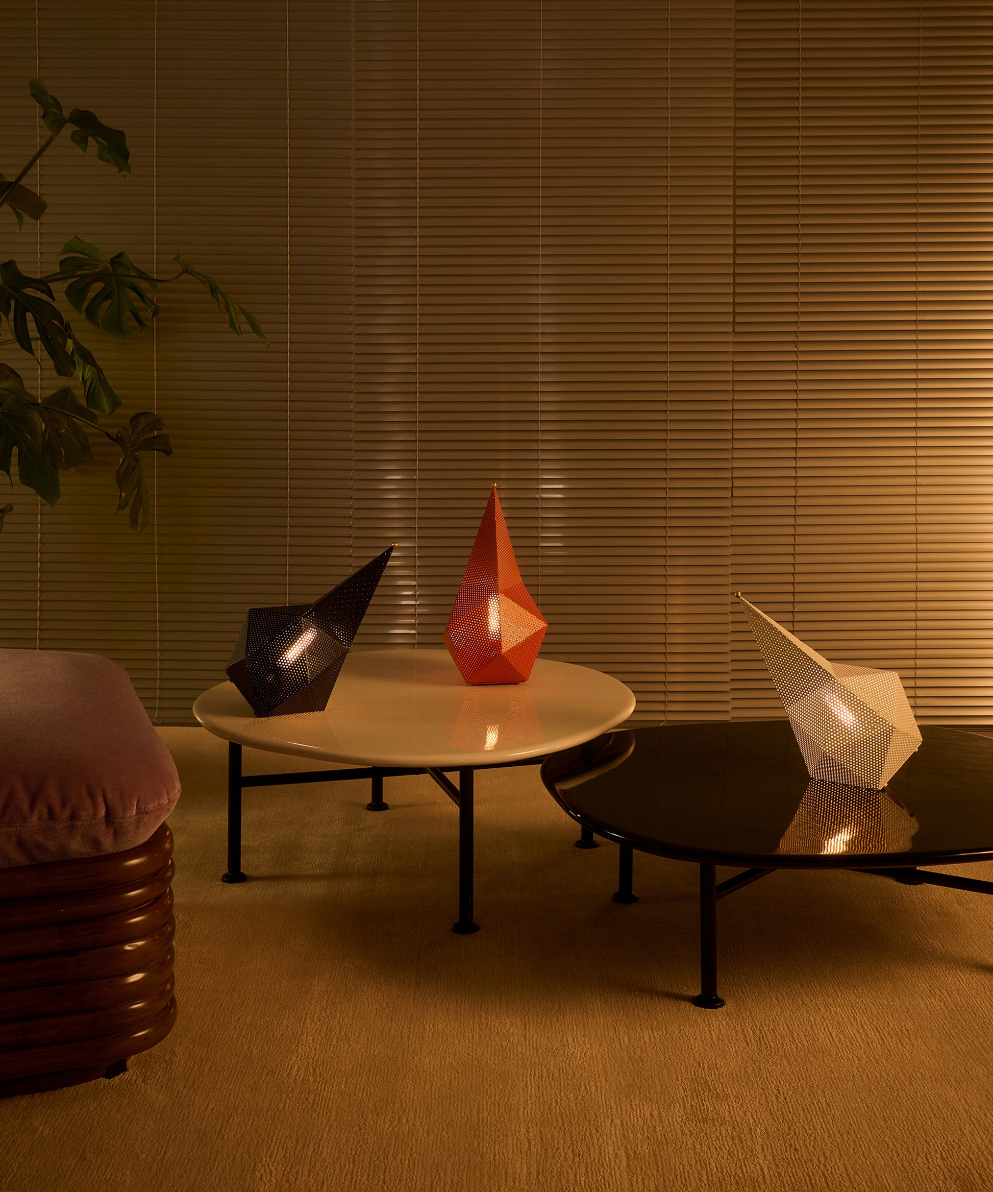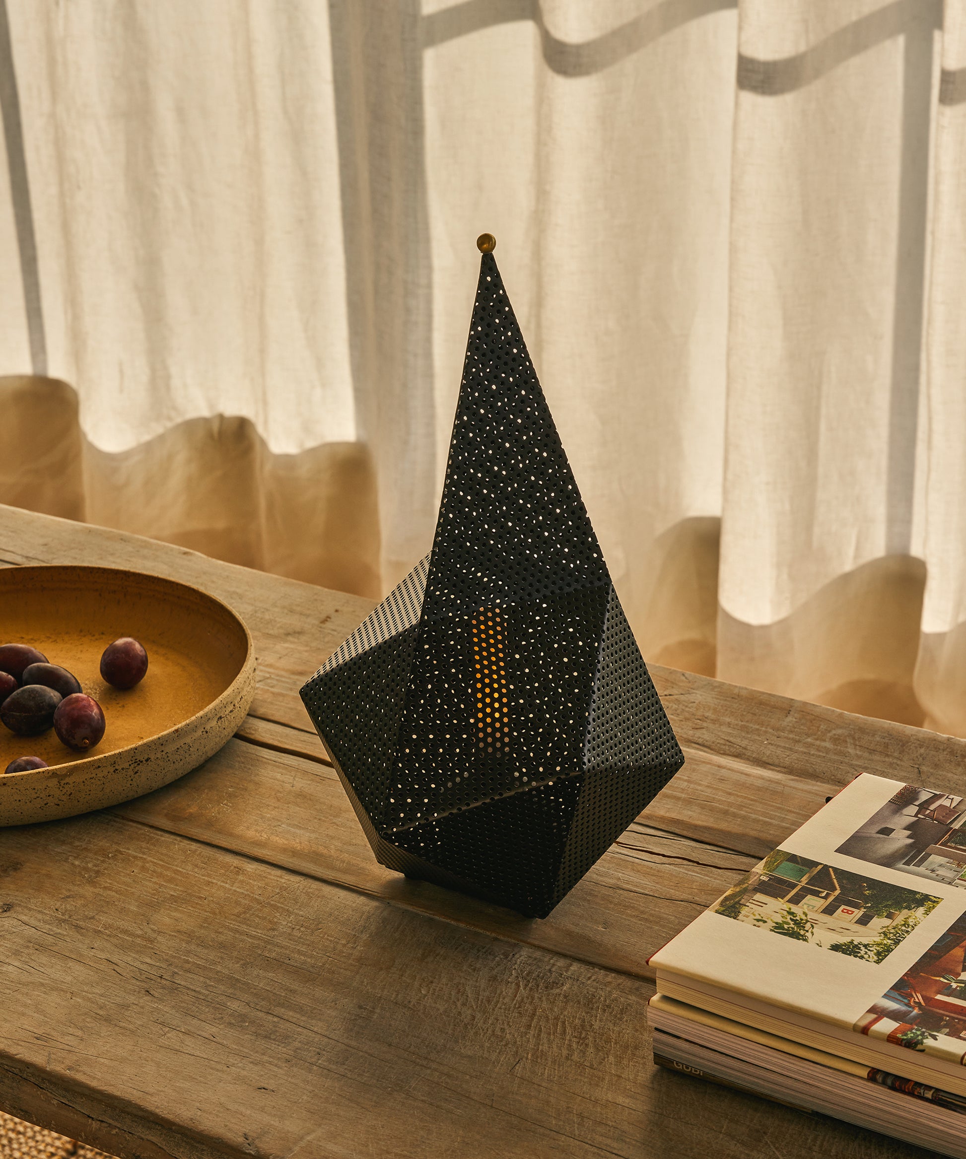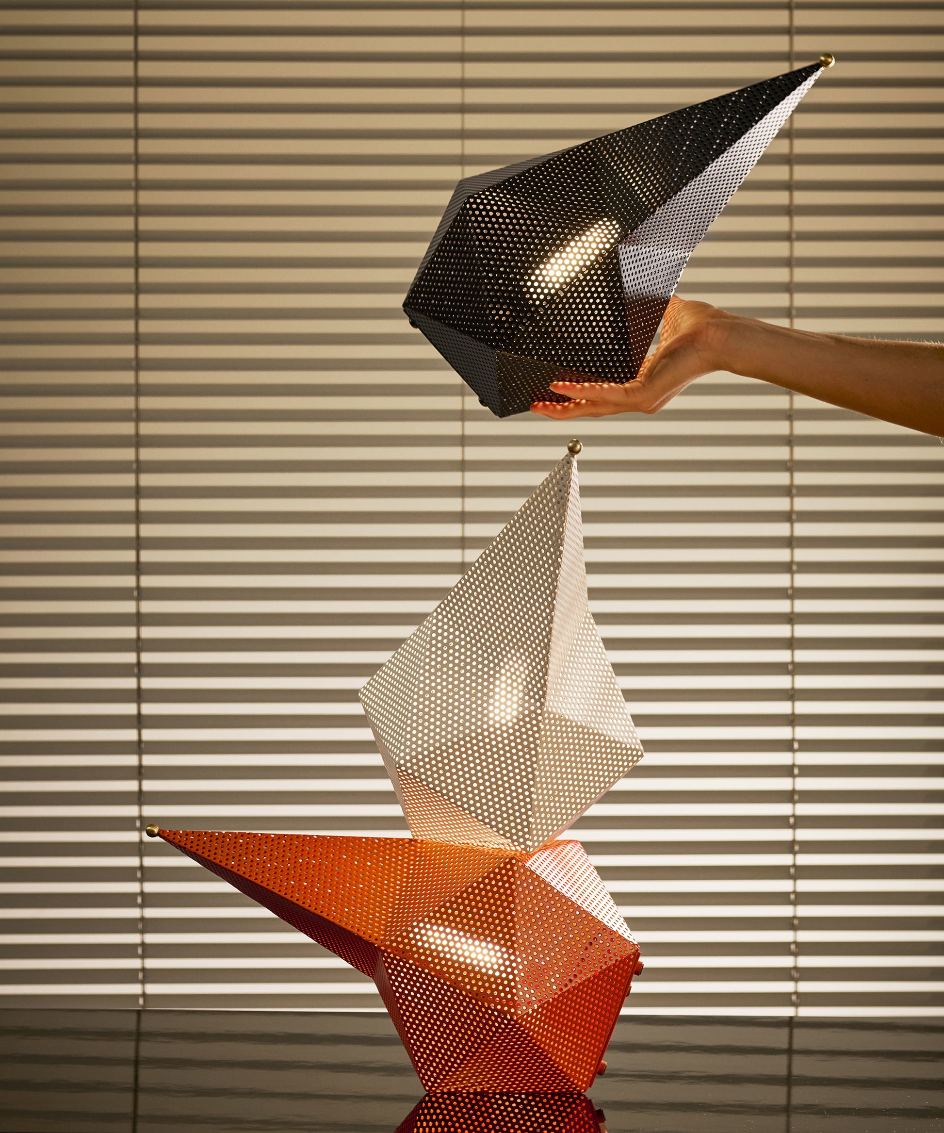 A multifaceted, cubist construction with a comet-like tail, the Bagdad’s sculptural design has proven timeless in its playful uniqueness. The new edition scales down the size by half and adds a further element of versatility by making it portable. Fitted with a touch-activated dimmer with three levels of brightness, and available in three colors – Black, White, and International Orange – the Bagdad represents a unique addition to GUBI’s Matégot portfolio, and the ever-growing collection of rechargeable lamps without limits.