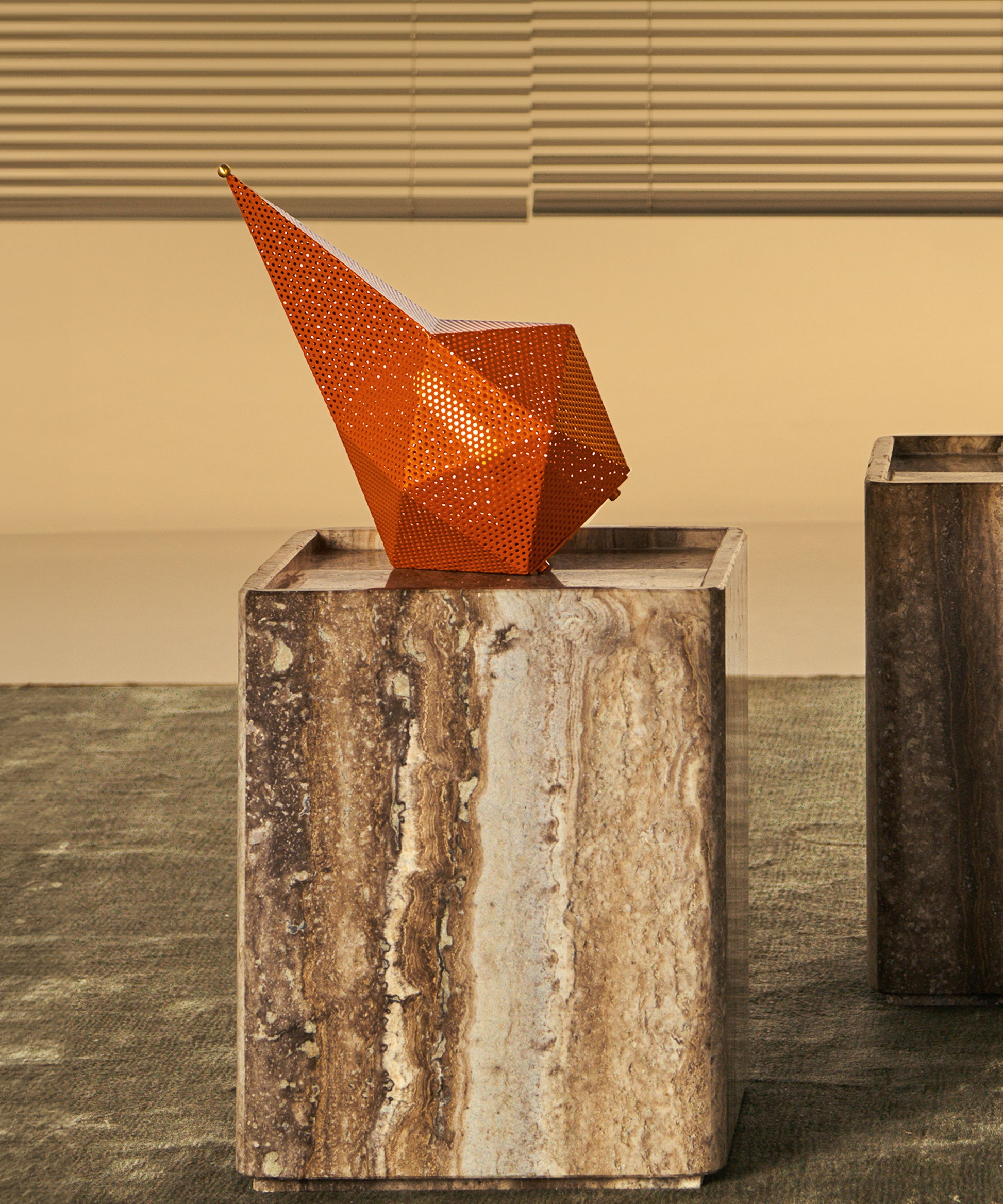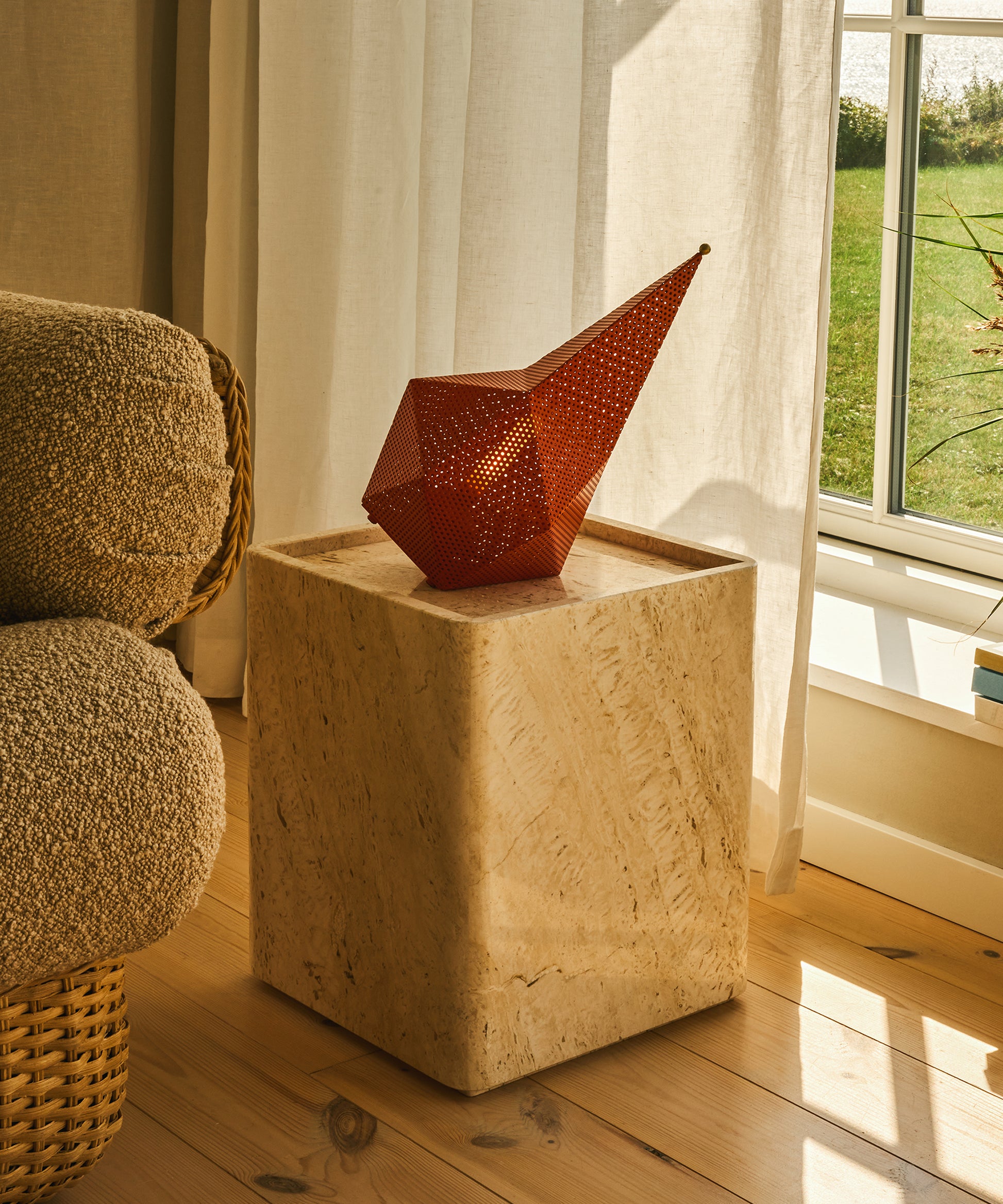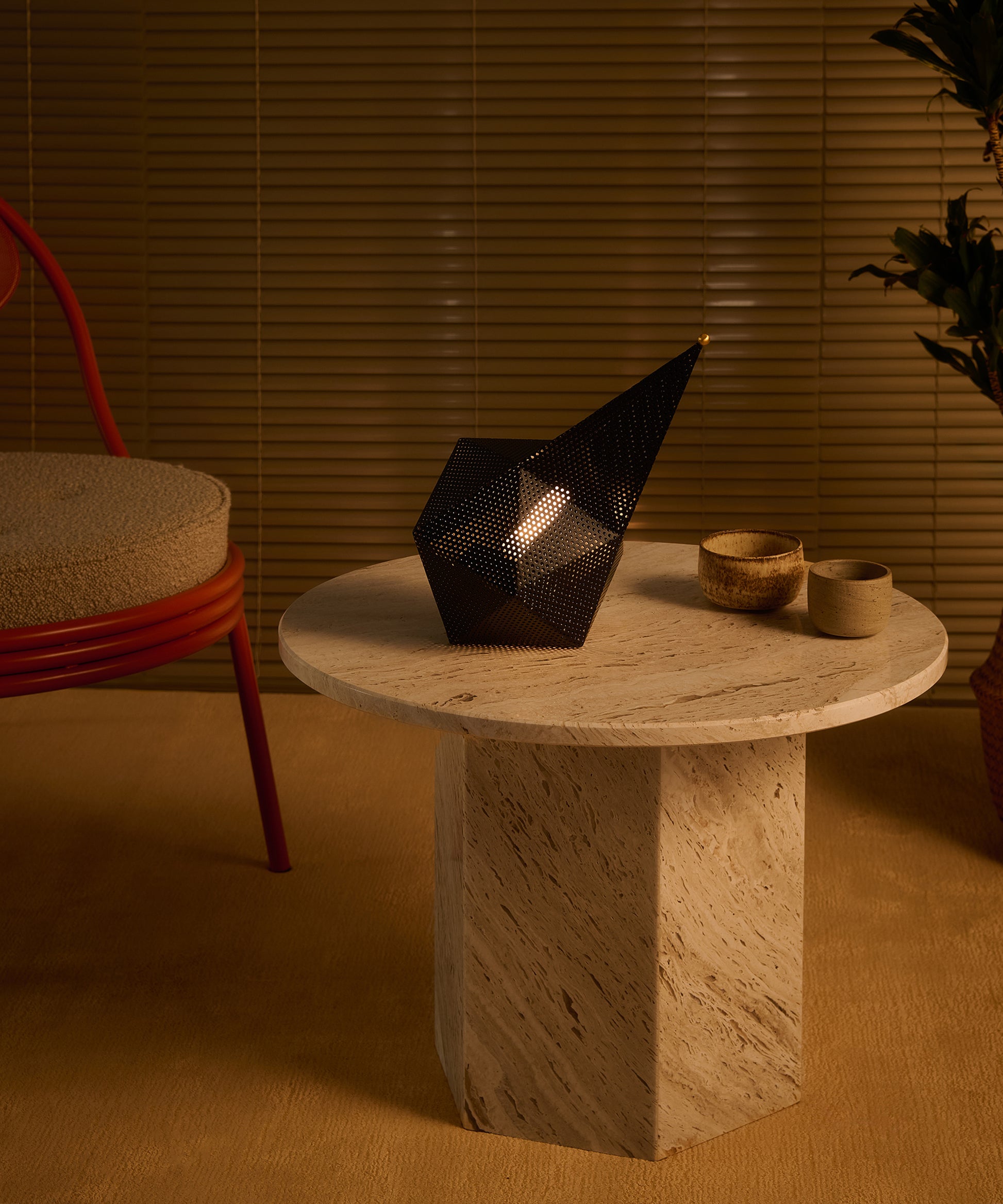 A multifaceted, cubist construction with a comet-like tail, the Bagdad’s sculptural design has proven timeless in its playful uniqueness. The new edition scales down the size by half and adds a further element of versatility by making it portable. Fitted with a touch-activated dimmer with three levels of brightness, and available in three colors – Black, White, and International Orange – the Bagdad represents a unique addition to GUBI’s Matégot portfolio, and the ever-growing collection of rechargeable lamps without limits.