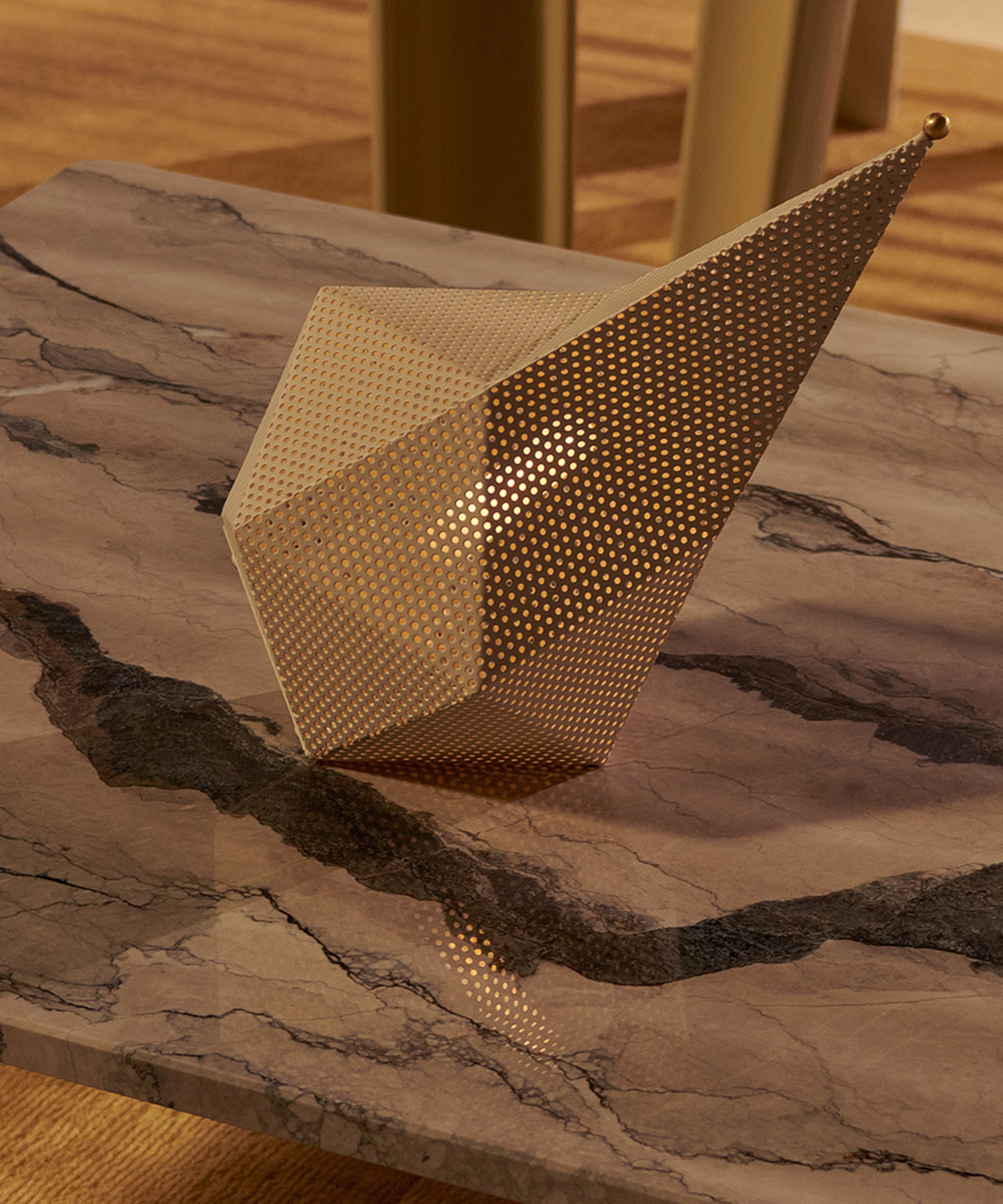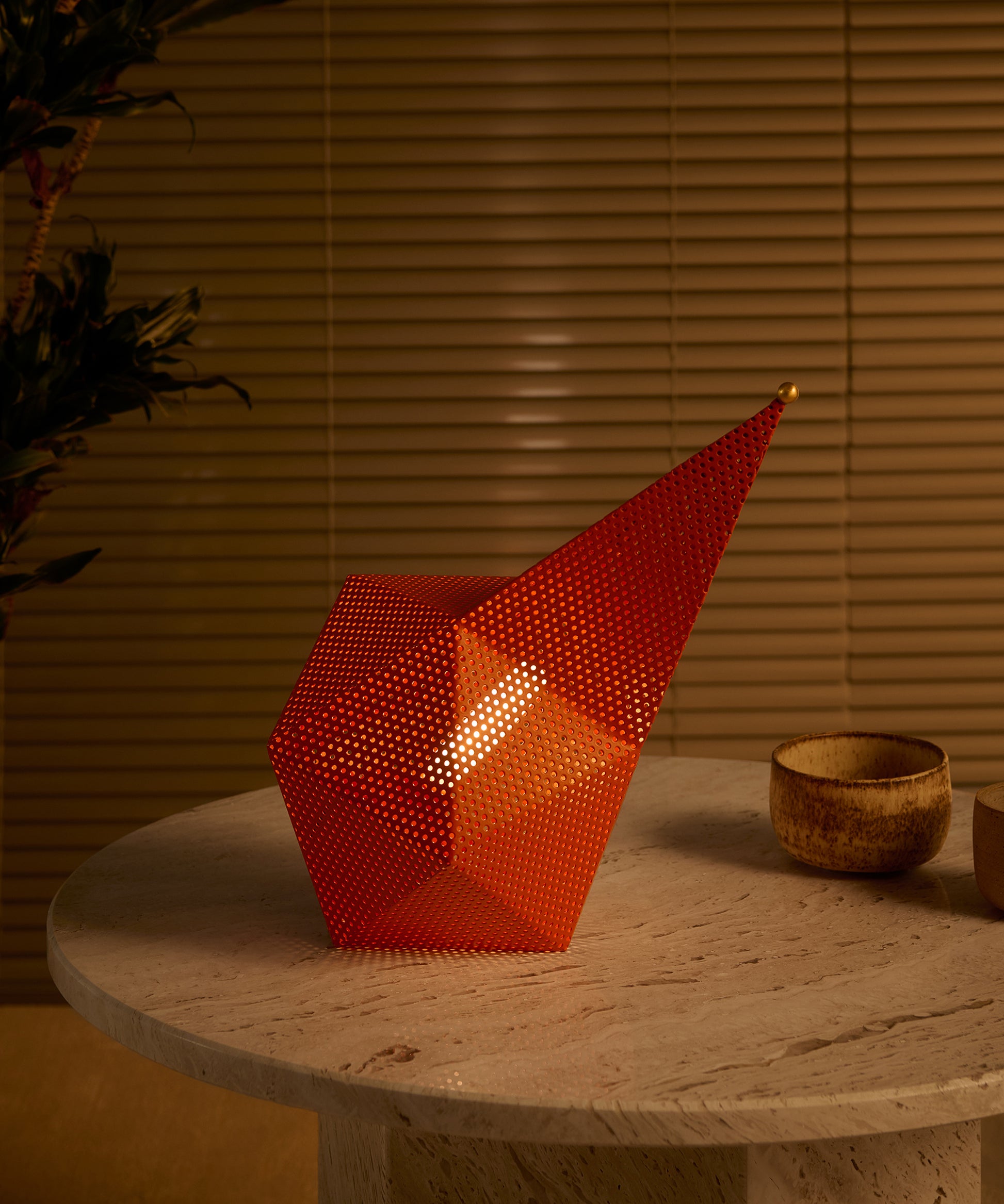 Originally designed in 1954, the Bagdad Lamp is a brilliantly offbeat showcase of Mathieu Matégot’s material affinity with perforated metal.