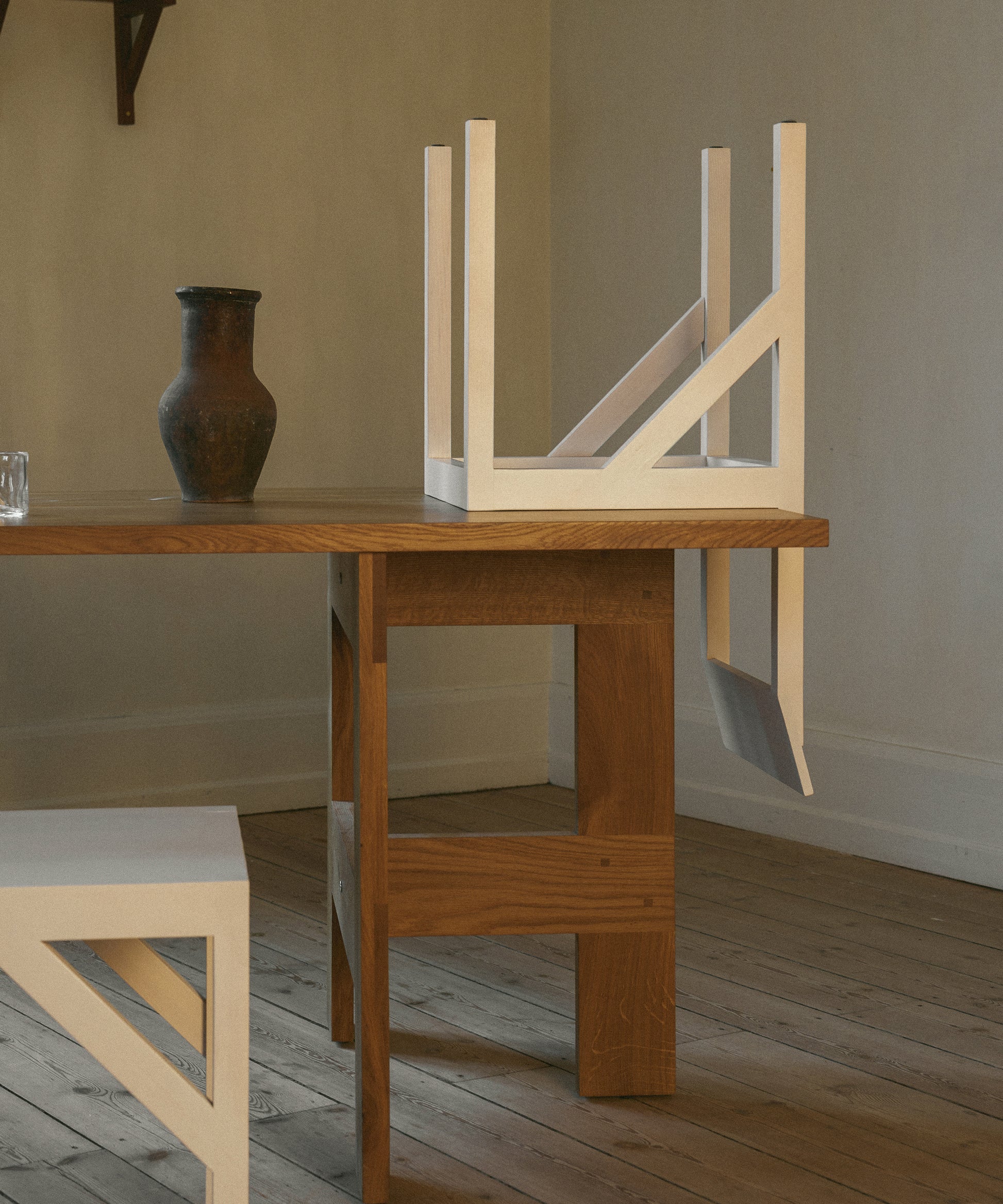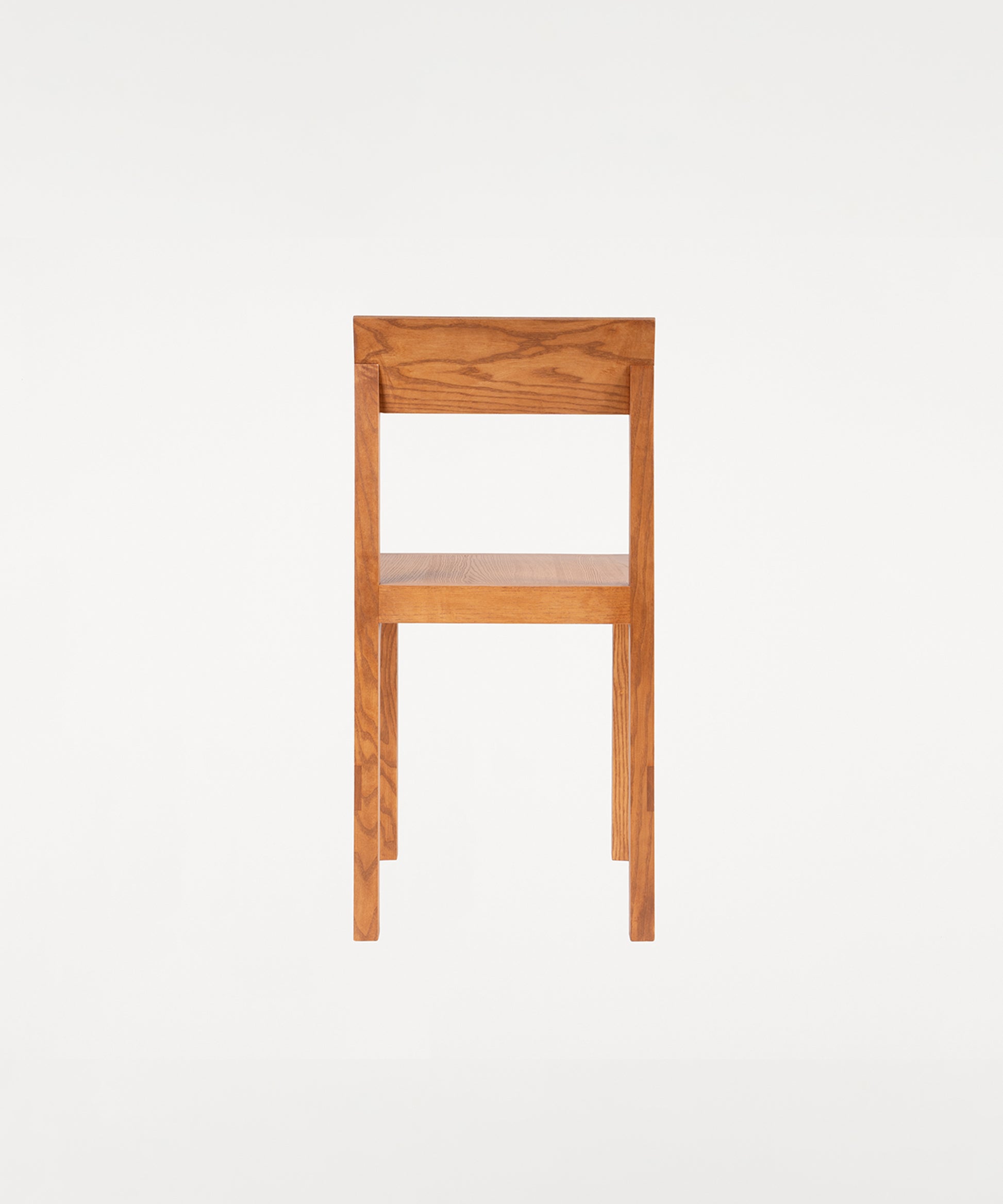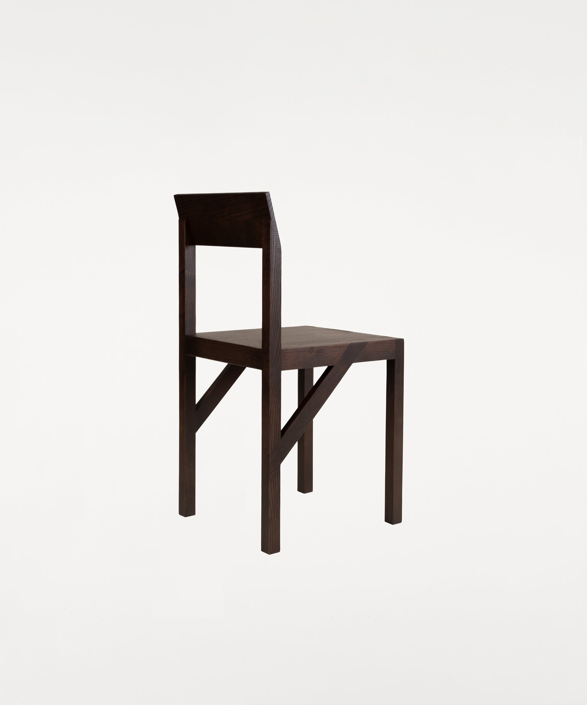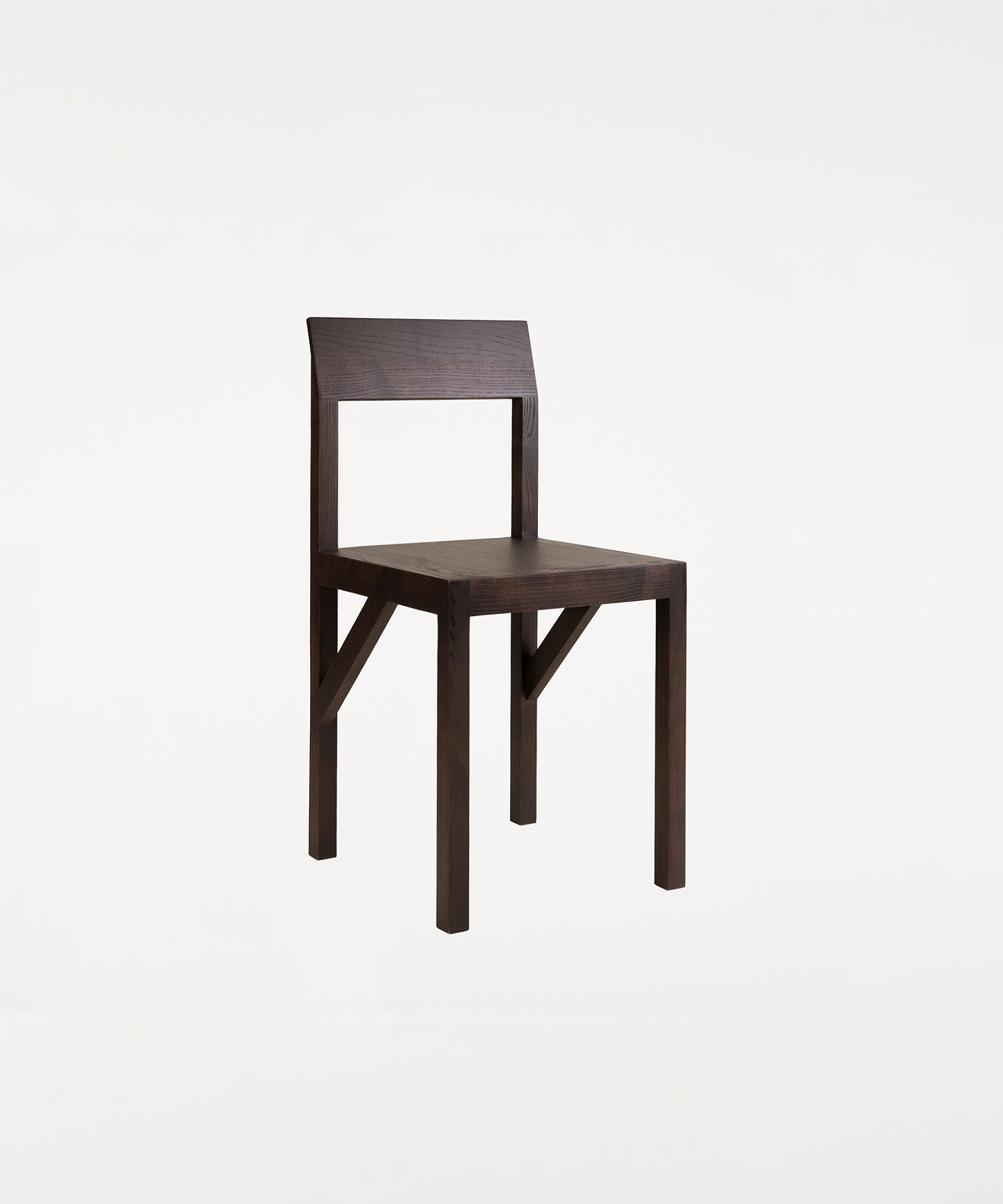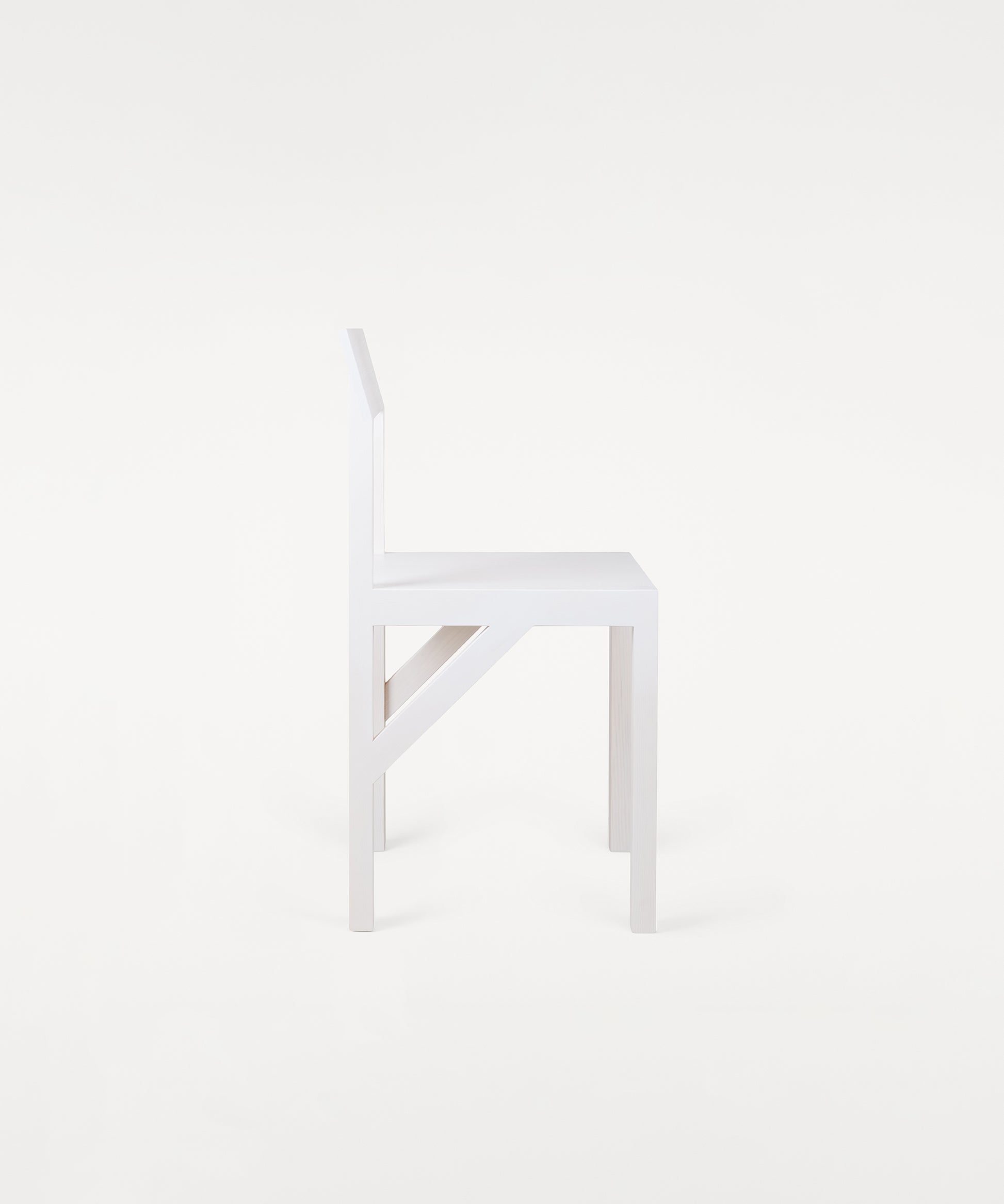 The Bracket Chair, designed in collaboration with Copenhagen-based design studio Frederik Gustav, is a four-legged piece fabricated in solid oiled pine with a flat seat and a slightly angled backrest highlighted by a structural component, the bracket.