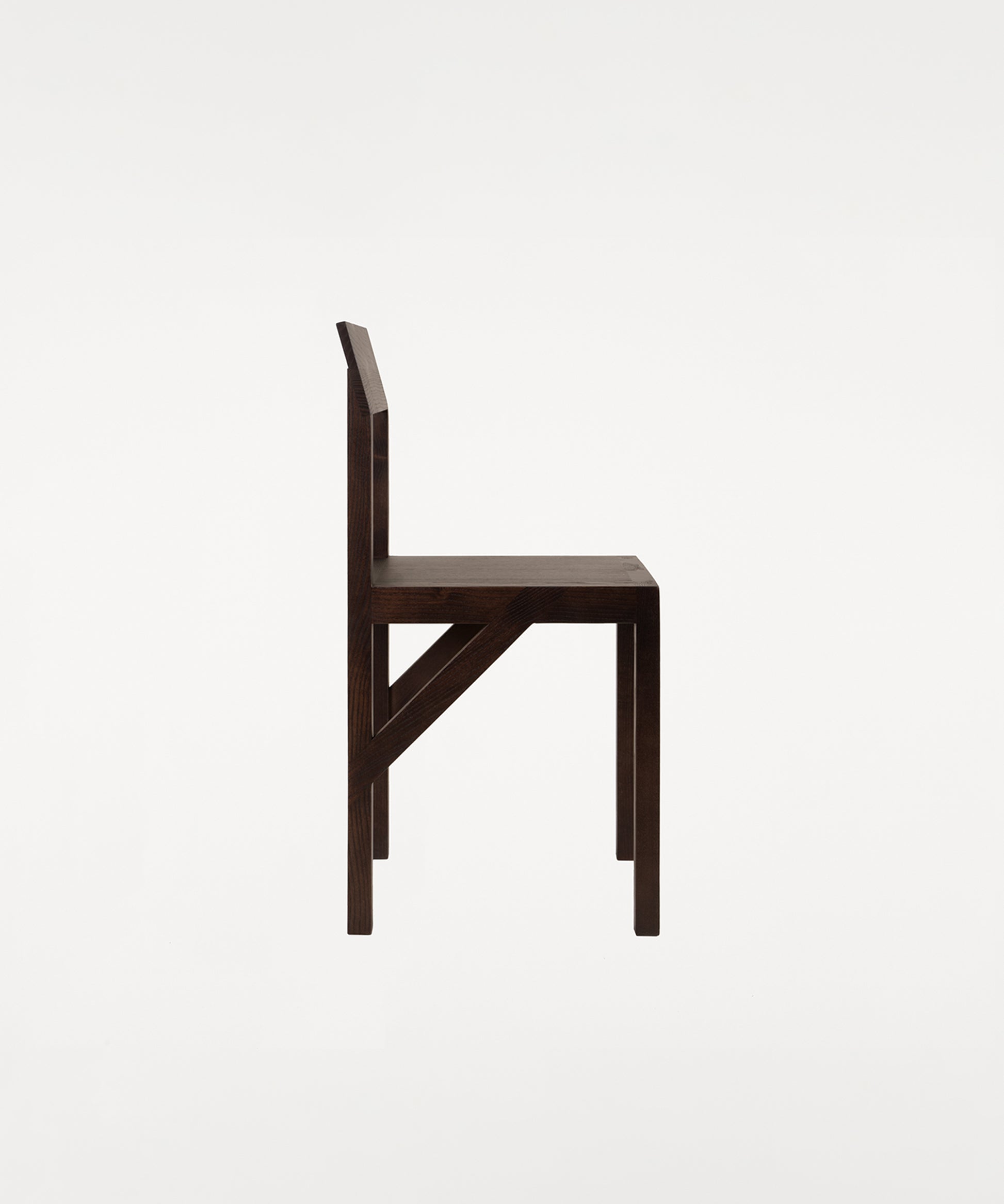 This purely functional element turned into an aesthetic feature ties the chair’s vertical elements to the horizontal ones providing stability—an architectural influence, a nod to timeless construction.