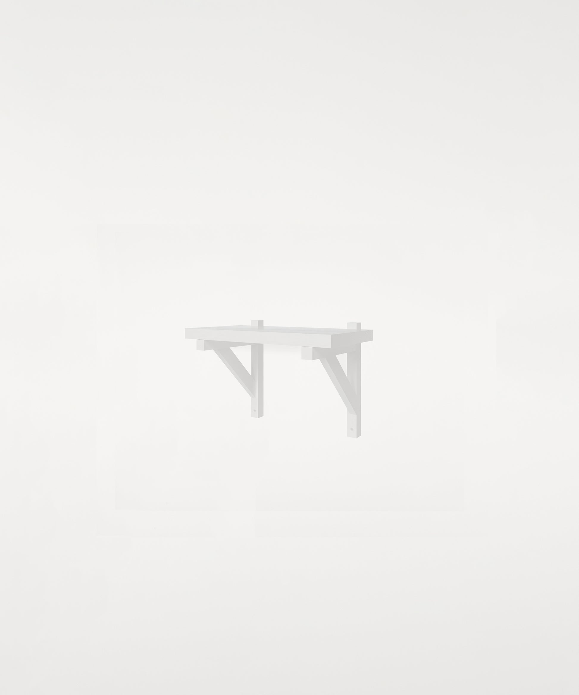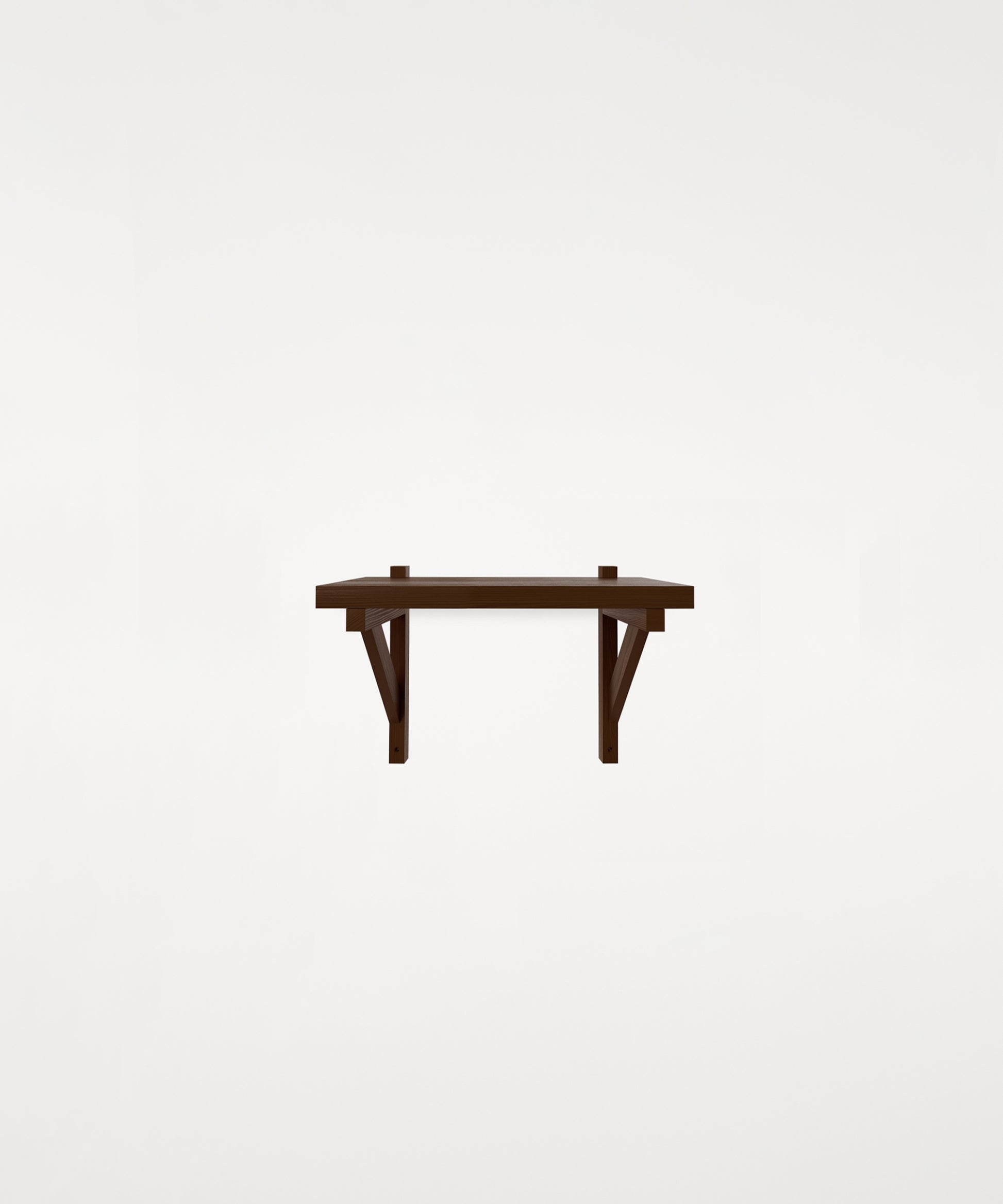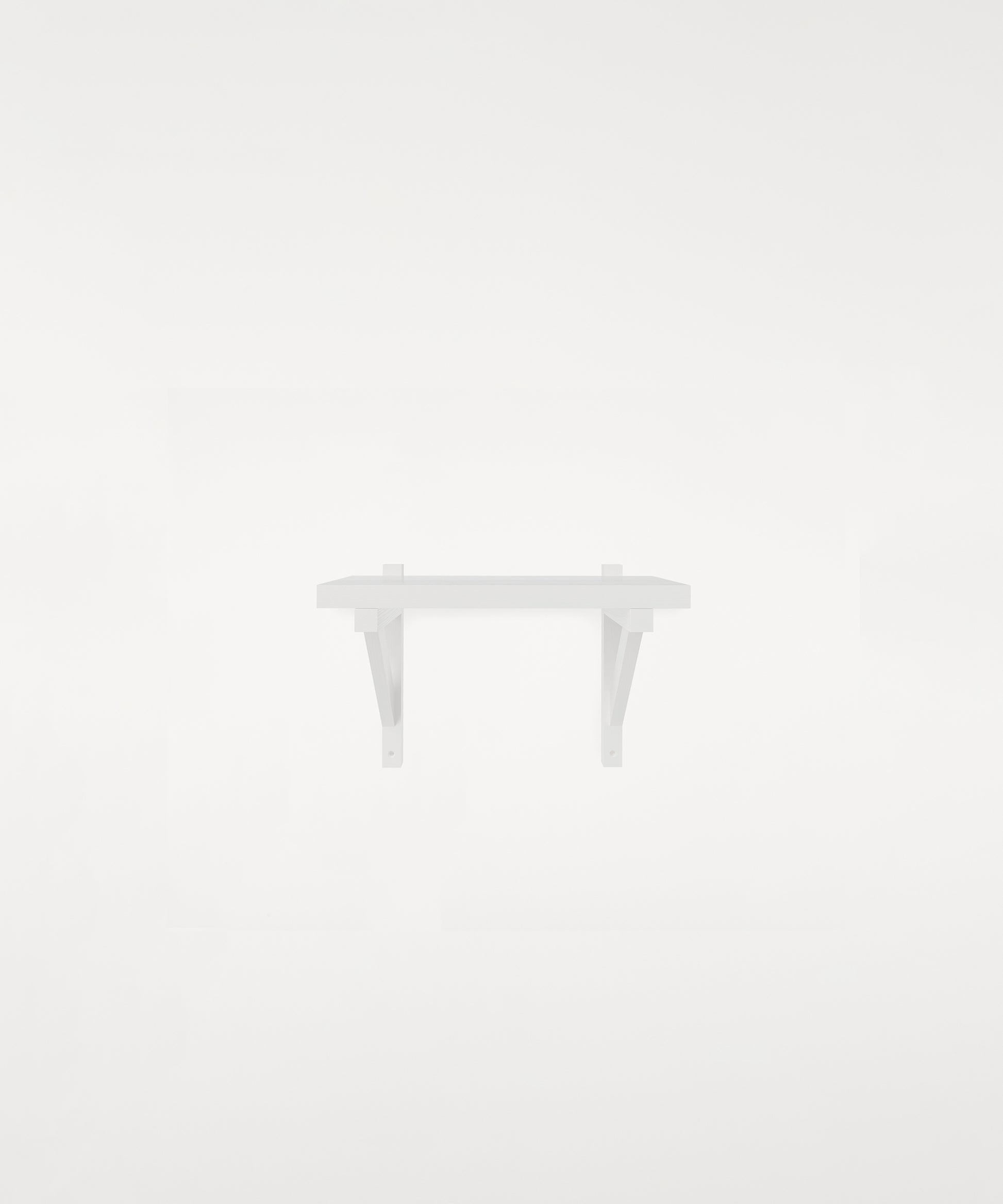This purely functional element turned into an aesthetic feature is mounted to the wall and supports the shelf providing stability—an architectural influence, a nod to timeless construction.