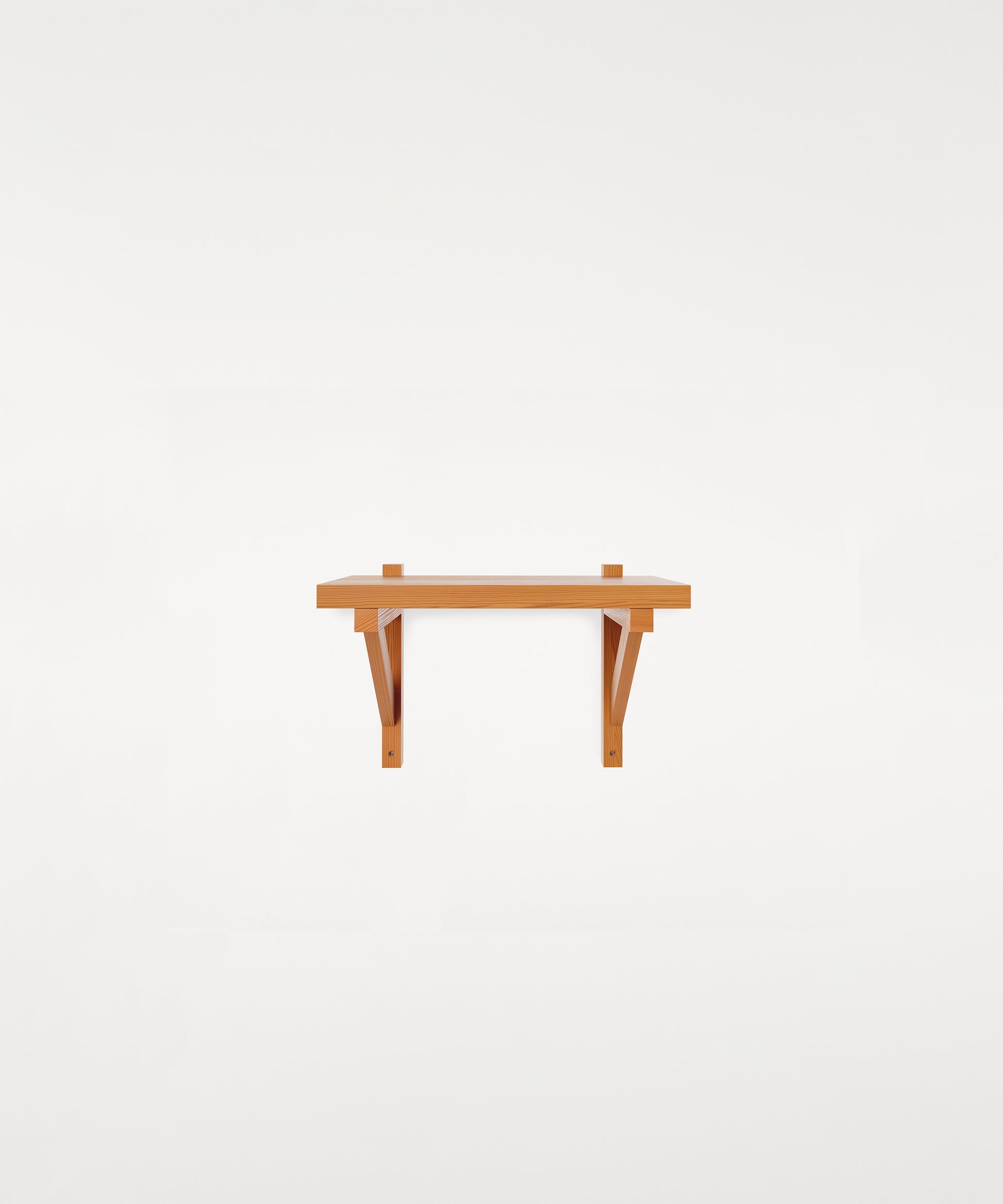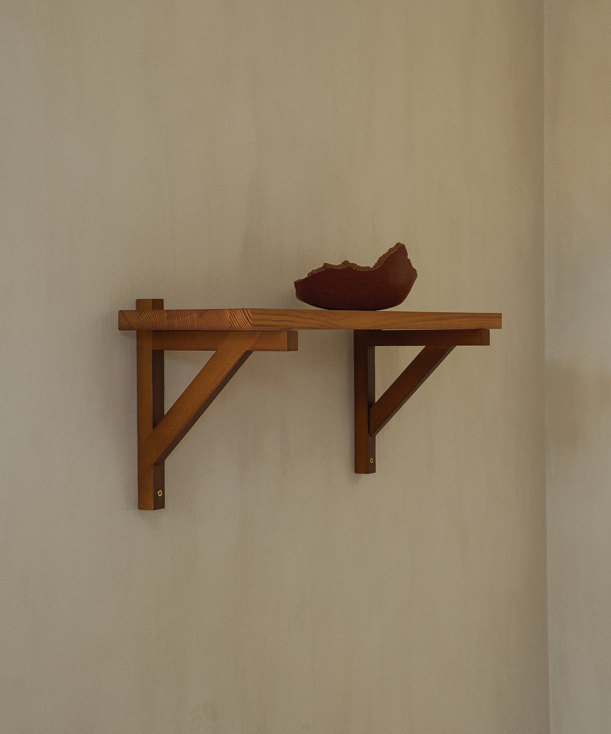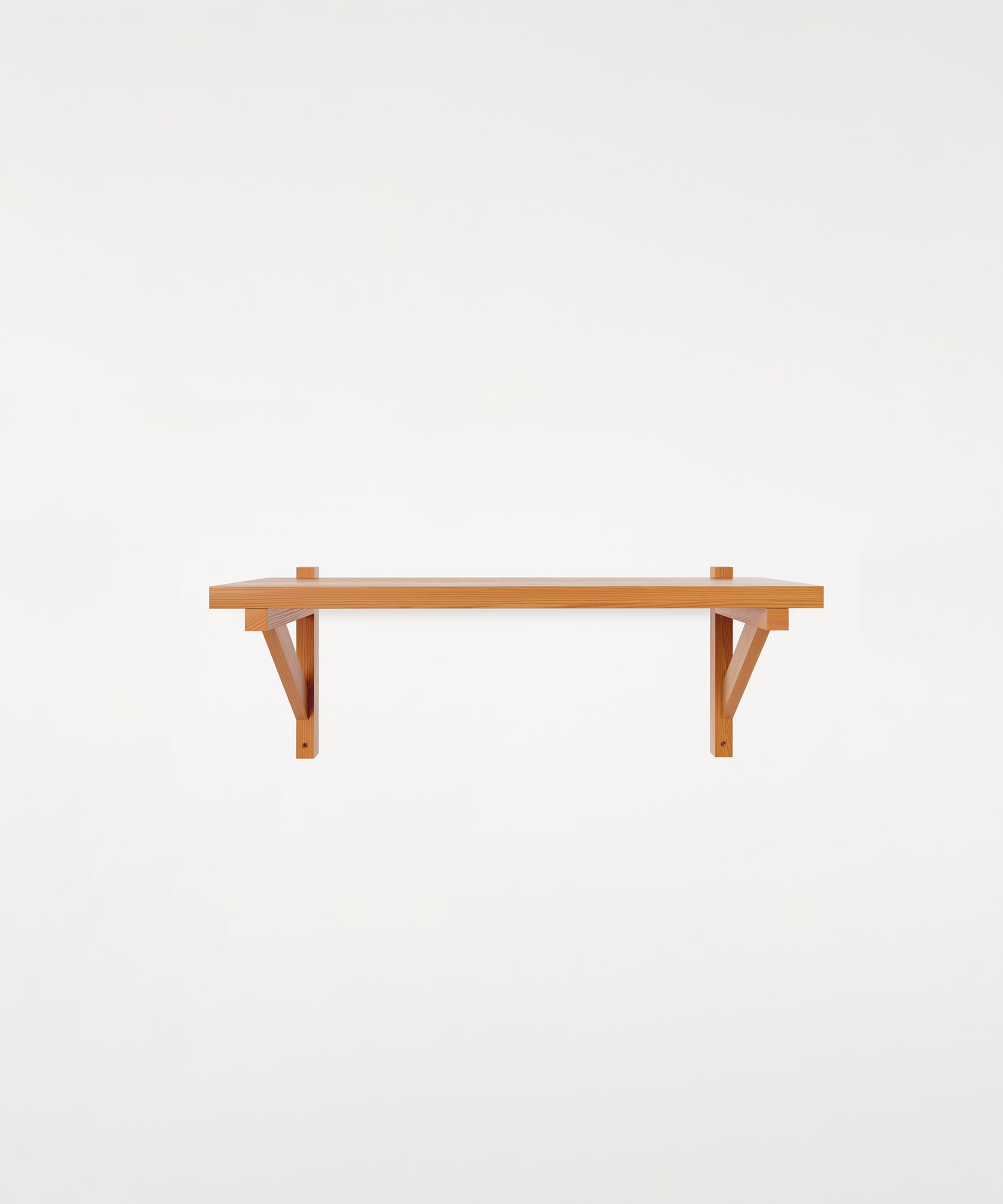 The Bracket Shelf, designed in collaboration with Copenhagen-based design studio Frederik Gustav, is a floating piece for the storage or display of objects fabricated in solid oiled pine highlighted by a structural component, the bracket.