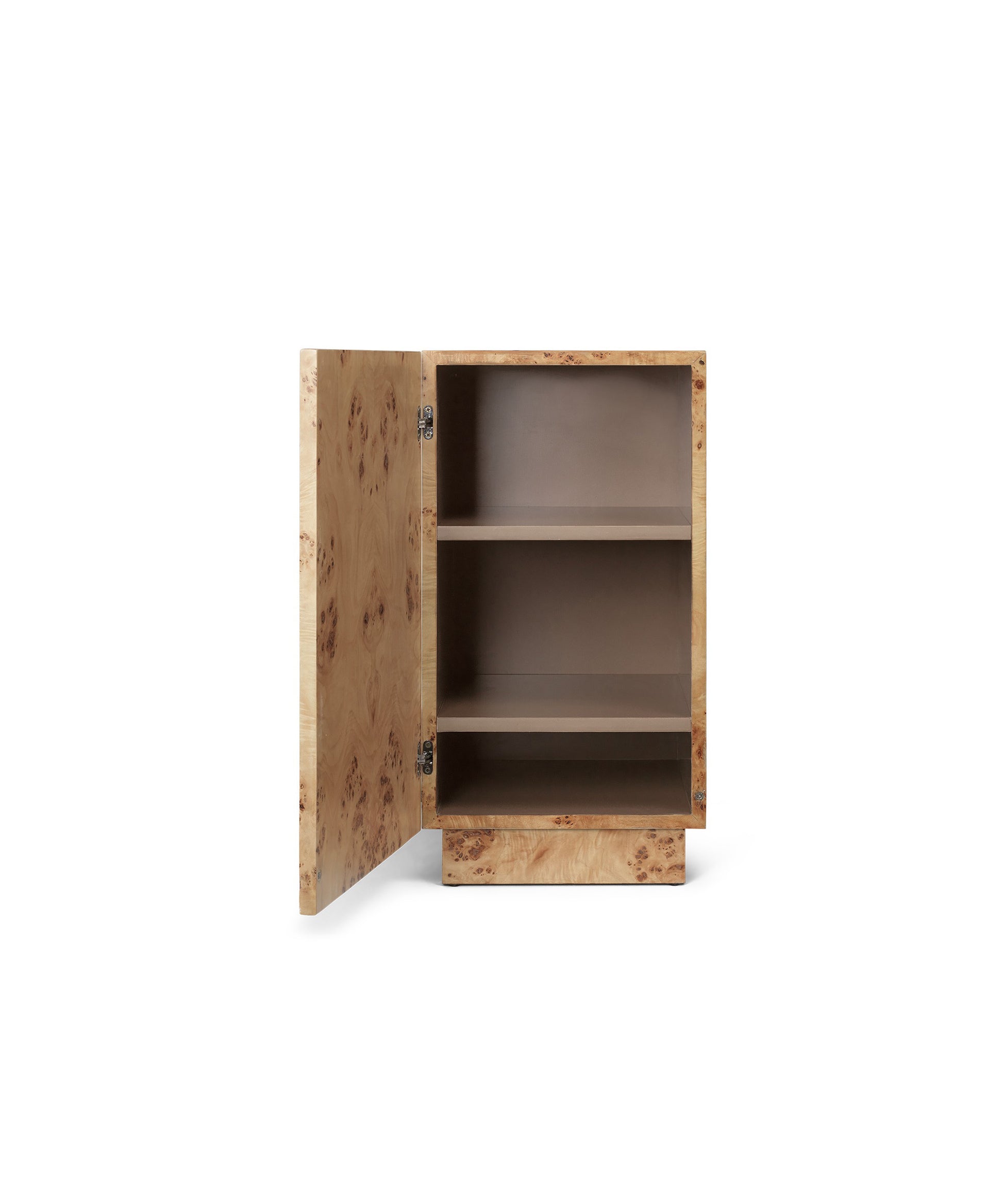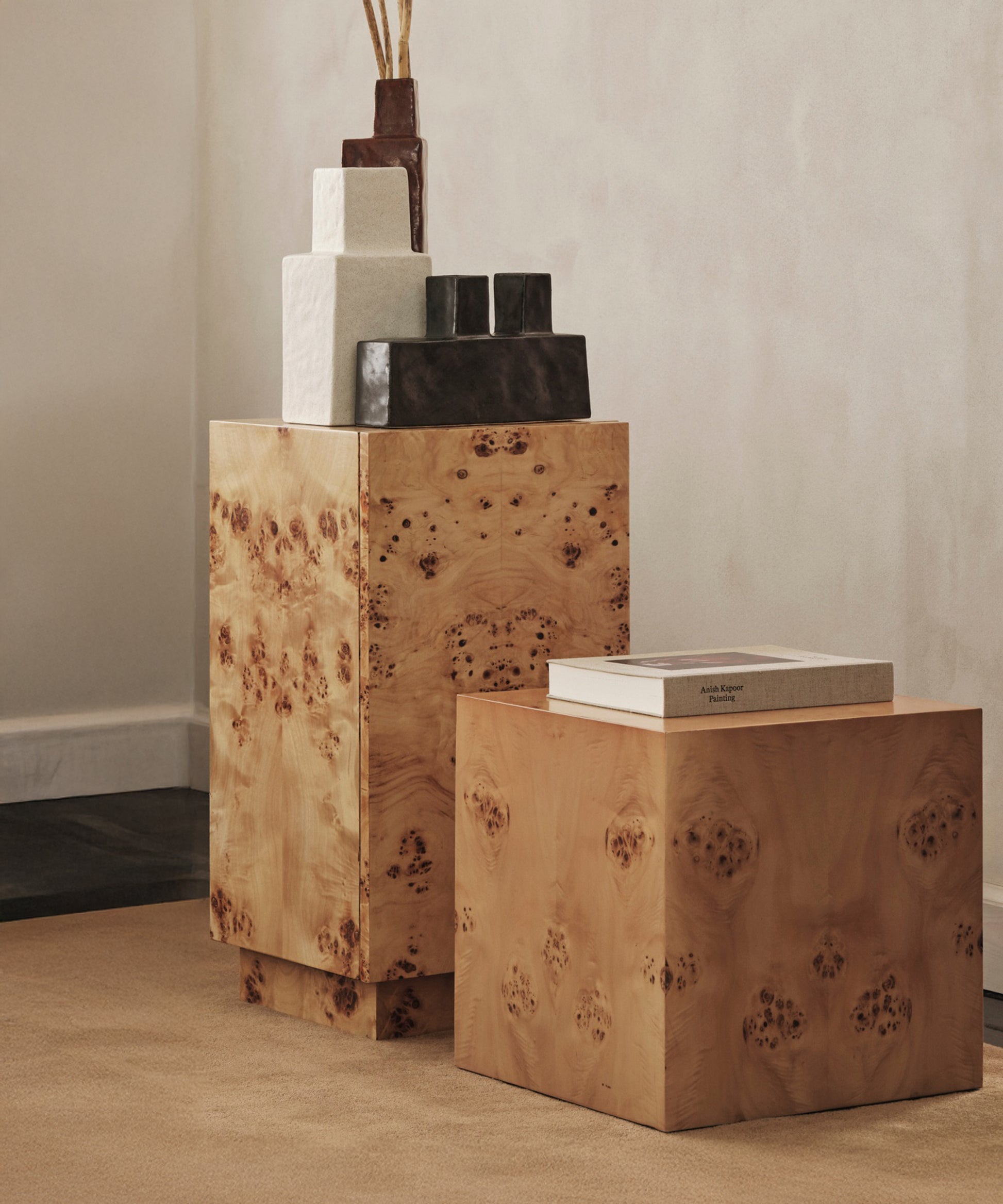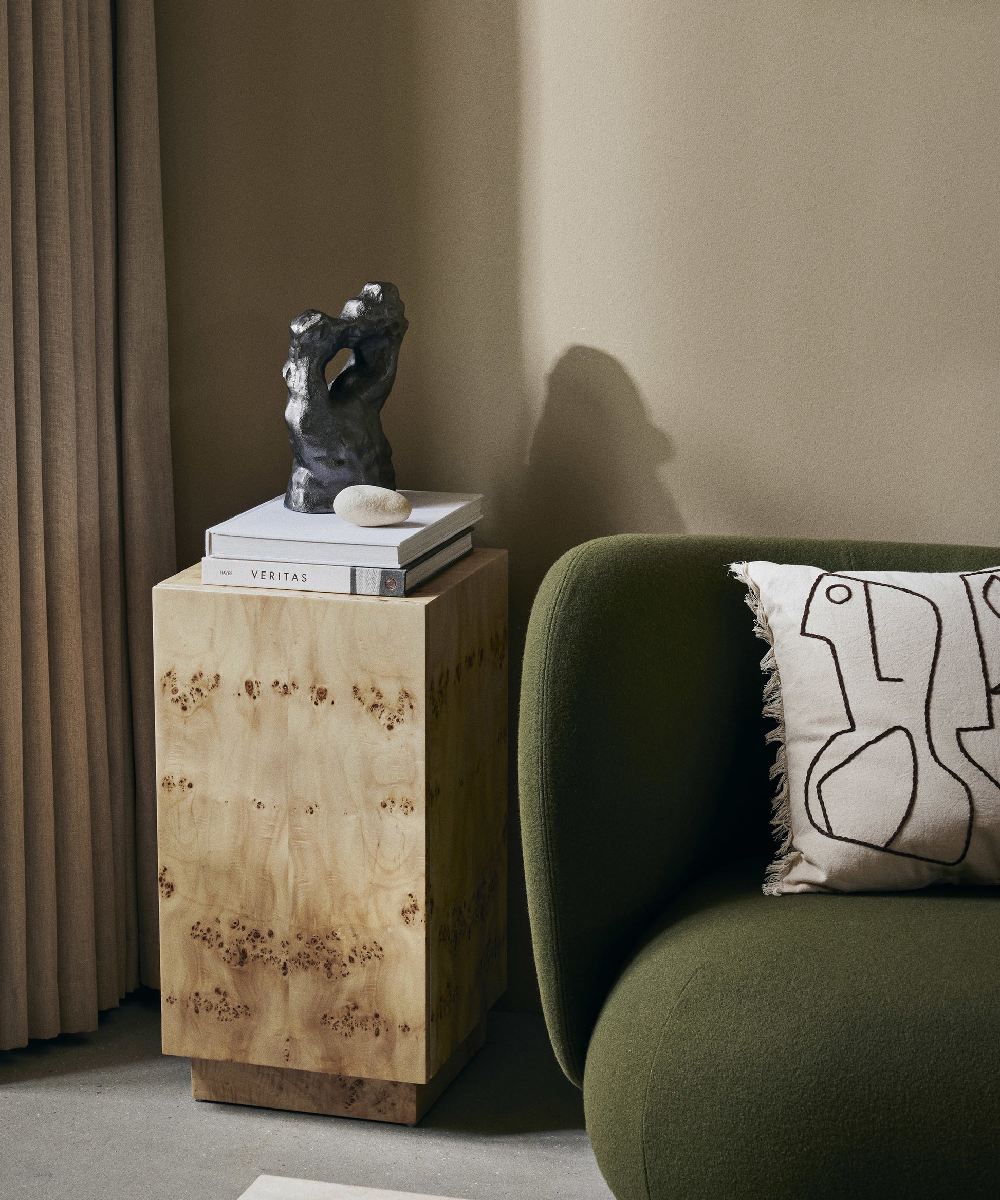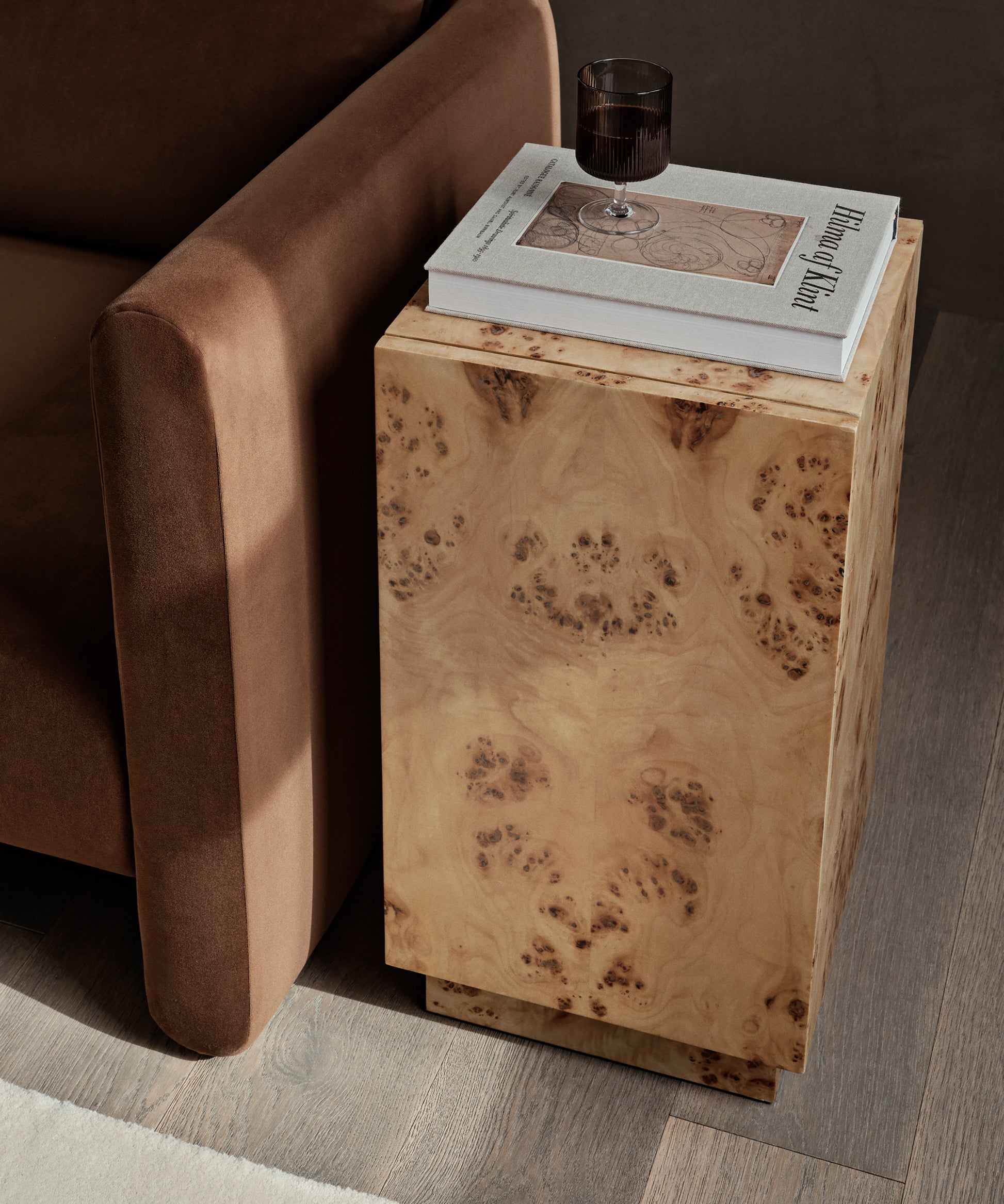 The Burl Side Table has its namesake from the beautifully patterned, FSC™ certified burl wood it is made of.
