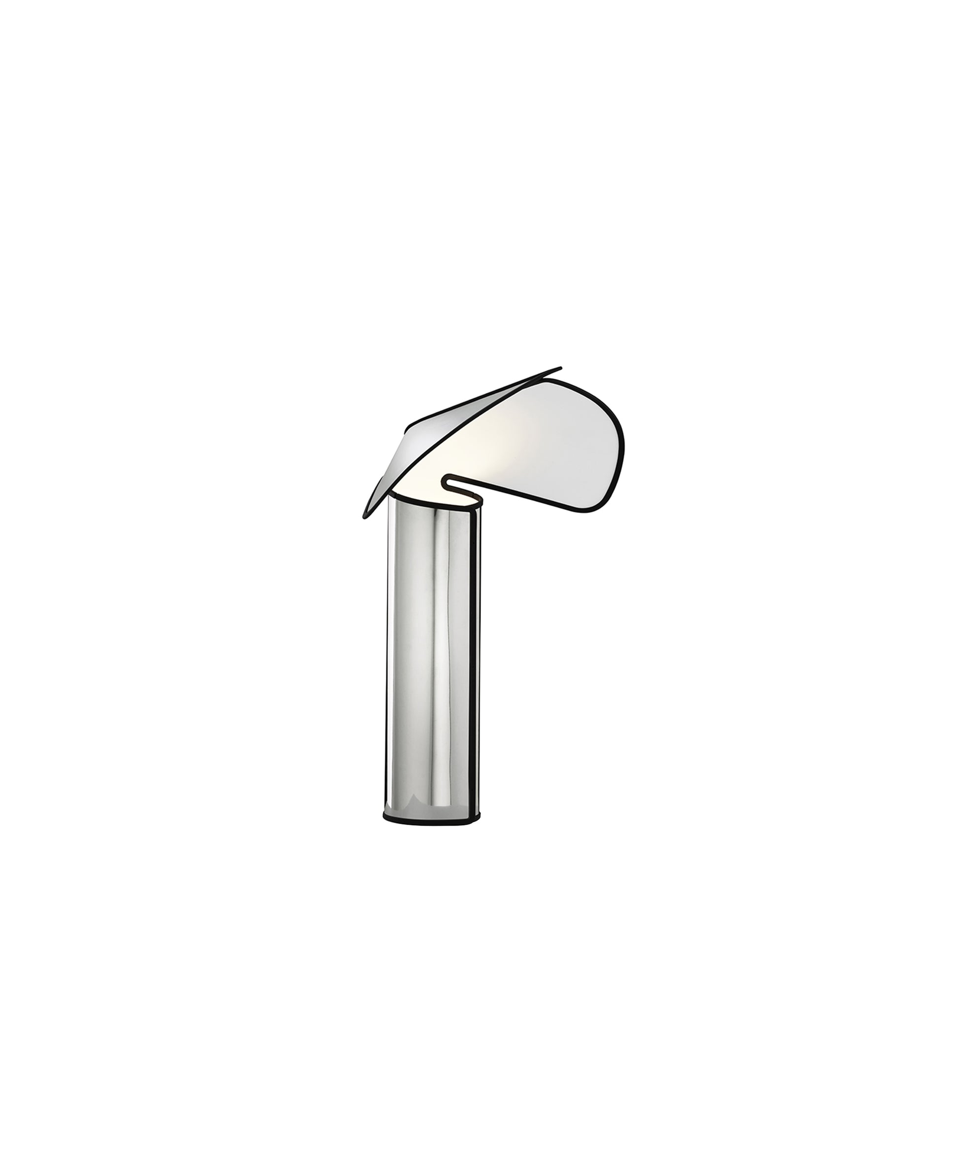 The Chiara lamp, designed by Mario Bellini for Flos in 1969, is an iconic design formed from a simple sheet of polished stainless steel that has been cut and rolled into a cylinder.