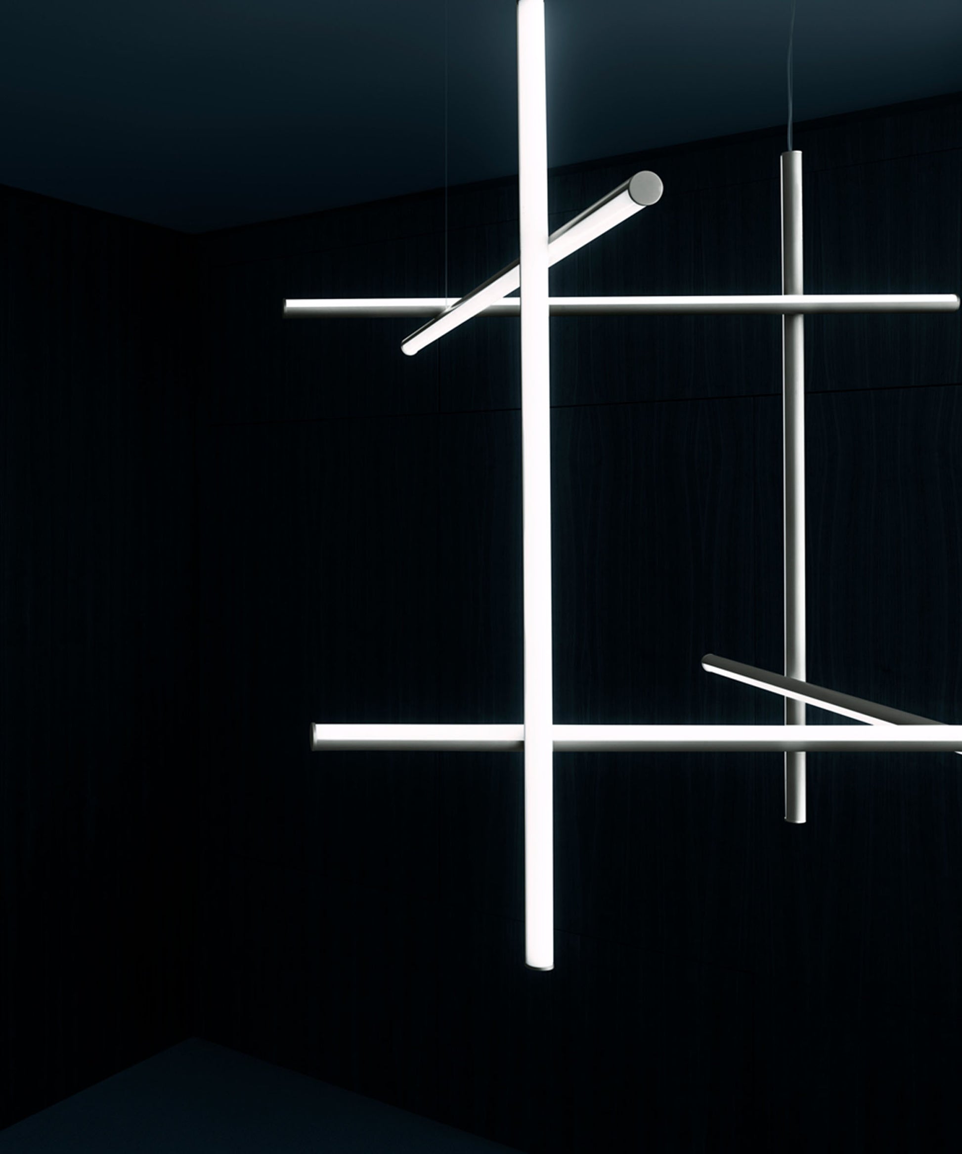 Coordinates is a lighting system consisting of horizontal and vertical strip lights that form illuminated grid-like structures of various complexities.