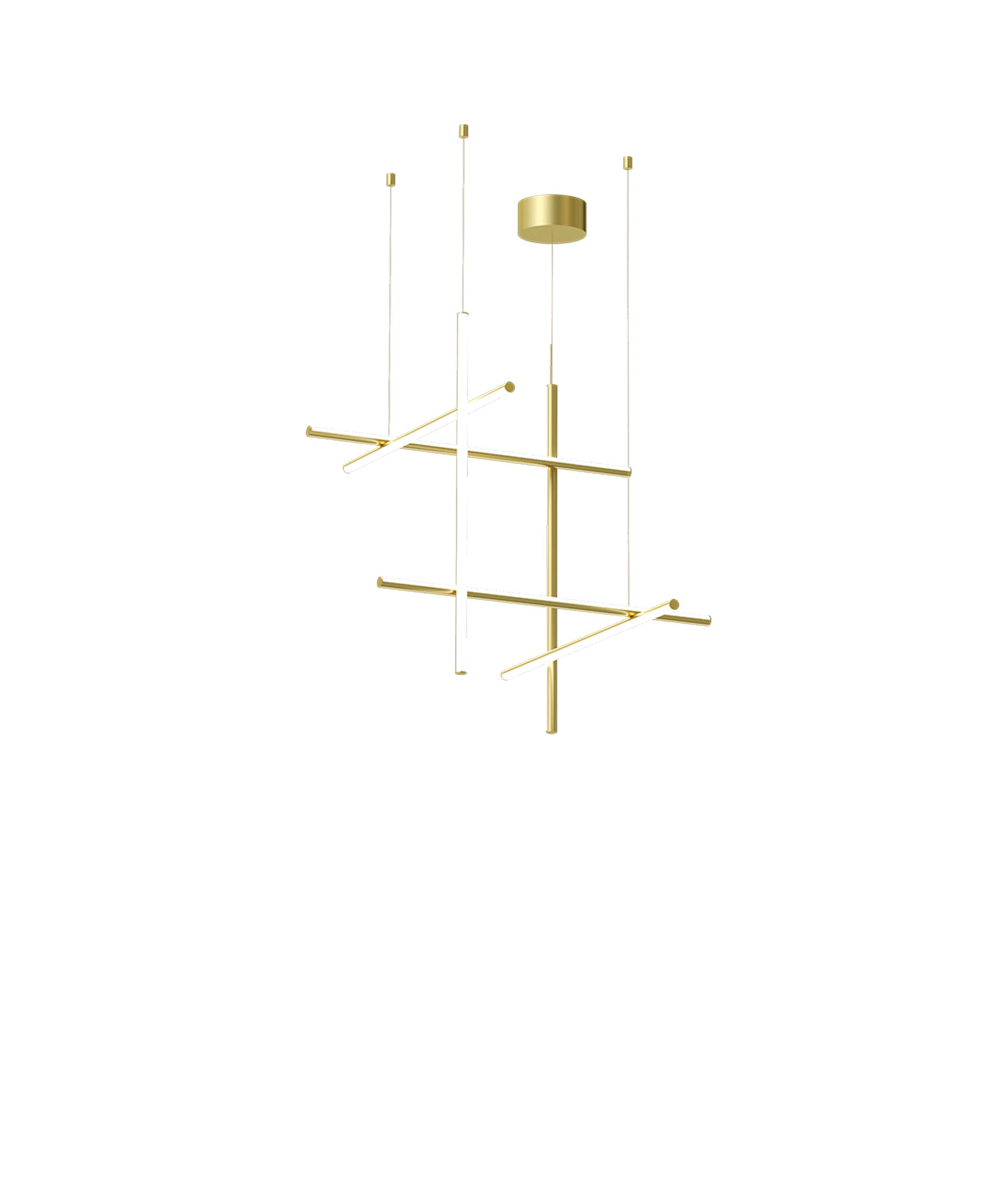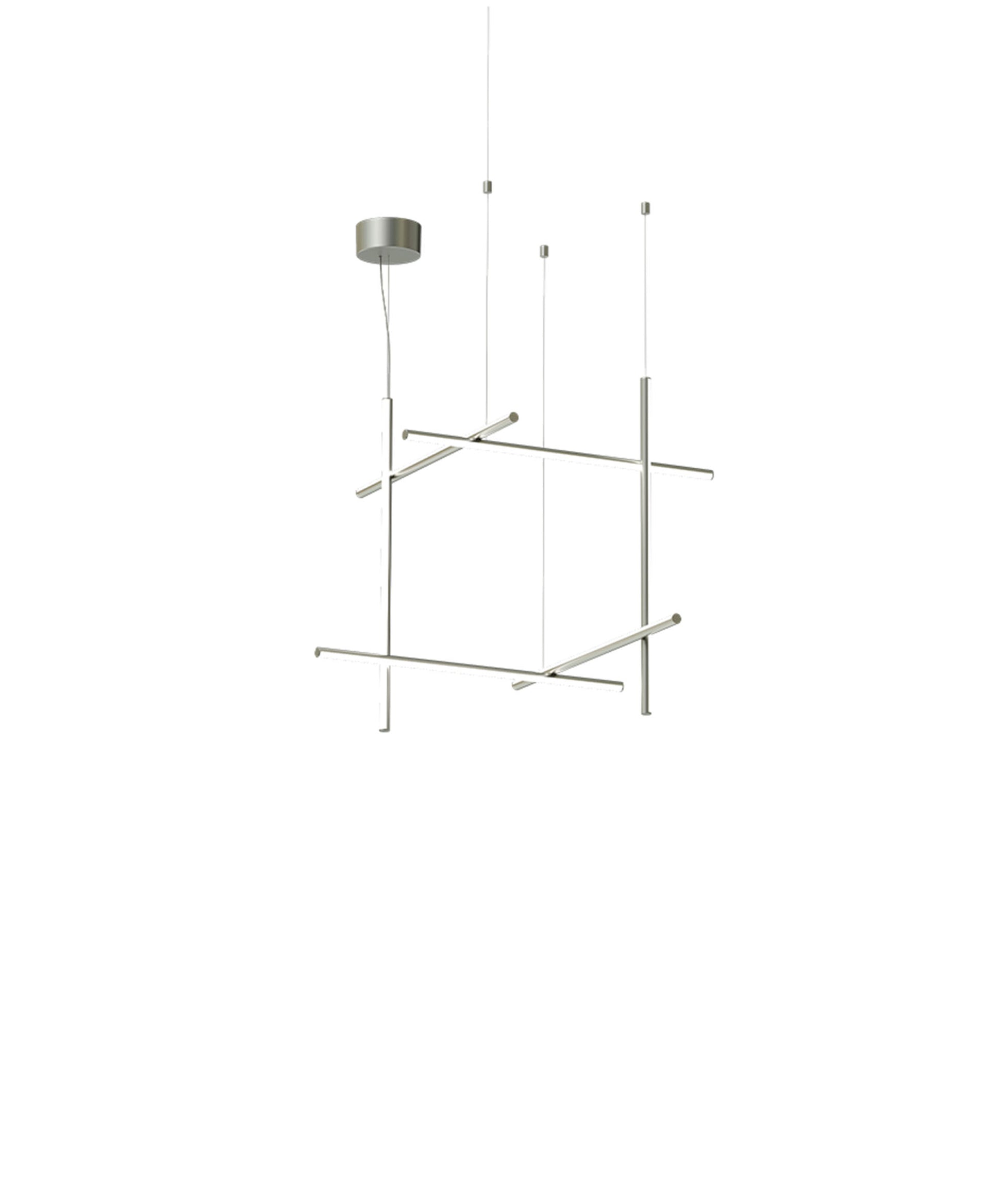 This collection of standard chandeliers of pared-down configurations can be used in any setting. Each suspended element is powered and supported by an invisible electrical and mechanical connection designed specifically to allow for the composition of the four hanging models (S1, S2, S3, S4). The S Module is also available to create semi-custom designs for large-scale installations. Behind the design: This design evolved from a commission for the feature lighting of the main dining area of the historic Four Seasons restaurant in New York City. The restaurant relocated and opened in 2018 with the interiors designed by São Paolo-based architect Isay Weinfeld.