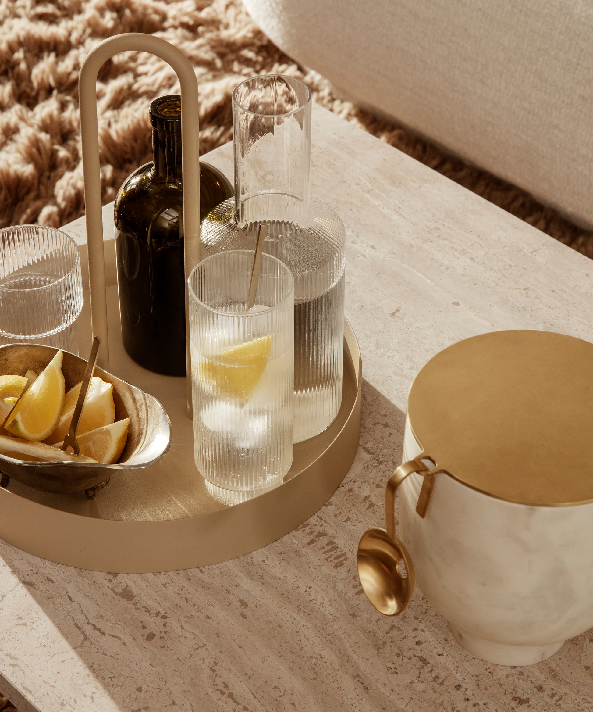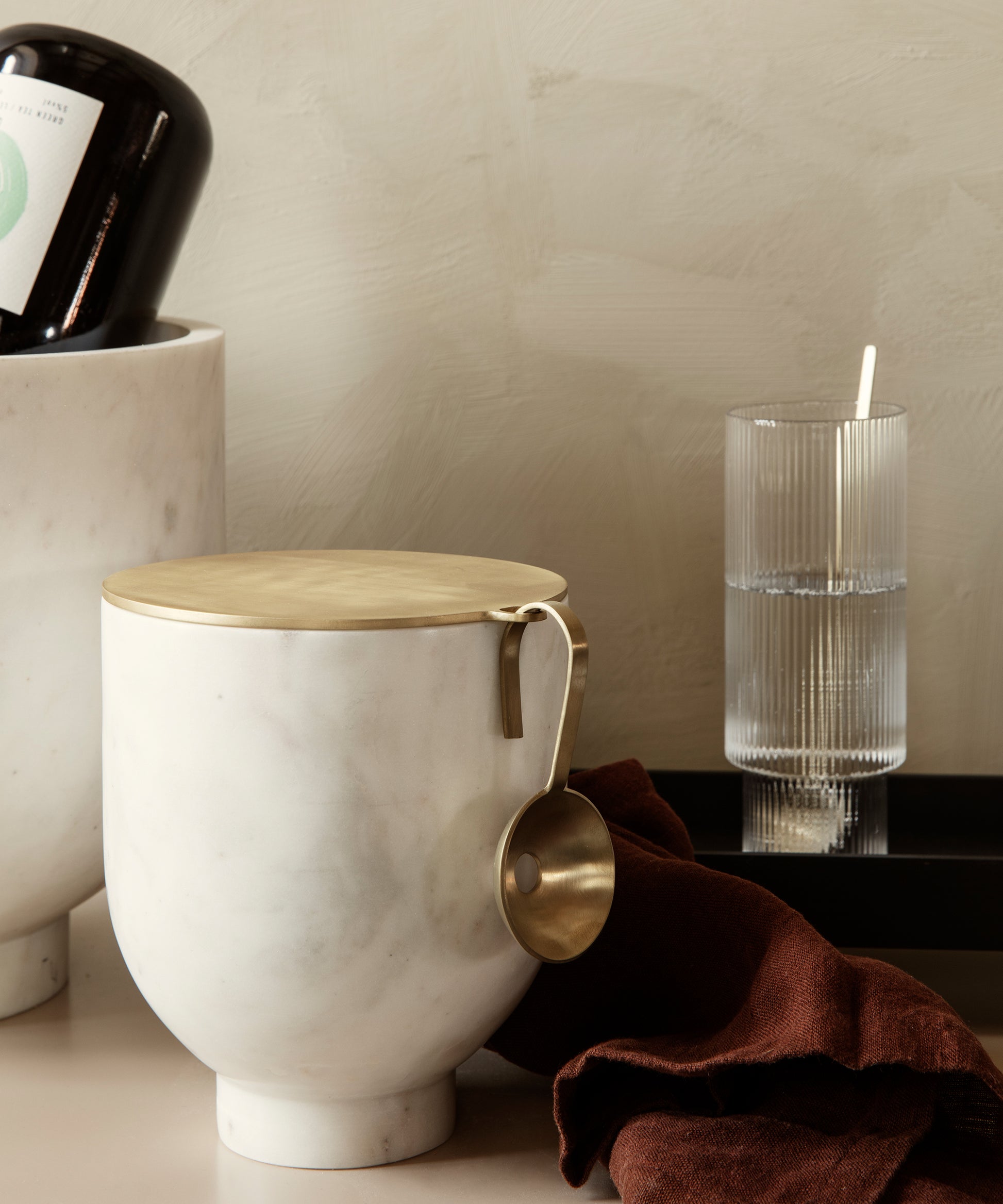 The head of the spoon features a hole for excess water, so you only ever be adding ice cubes to your drink. The ice spoon is the perfect companion to the Alza Ice Bucket, its matte brass finish matching the ice bucket's lid, from which it also can hang.