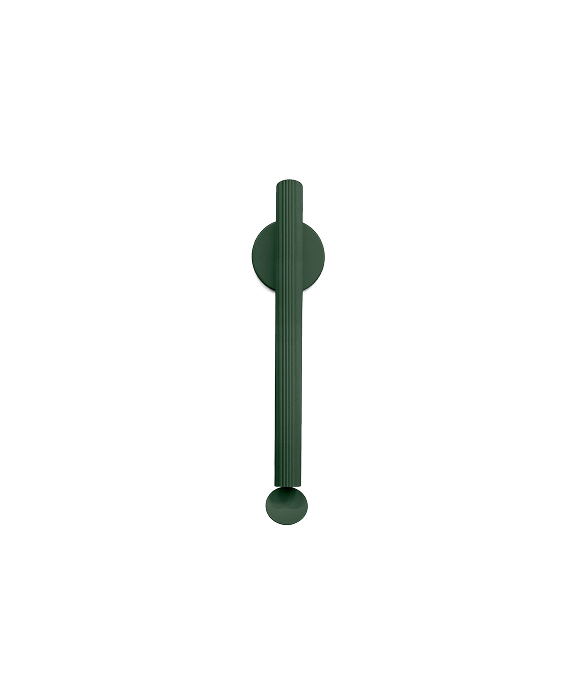 The cylindrical body is characterized by the surface etching in two refined variations: Flauta Riga, with vertical lines, and Flauta Spiga, characterized by an elegant and sophisticated herringbone pattern. The wall sconces come in three different heights, two surface textures, and a total of nine finishes, providing various personalization possibilities. The Flauta collection meets a desire for the creation of an adaptable, changing project, ideal for contract or residential environments, both indoor and outdoor." - Patricia Urquiola Please note that all fixtures include a circular backplate, not always shown in the images.