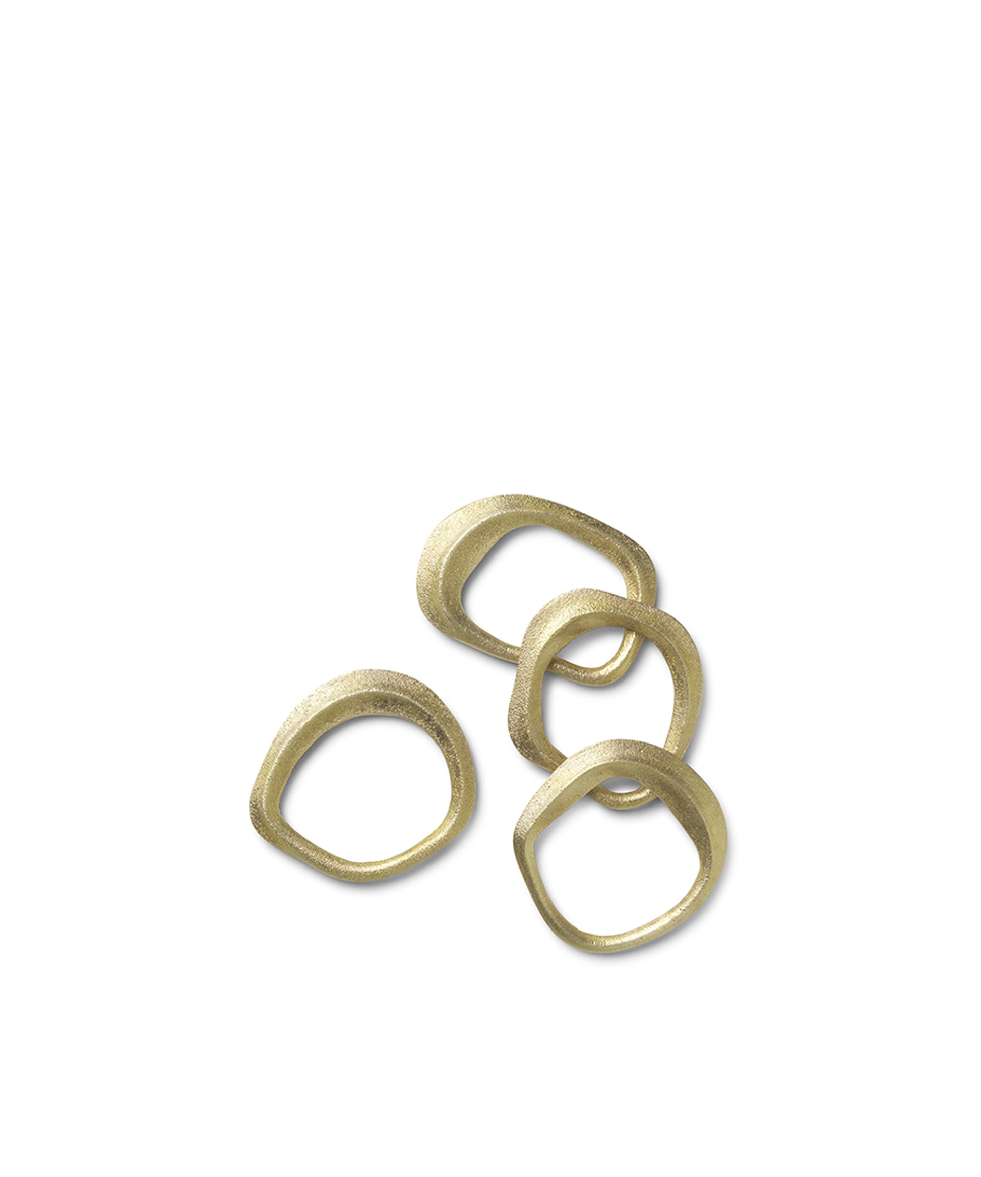Moulded into flowing, organic shapes, this set of four napkin rings allows you to set your table with beautiful forms inspired by nature. Each set features four individually shaped rings of solid brass and presents a napkin casually yet gracefully. Produced by the Copenhagen-based studio Ferm Living.