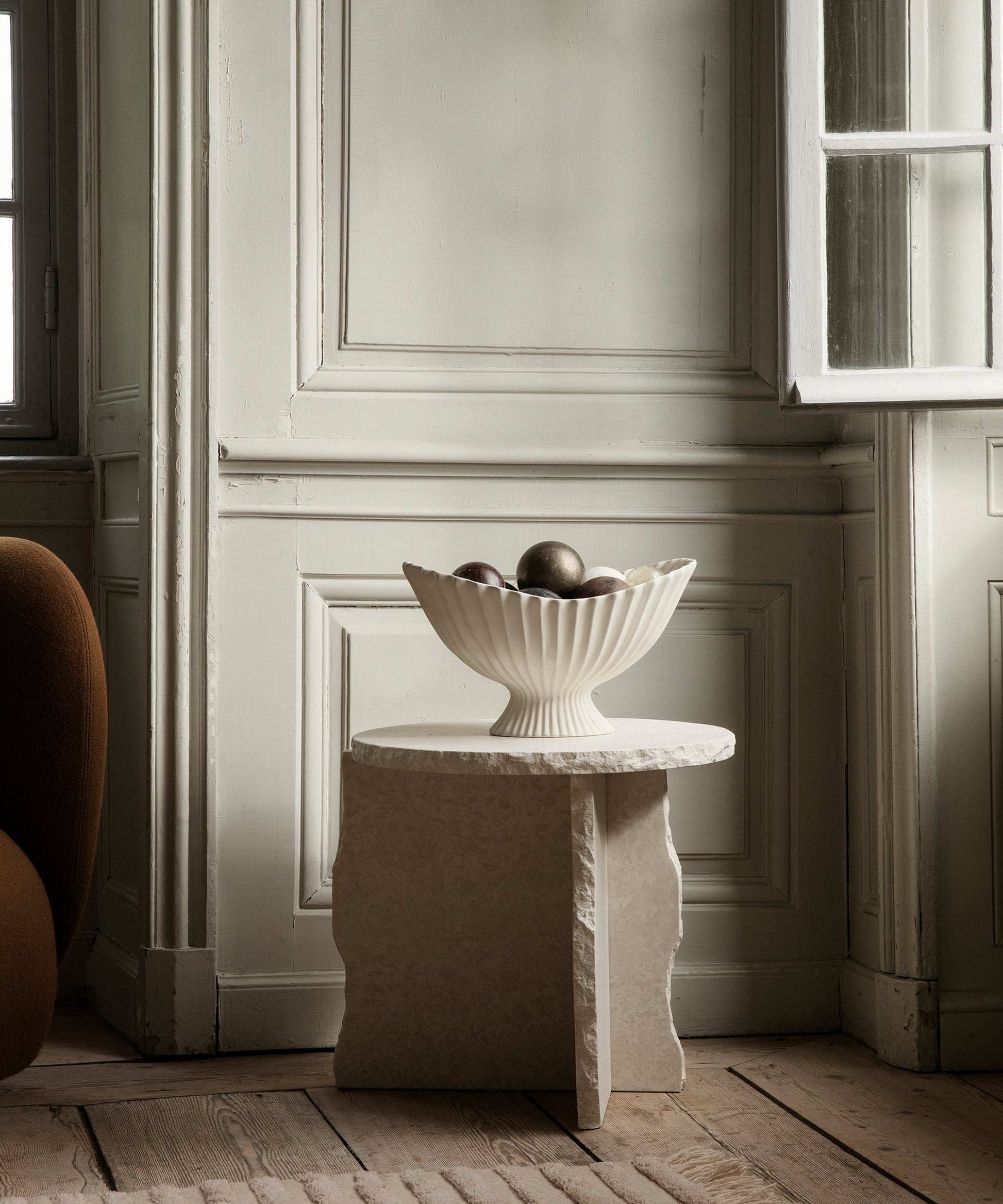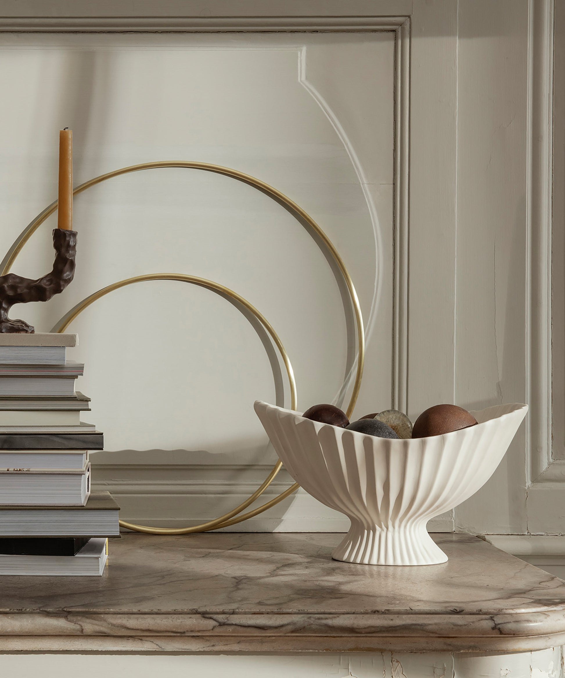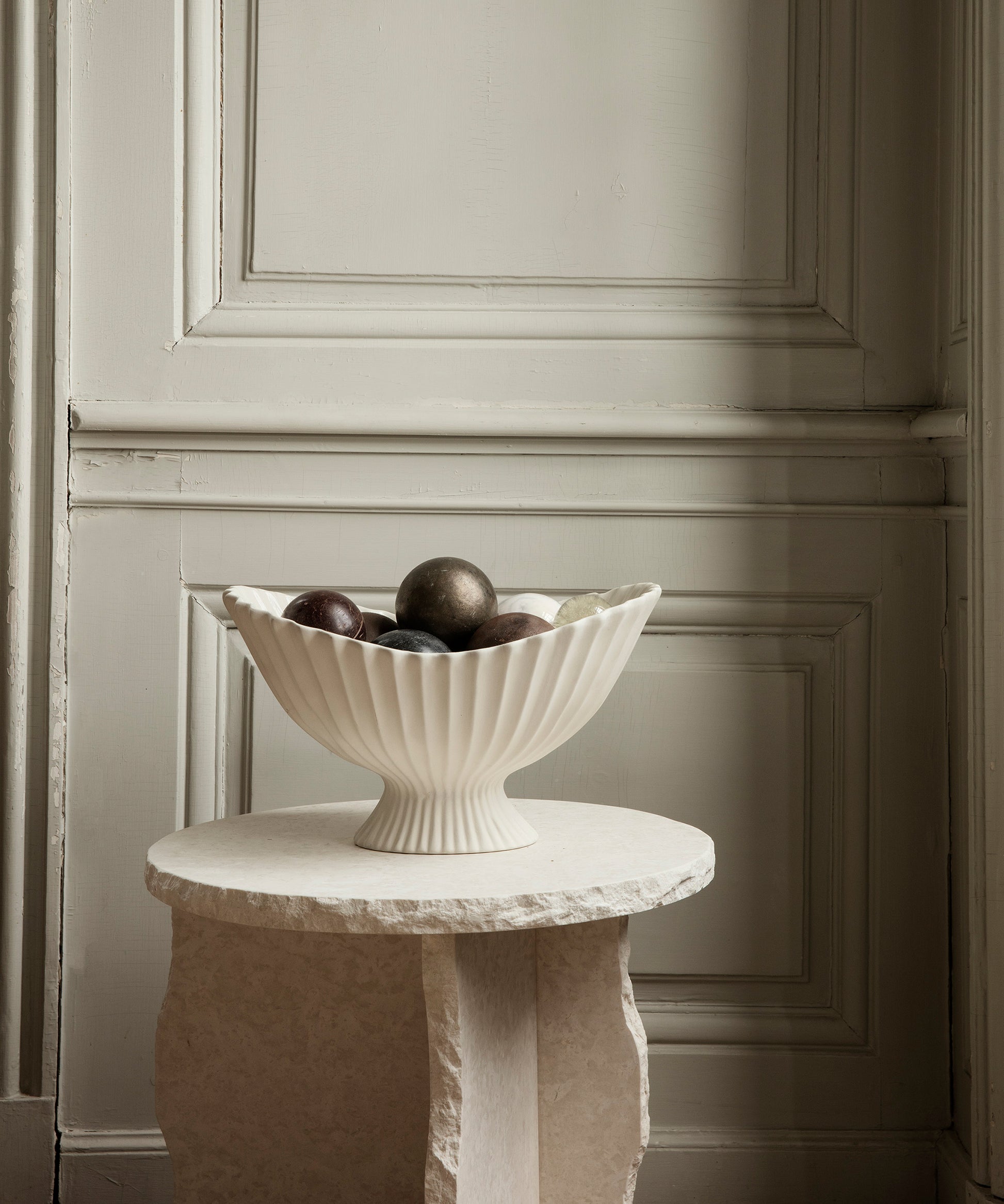 Instantly drawing attention, the sculptural, ceramic Fountain Centrepiece is an elevated bowl with a soft, pleated expression.