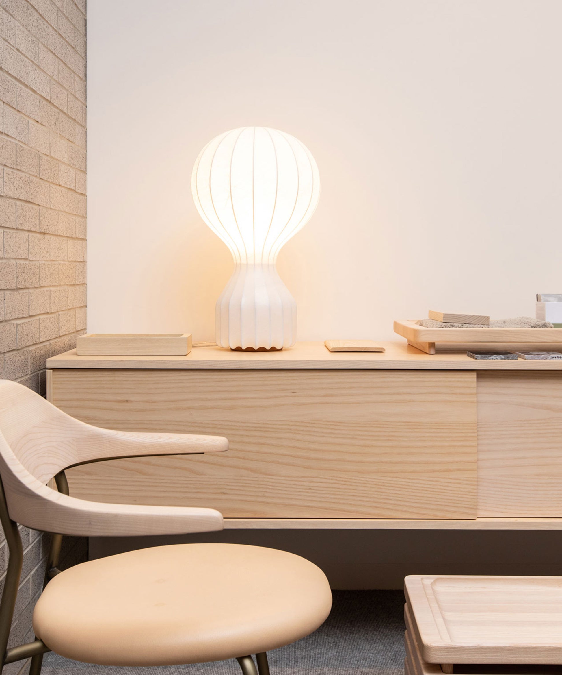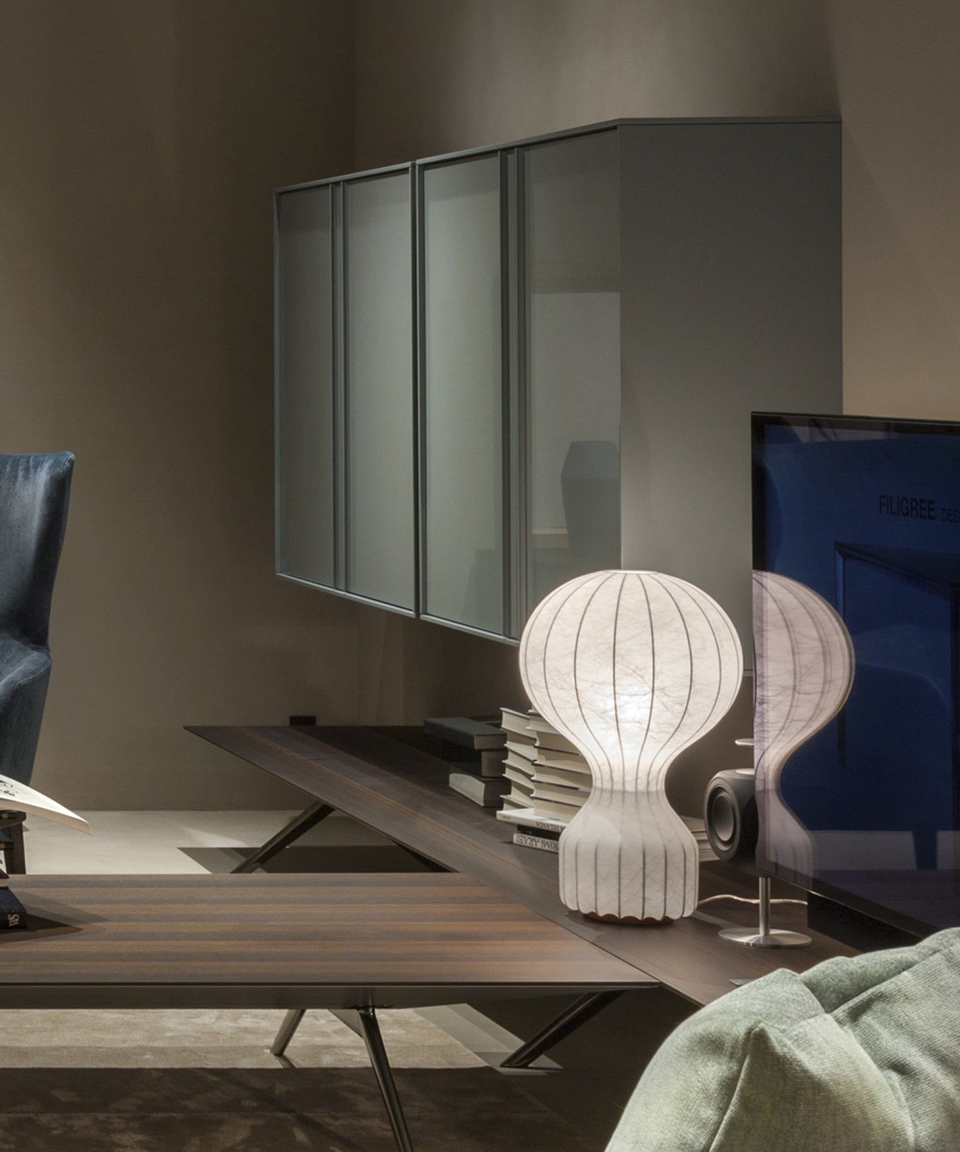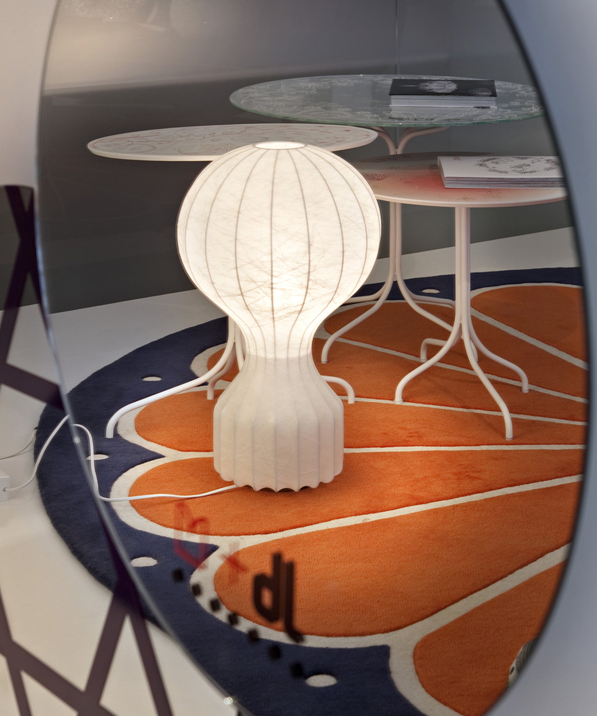 Named after "cat," Gatto is a Castiglioni brother 1960 cocoon creation that sits softly on any table, offering a glowing diffused light.