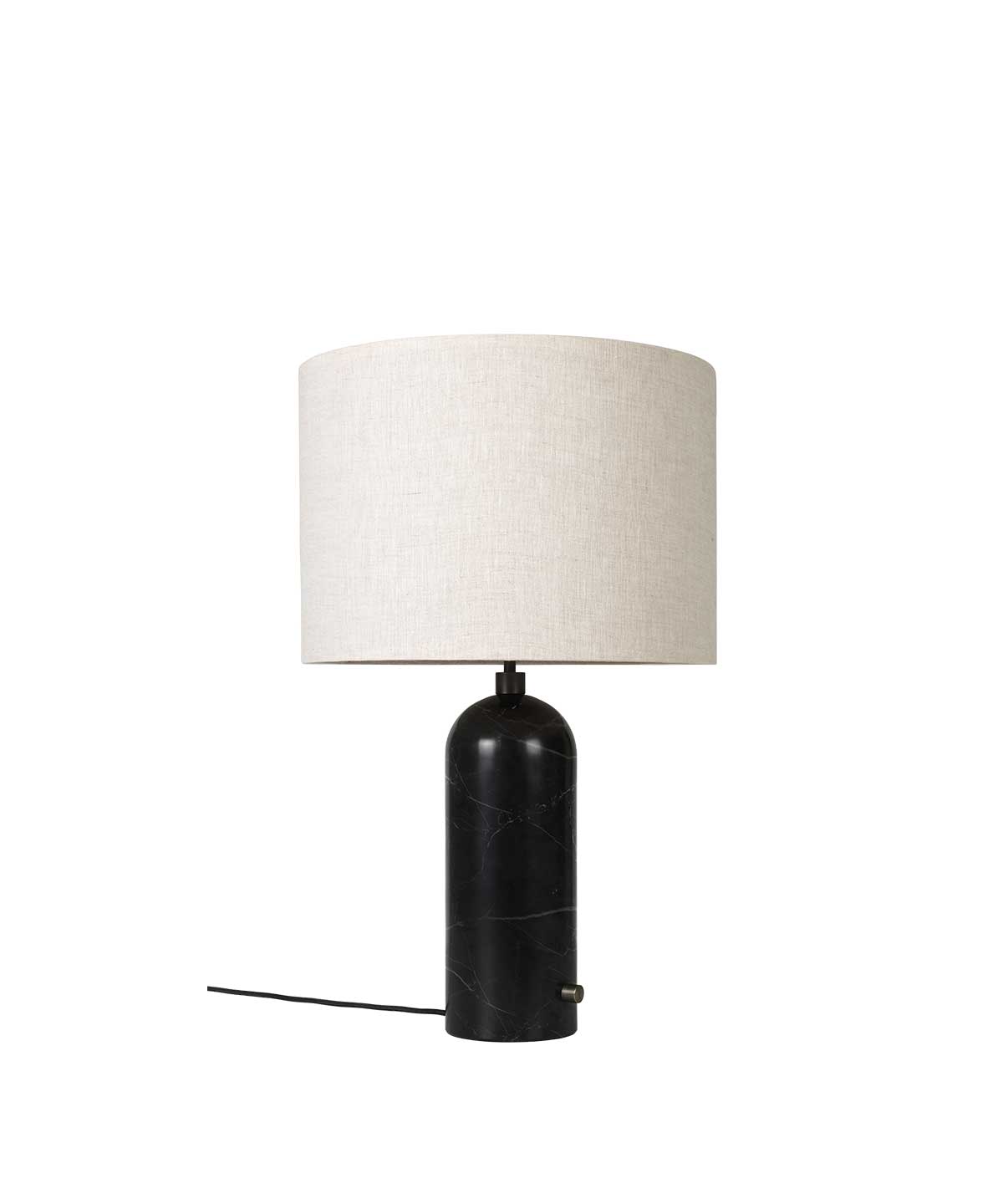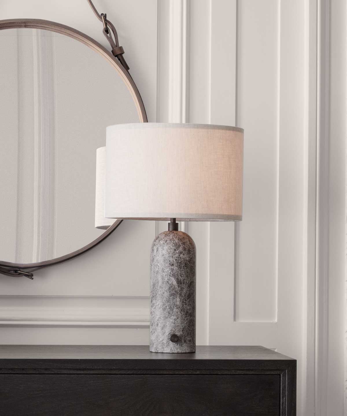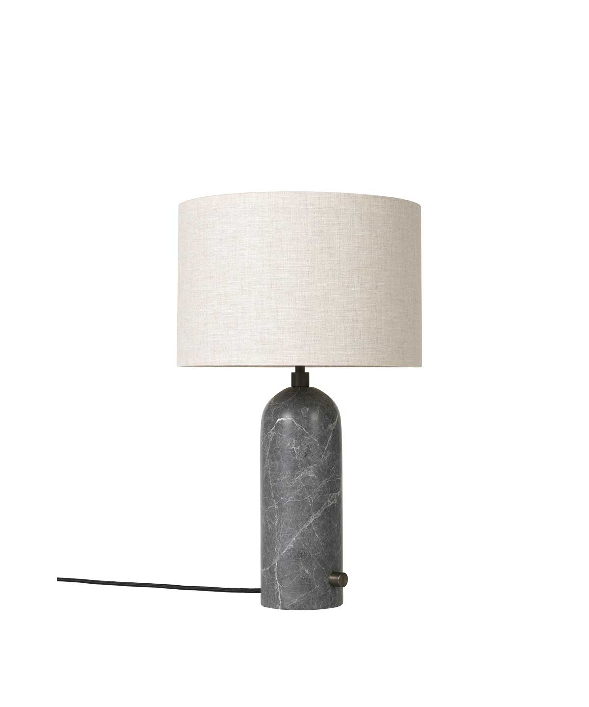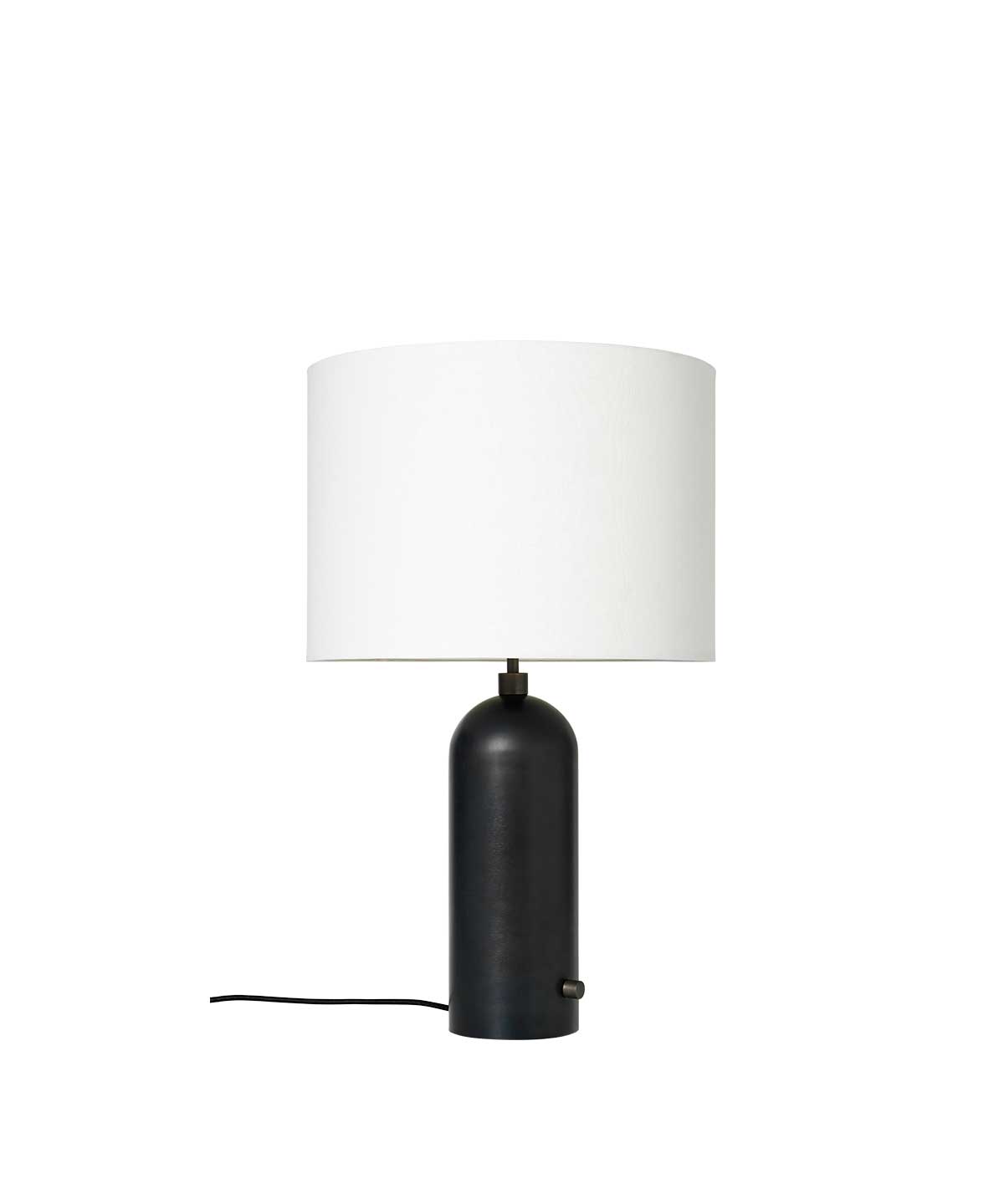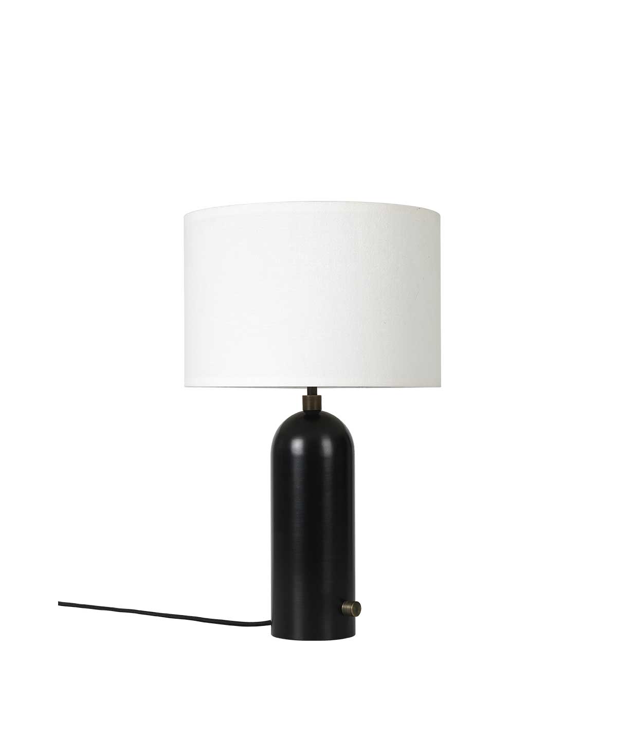 Anchored by a heavy, cylindrical base and contrasted by its lightweight, airy shades, the Gravity Table Lamp emerges as a striking, sculptural whole.