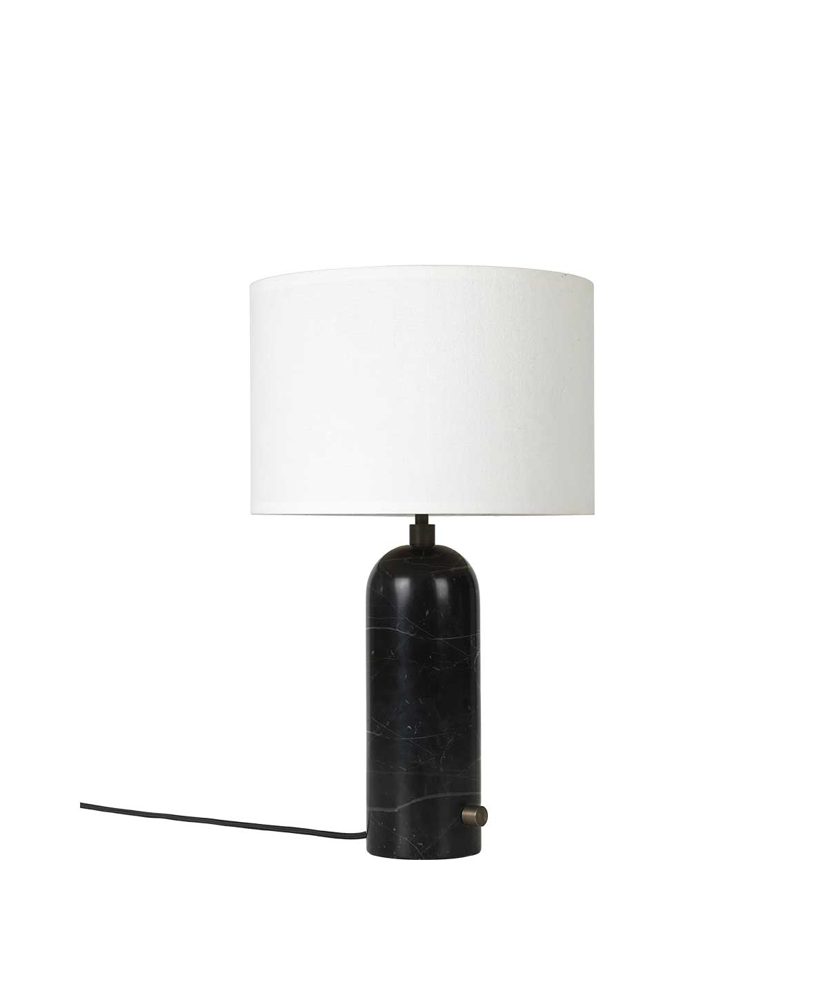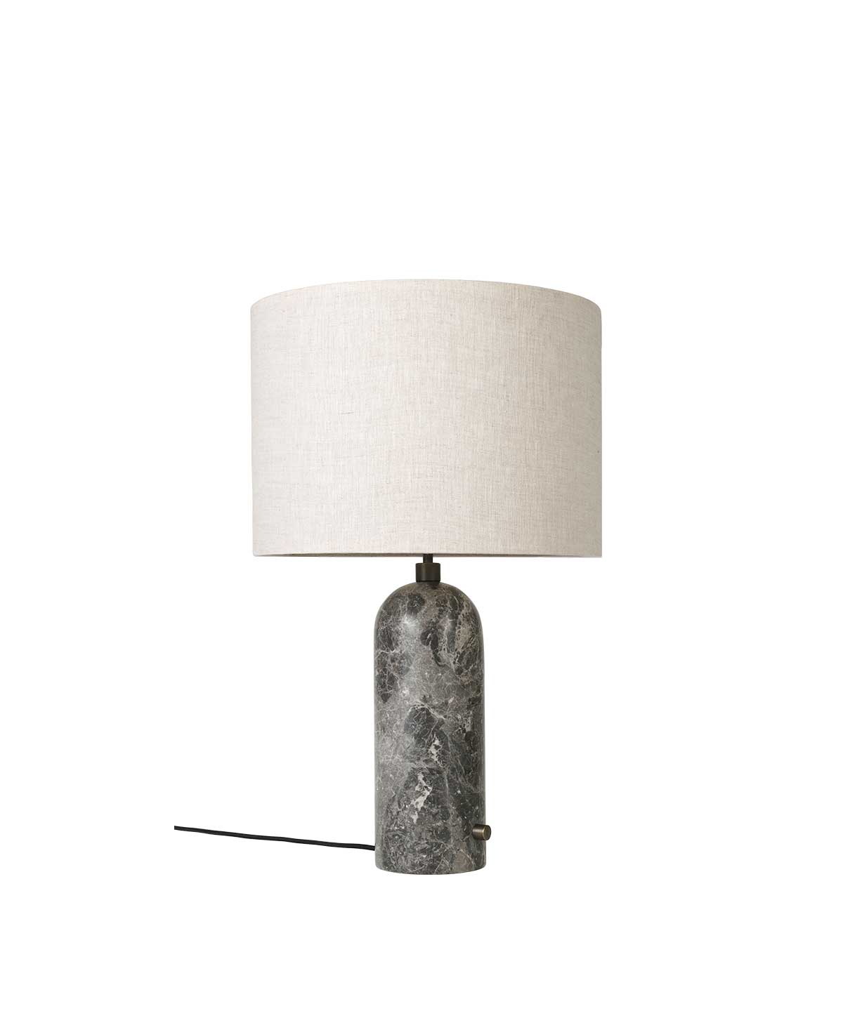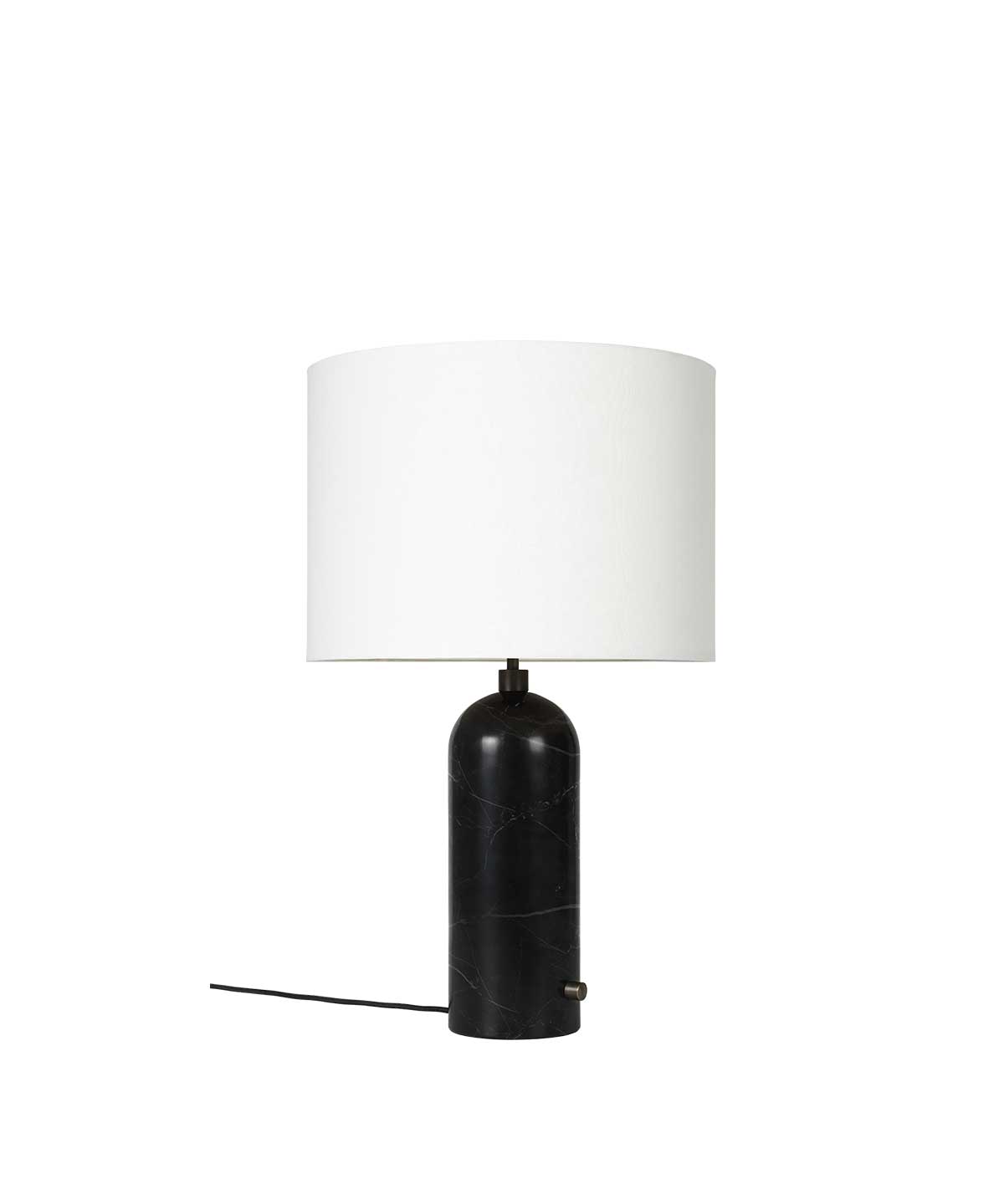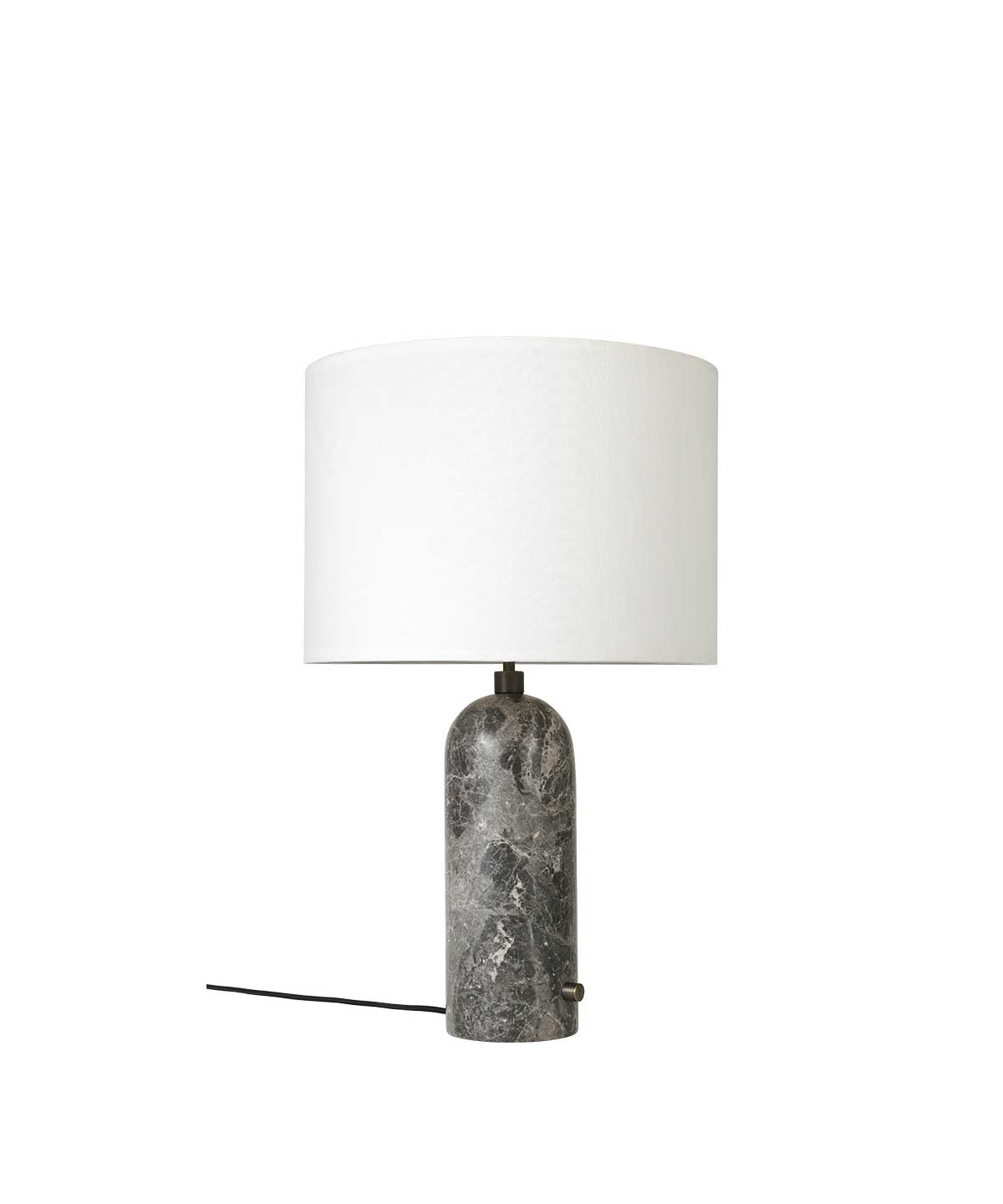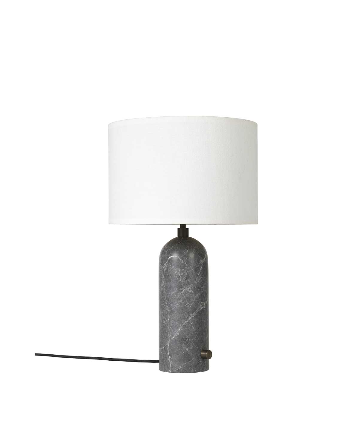 Anchored by a heavy, cylindrical base and contrasted by its lightweight, airy shades, the Gravity Table Lamp emerges as a striking, sculptural whole.