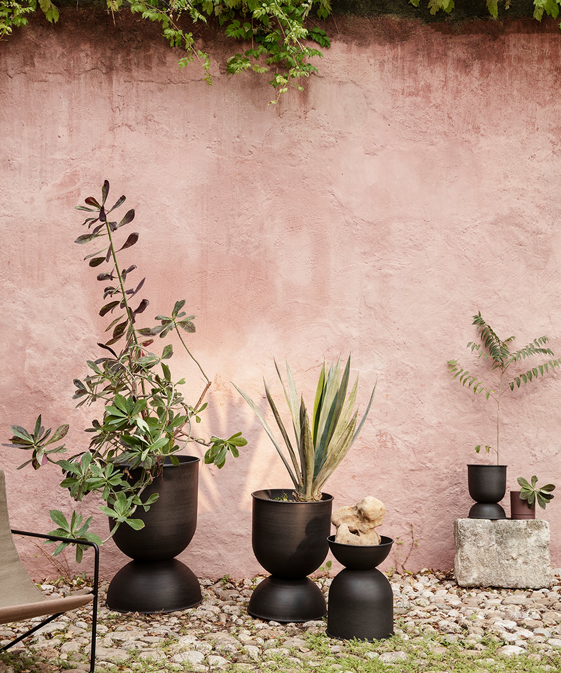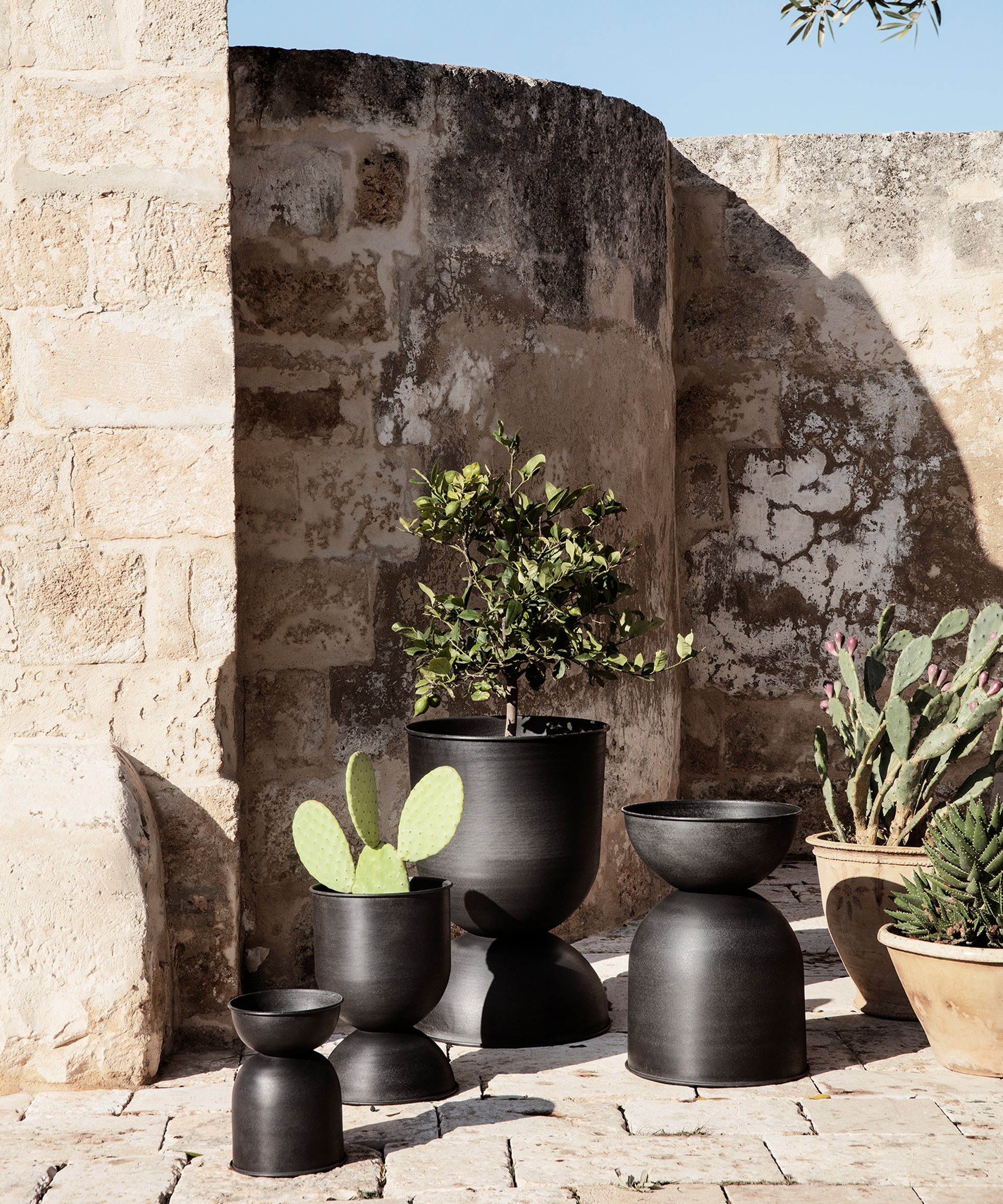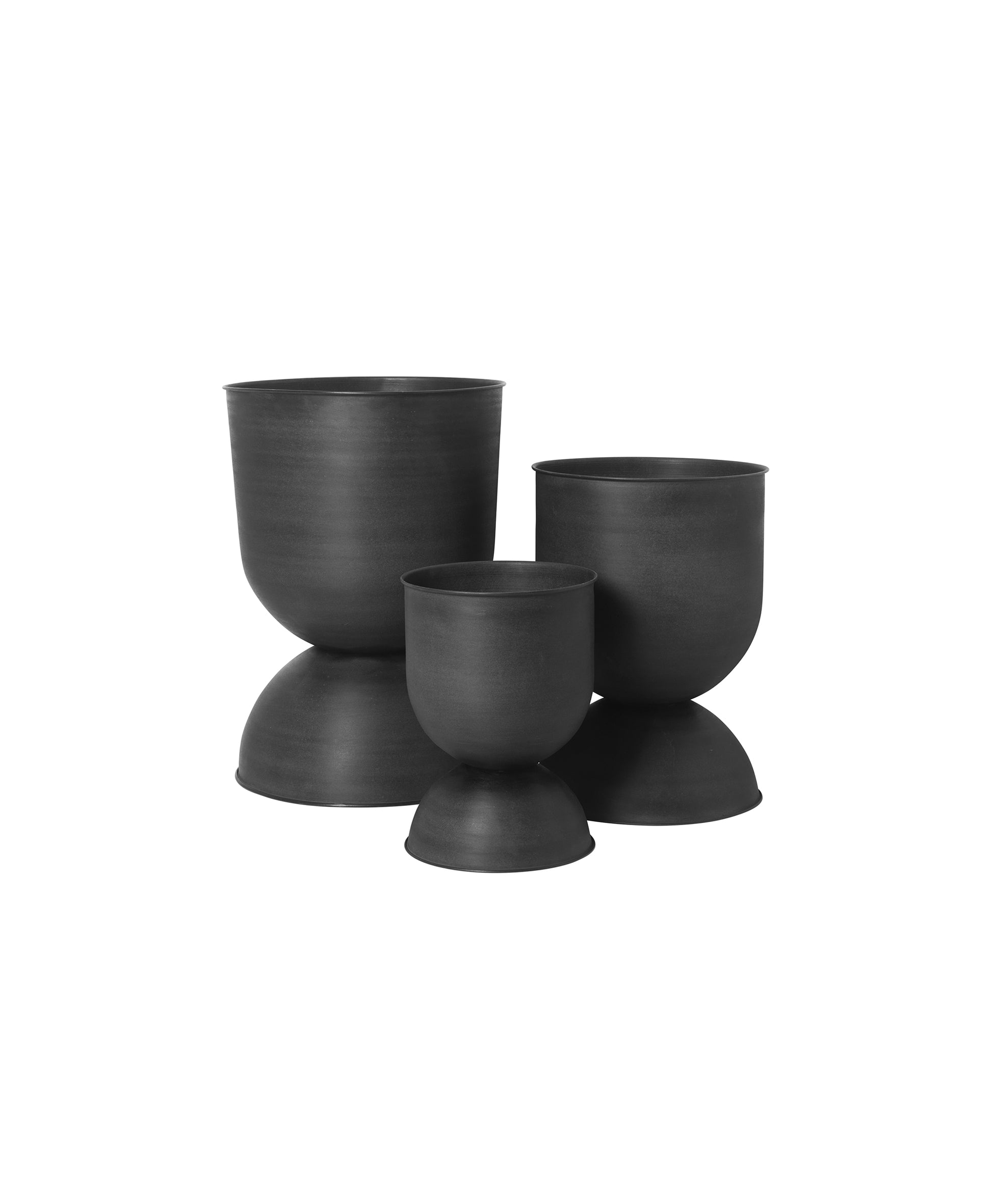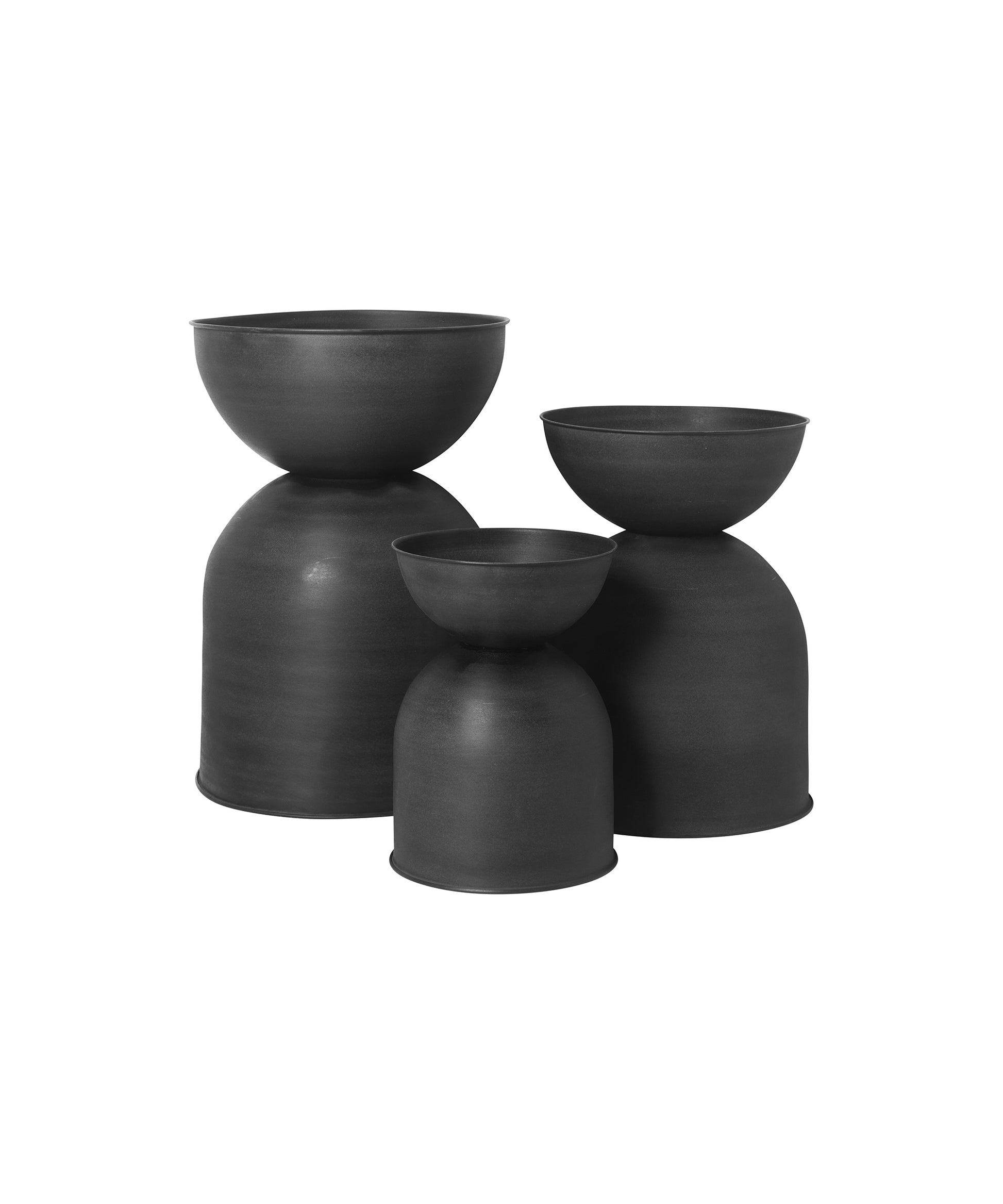 The pot can be both ways according to the plant's needs. No matter which way you turn it, you're sure to make a statement. The pots are made of metal with a matte finish and have been treated to be suitable for outdoor use. Drainage hole with rubber cap for both directions. Available in three sizes