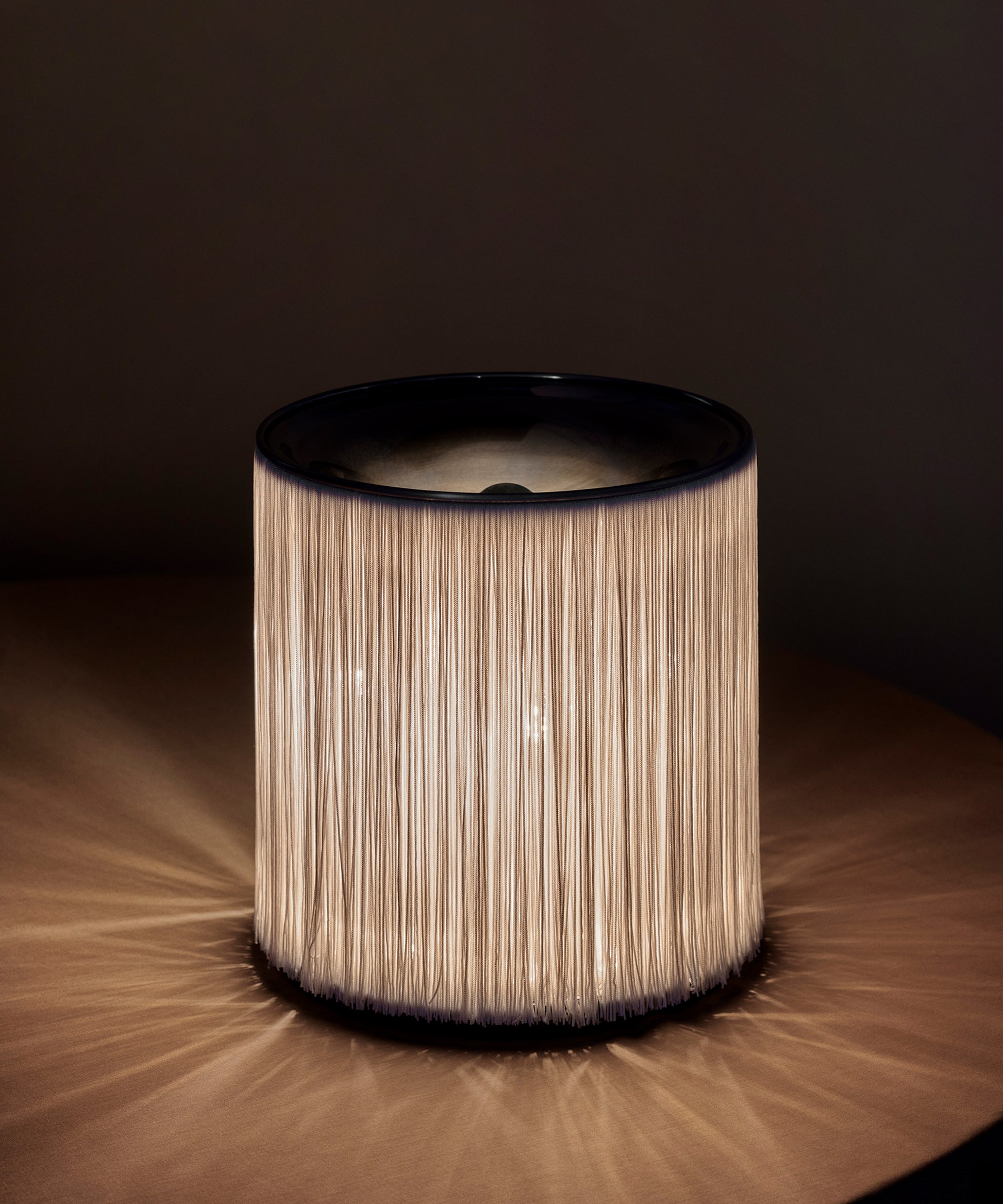Its unique and playful form perfectly encapsulates Frattini’s extraordinary approach to the aesthetics of light. Model 597’s unique nylon fringes were inspired by both the world of fashion and the fringed entrance curtains commonly found in Italy’s bars and grocery stores in the late 1950s. Thanks to the array of lateral bulbs, the Table Lamps emit a 360º play of indirect light, softened by the fringes to create a rich ambient glow, while the reflective aluminum cover adds warmth to the uplight. Model 597 is light-hearted in expression, but serious about functionality – bringing sophistication, fun, and character to interiors without resorting to superfluous decorative flourishes.Produced by Danish design publisher, Gubi.